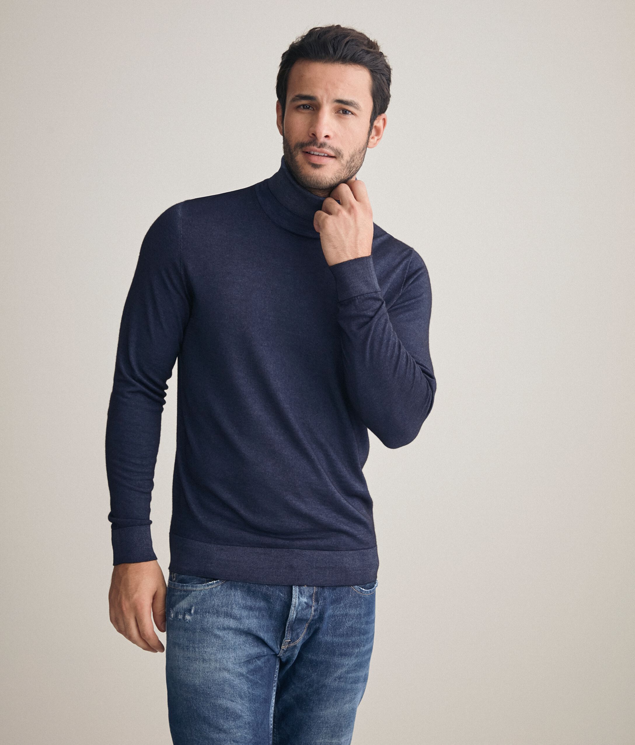 Pull à col roulé en cachemire ultra-fin, un fils iconique de Falconeri. La légèreté du fils dans lequel il est réalisé apporte un effet marbré à ce précieux pull à col roulé. Coupe plus ajustée sur la poitrine.