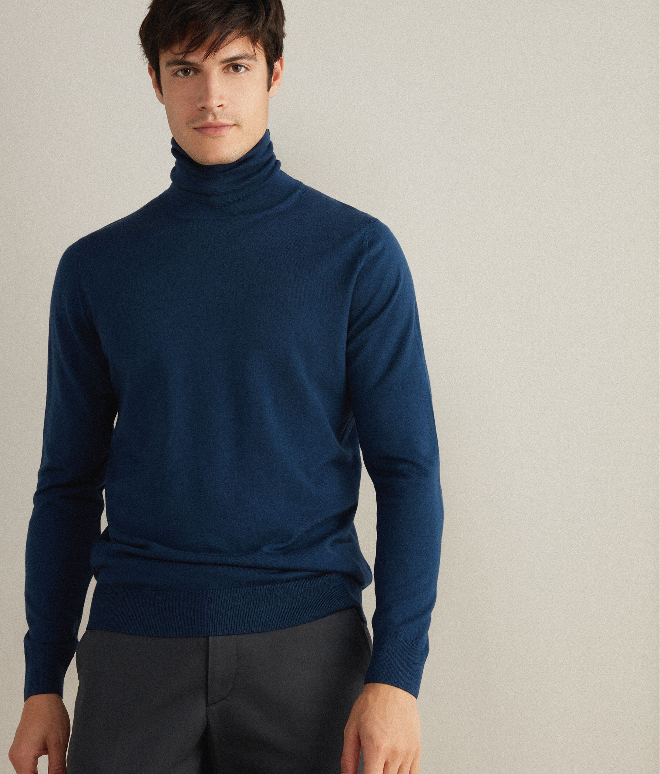 Pull col roulé entièrement en laine mérinos. Un indémodable, parfait porté seul ou sous un pardessus.