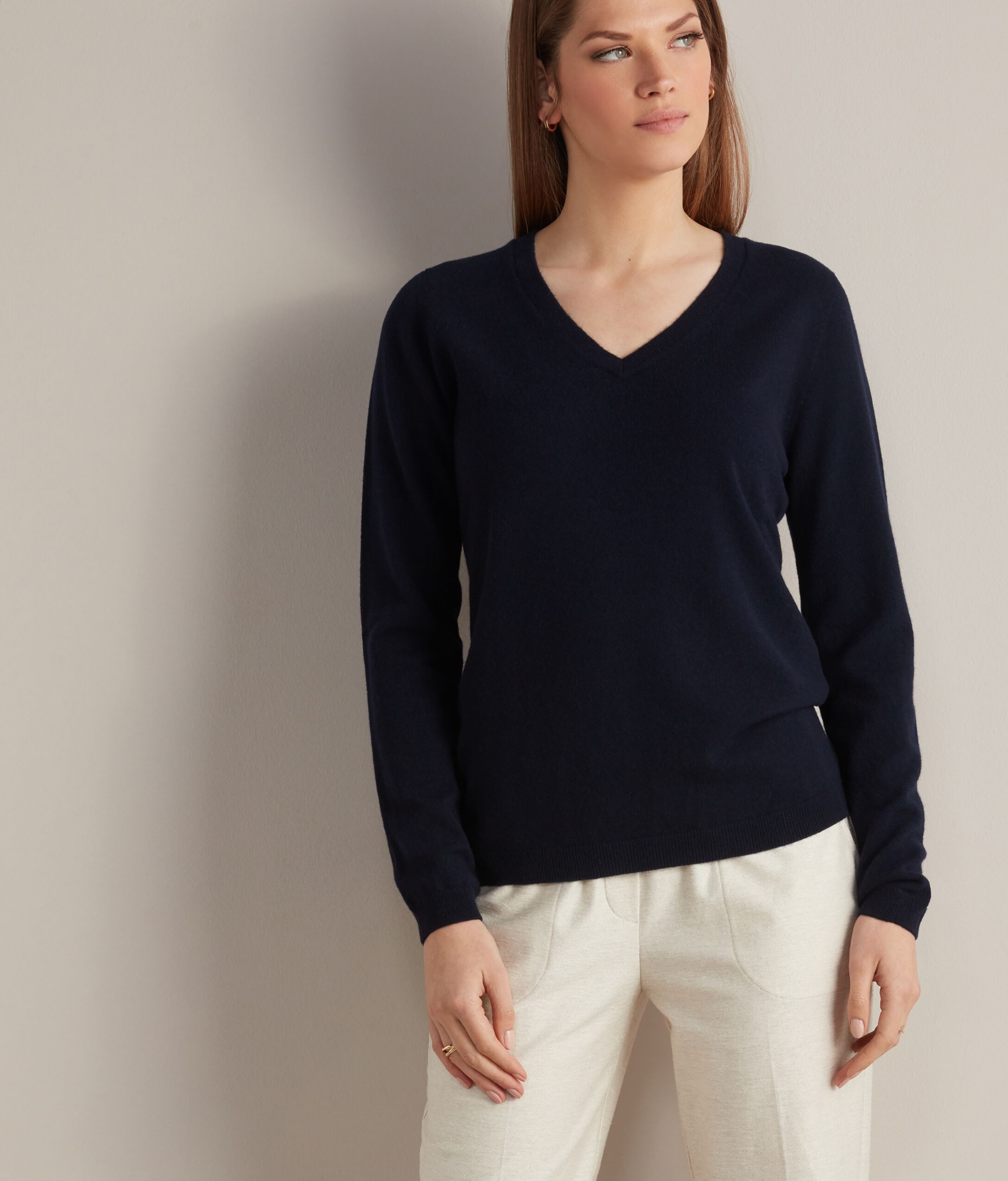 Pull à col V, manches longues, en pur cachemire ultra-doux. Coupe droite.