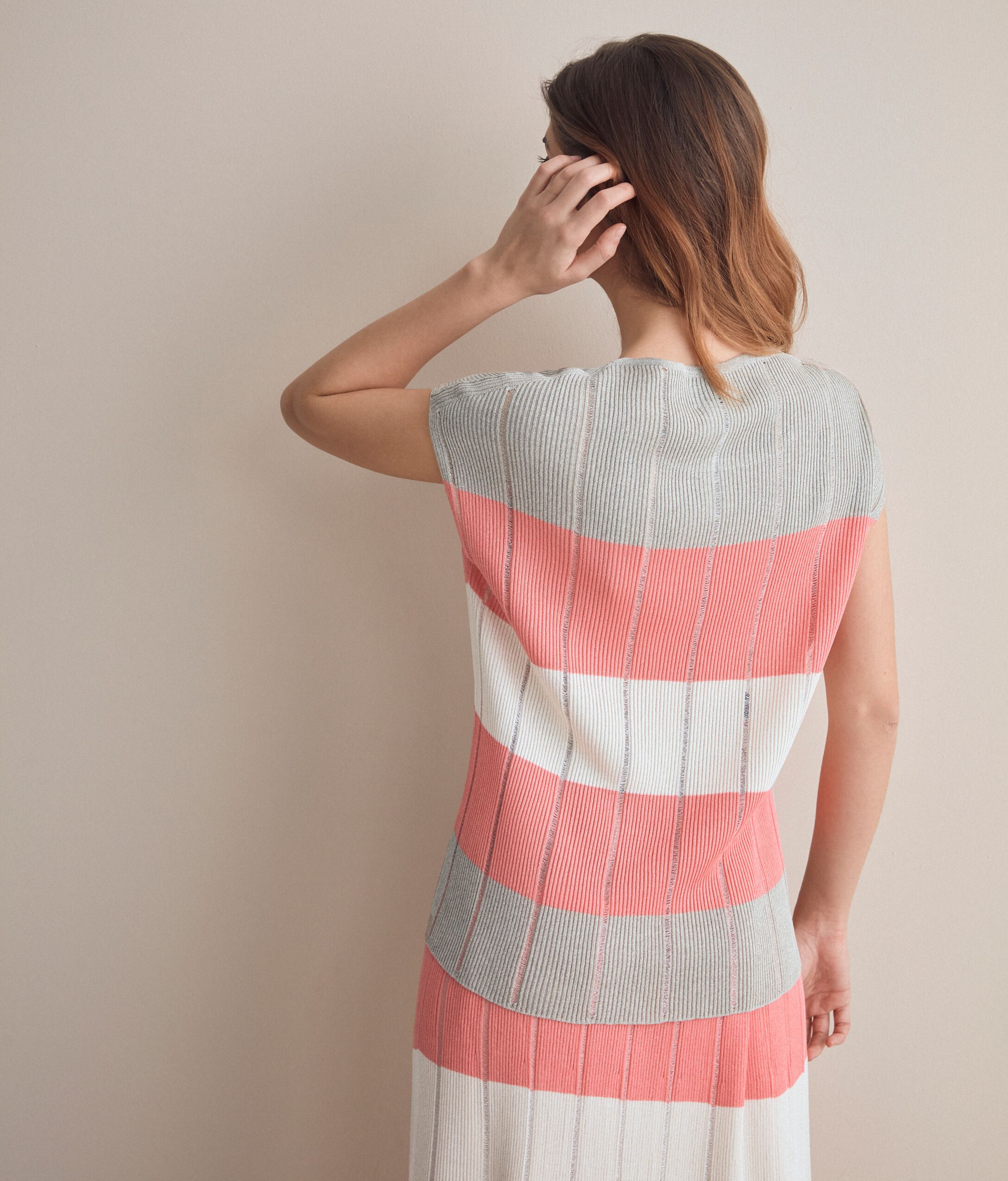 La rencontre entre des matières naturelles et des techniques de confection innovantes réinterprètent le goût de la maille Falconeri et donnent vie à un style raffiné et unique. Le nouveau pull doté d'une encolure bateau et de manches kimono en fils de viscose brillante offre un travail de fils flottants à rayures qui dessine une silhouette féminine et raffinée. Idéal avec la jupe longue DGL455A, pour un look effet robe unique. Le Mannequin Mesure 179 Cm Et Porte Une Taille MMPoitrine : 88 cm / Taille : 67 cm / Bassin : 94 cm