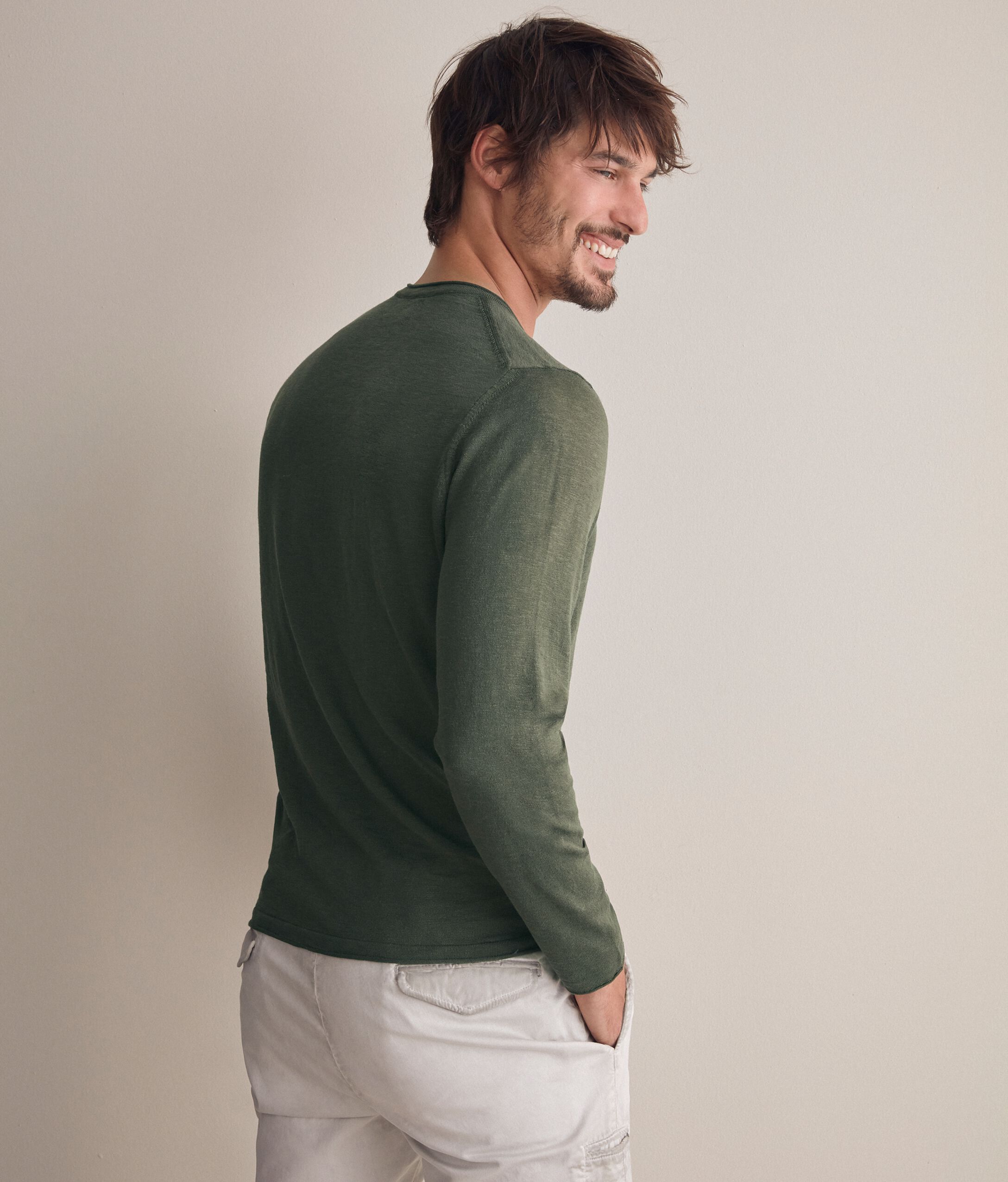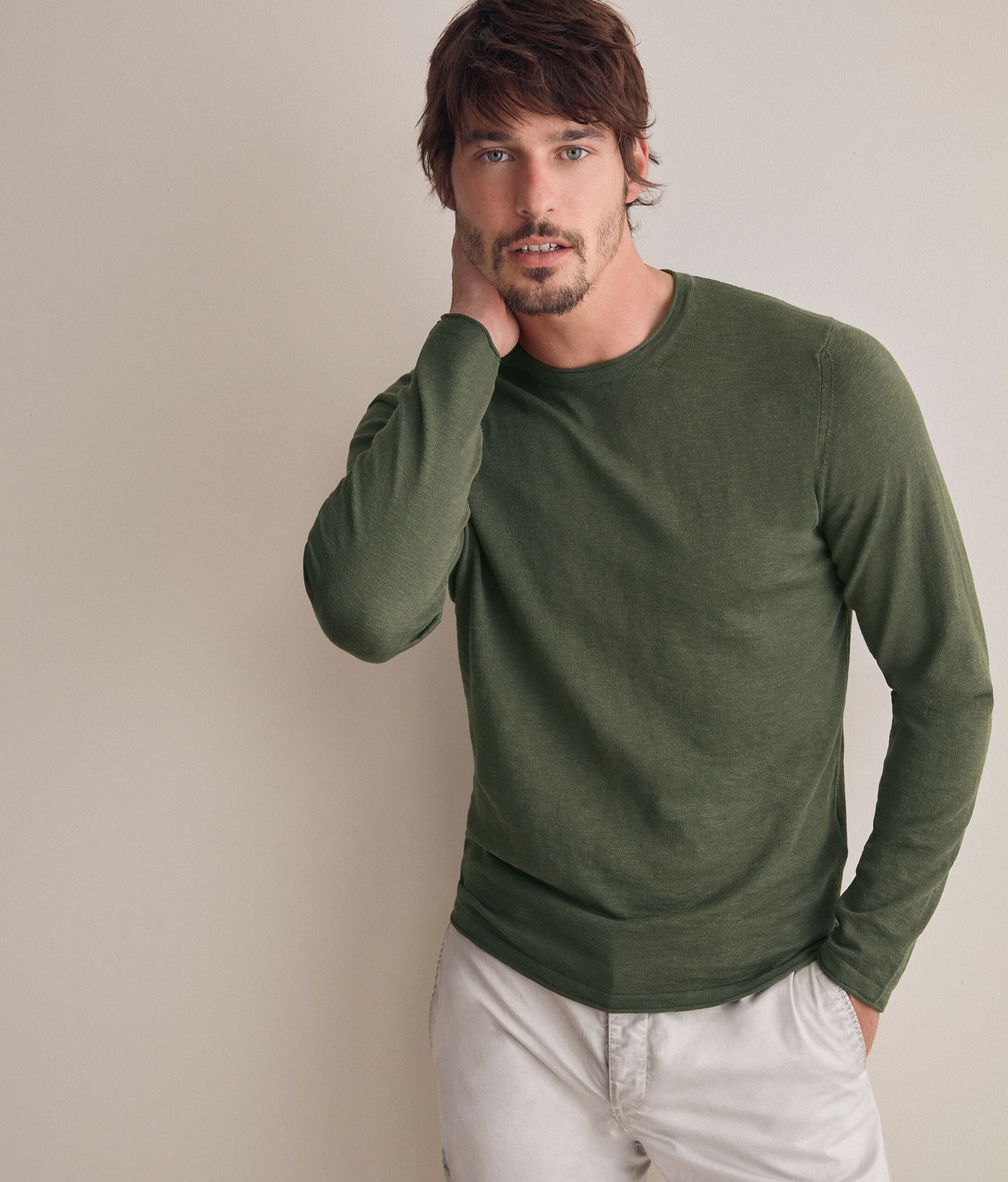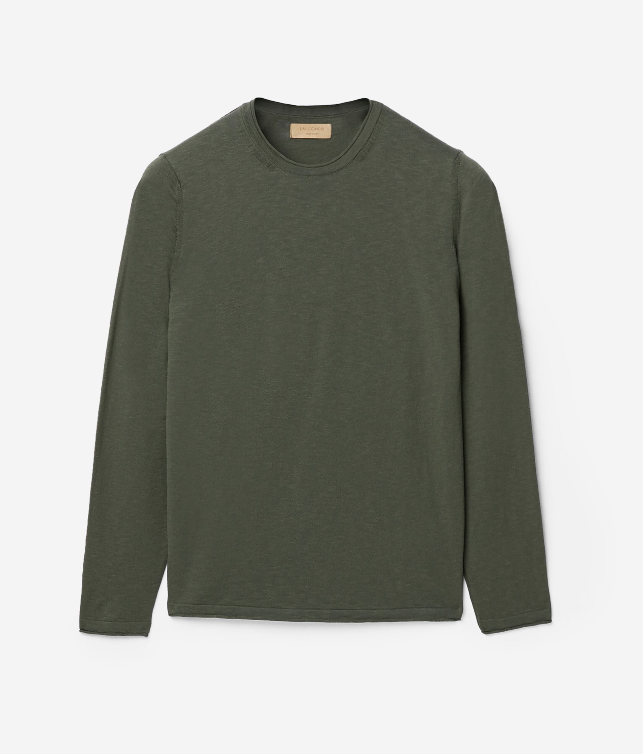 Pull à col ras-du-cou en coton flammé à manches longues. Le Mannequin Mesure 186 Cm Et Porte Une Taille 50 Poitrine : 98 cm / Taille : 82 cm / Bassin : 99 cm