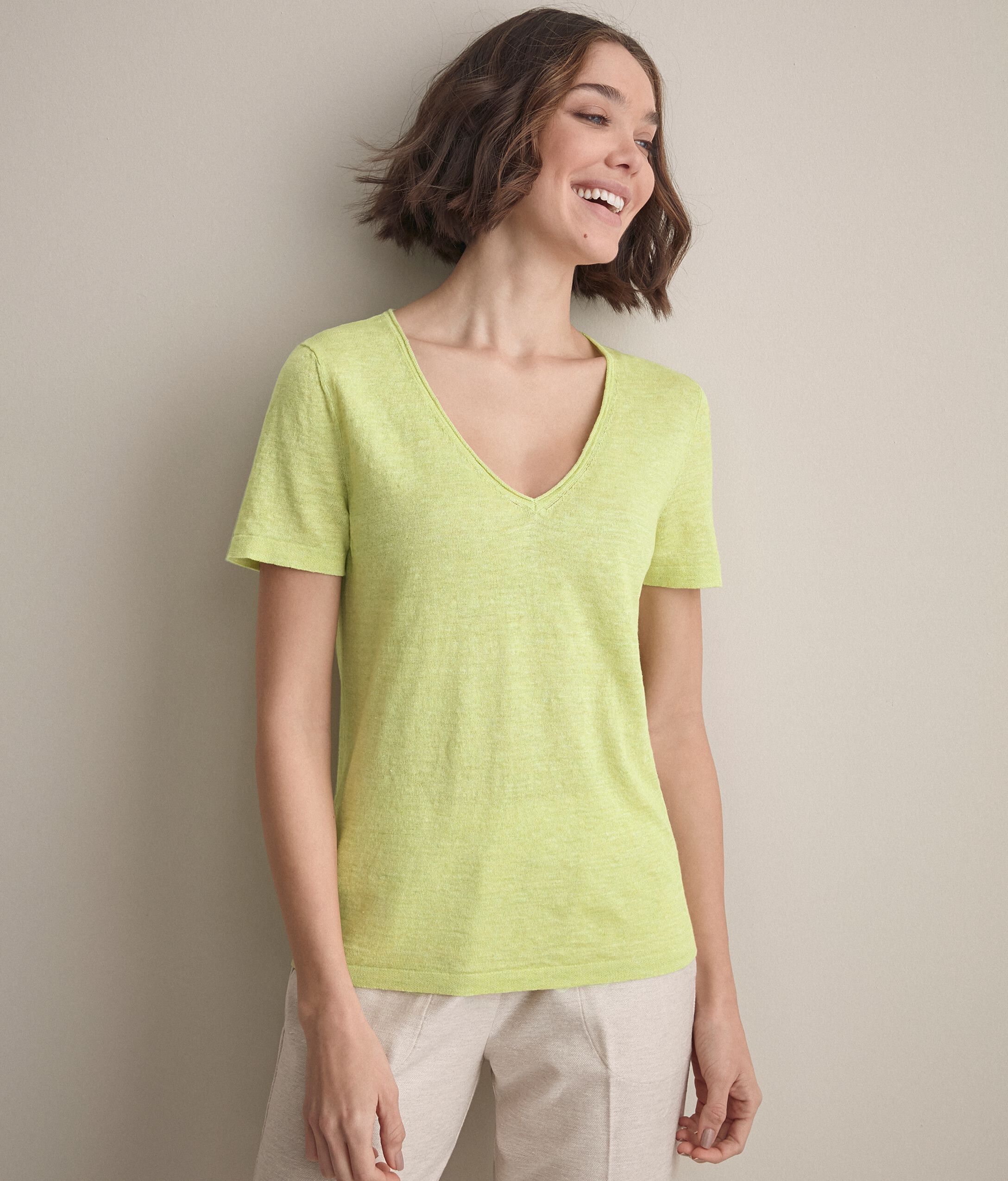 Des lignes essentielles et de légers tissus à peine crêpés se prêtent à l'ouverture d'une nouvelle saison, anticipant des contextes plus chauds et un style informel. Lin et coton donnent vie à une trame fraîche et légère et interprètent à la perfection le goût Falconeri, pour ce t-shirt à col ample en cœur et manches aux coudes. Les petites irrégularités du tissu représentent une valeur exclusive liée aux caractéristiques naturelles de la matière. La coupe et la longueur sont classiques. Le Mannequin Mesure 179 Cm Et Porte Une Taille MMPoitrine : 88 cm / Taille : 67 cm / Bassin : 94 cm