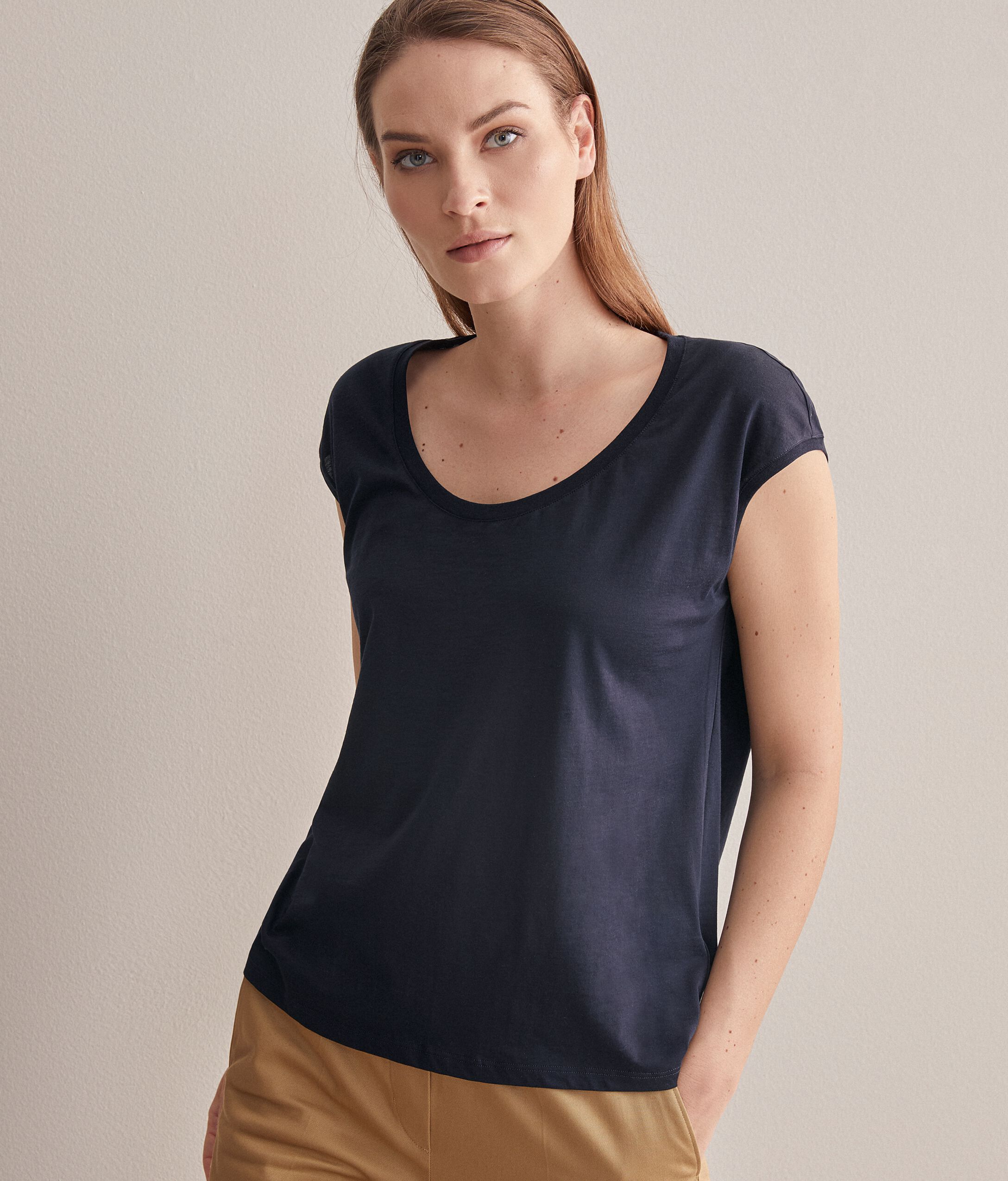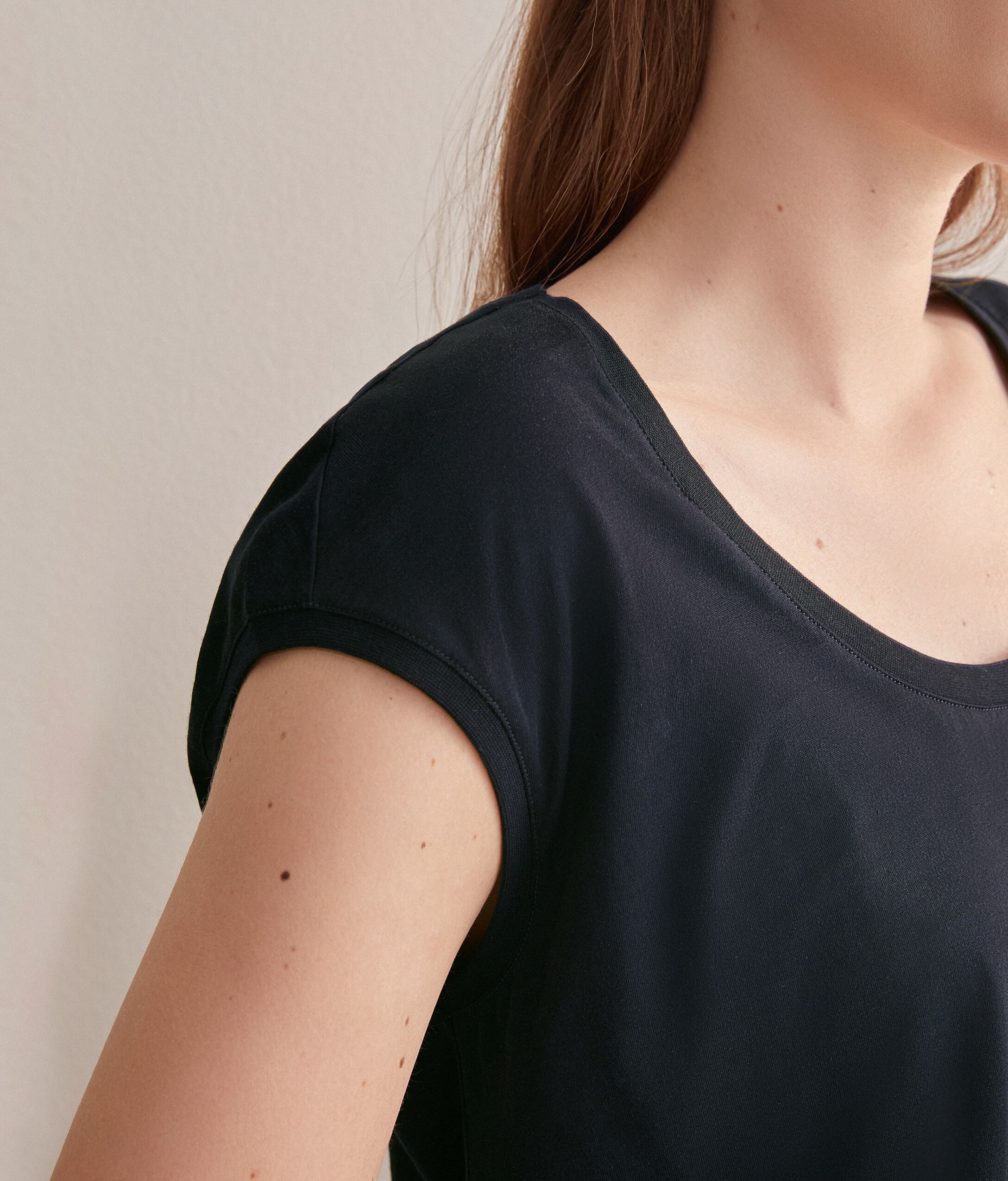T-shirt en Coton et Soie à Col Ample