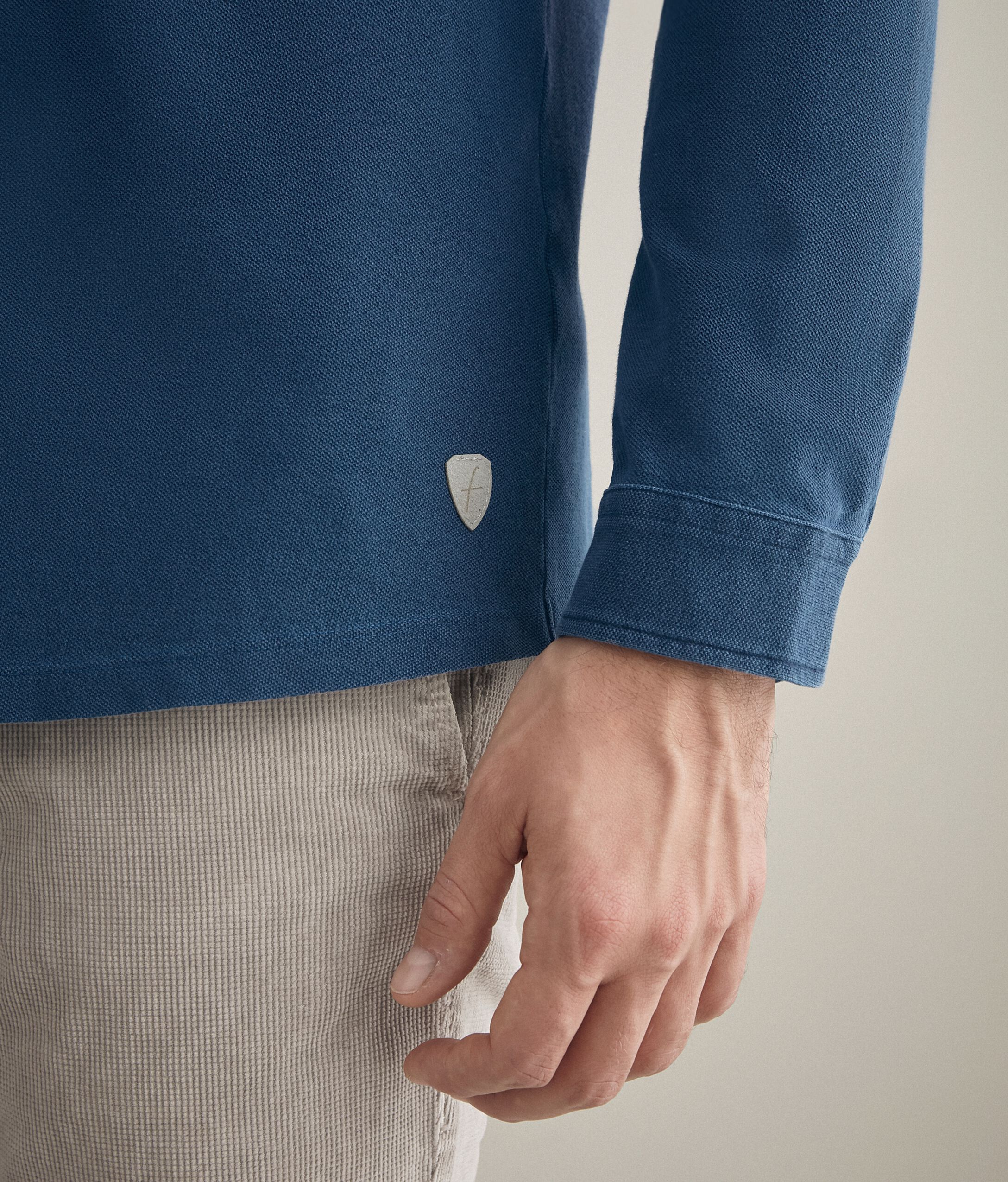 Tee-shirt chemise en maille piquée caractérisé par une teinture à effet sablé, avec des pinces à l’arrière. Le sous-col et l'intérieur des poignets sont en toile. Coupe normale. Le mannequin mesure 186 cm et porte une taille 50 Poitrine : 98 cm / Taille : 82 cm / Bassin : 99 cm