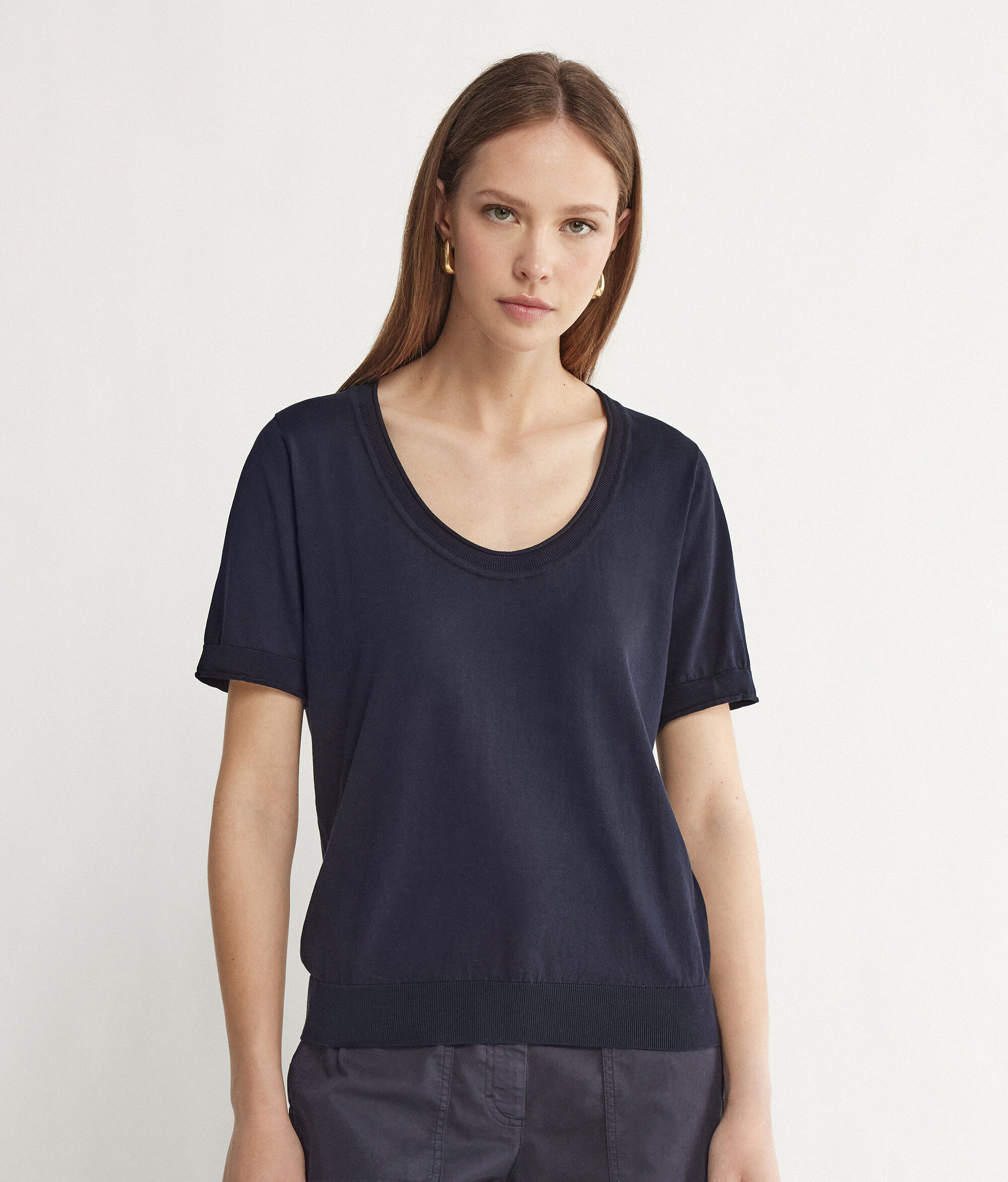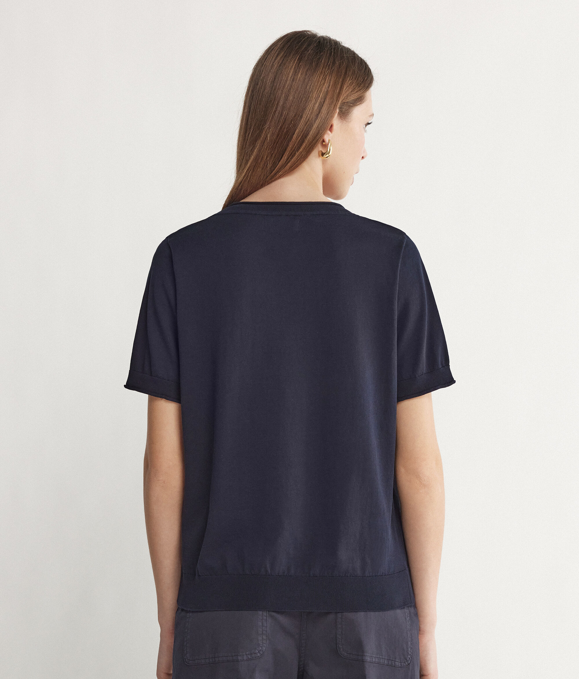 • Rolled on the neckline and bottom of the sleeve