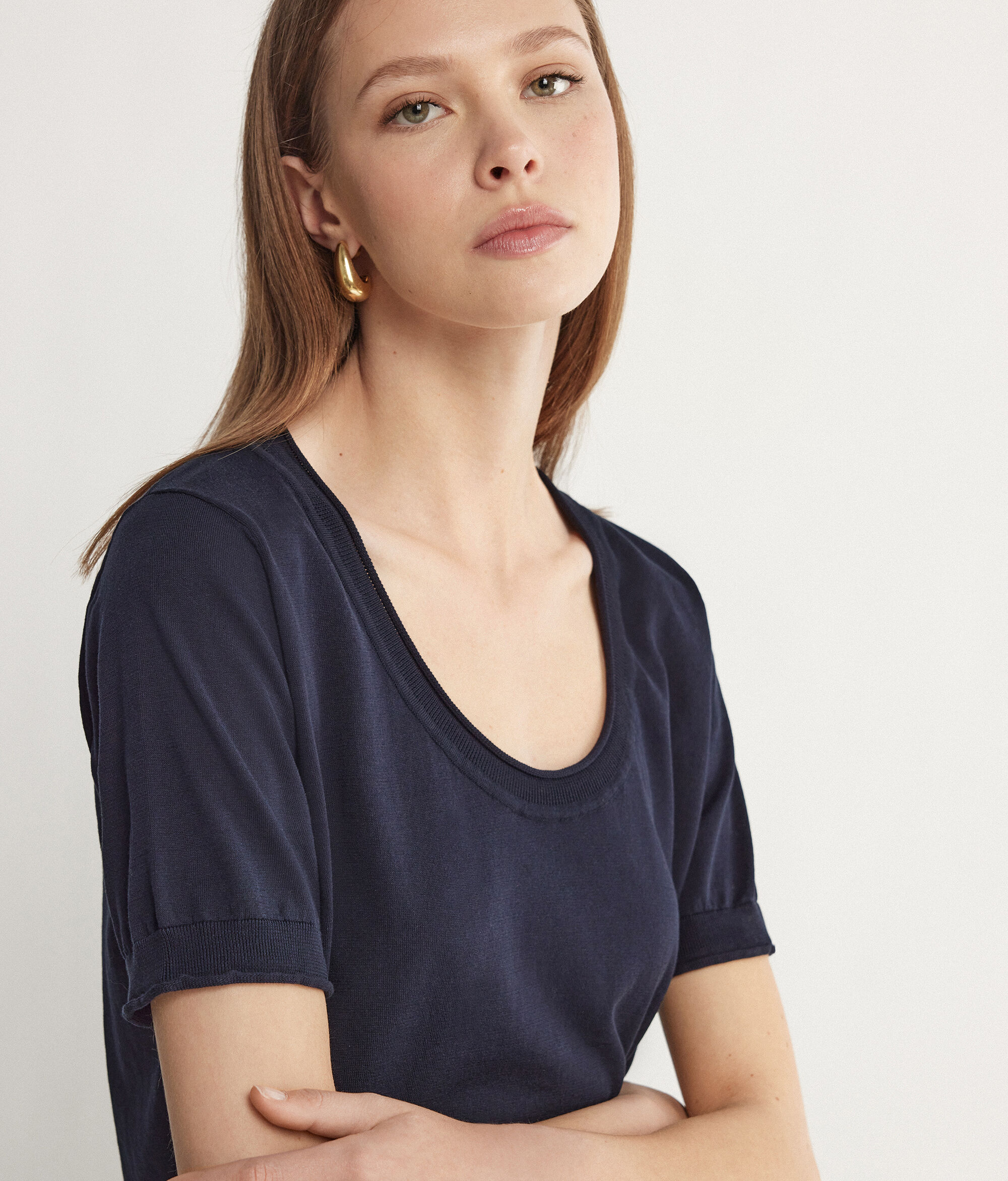 Short-Sleeved Wide-Neck Jumper
