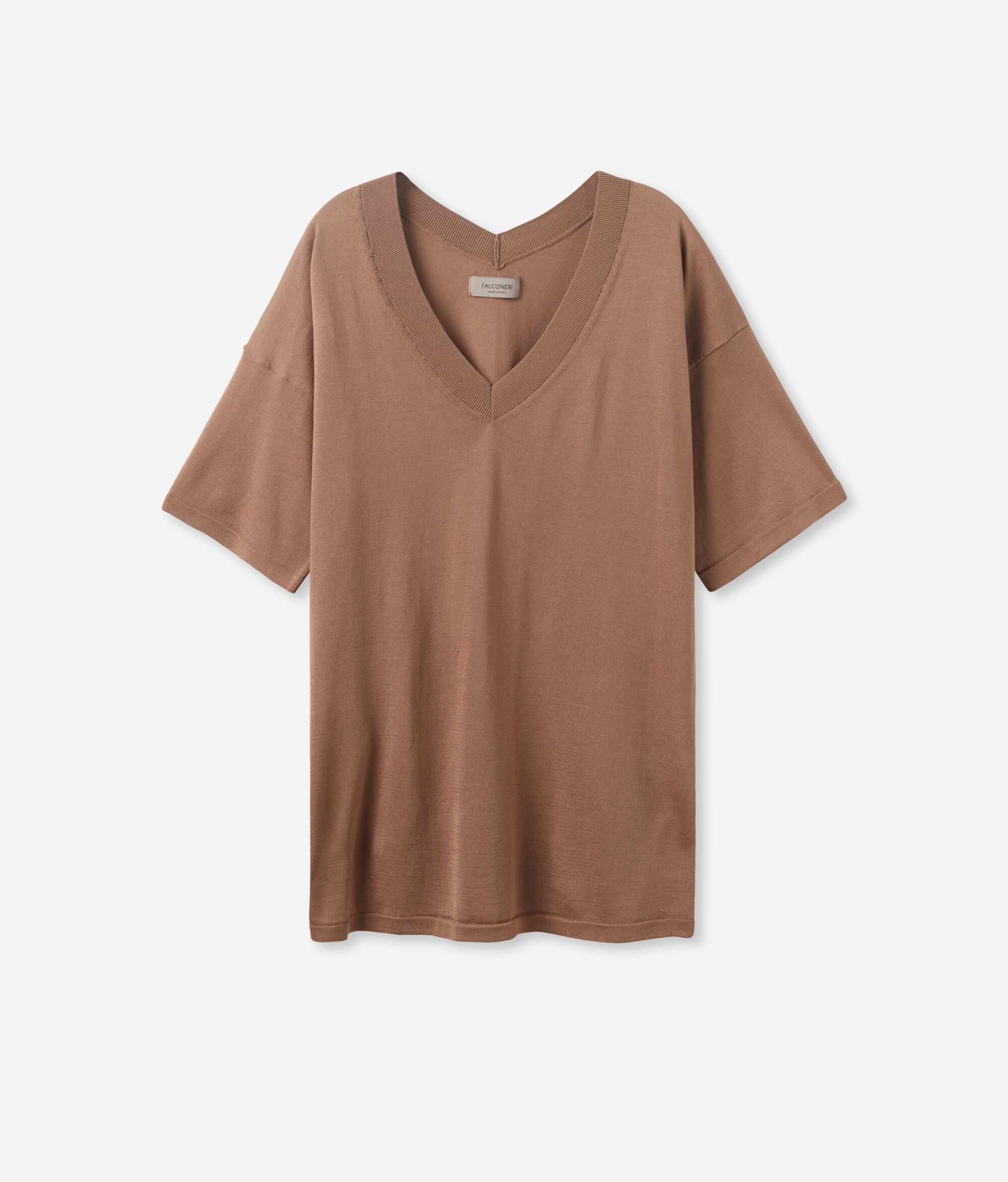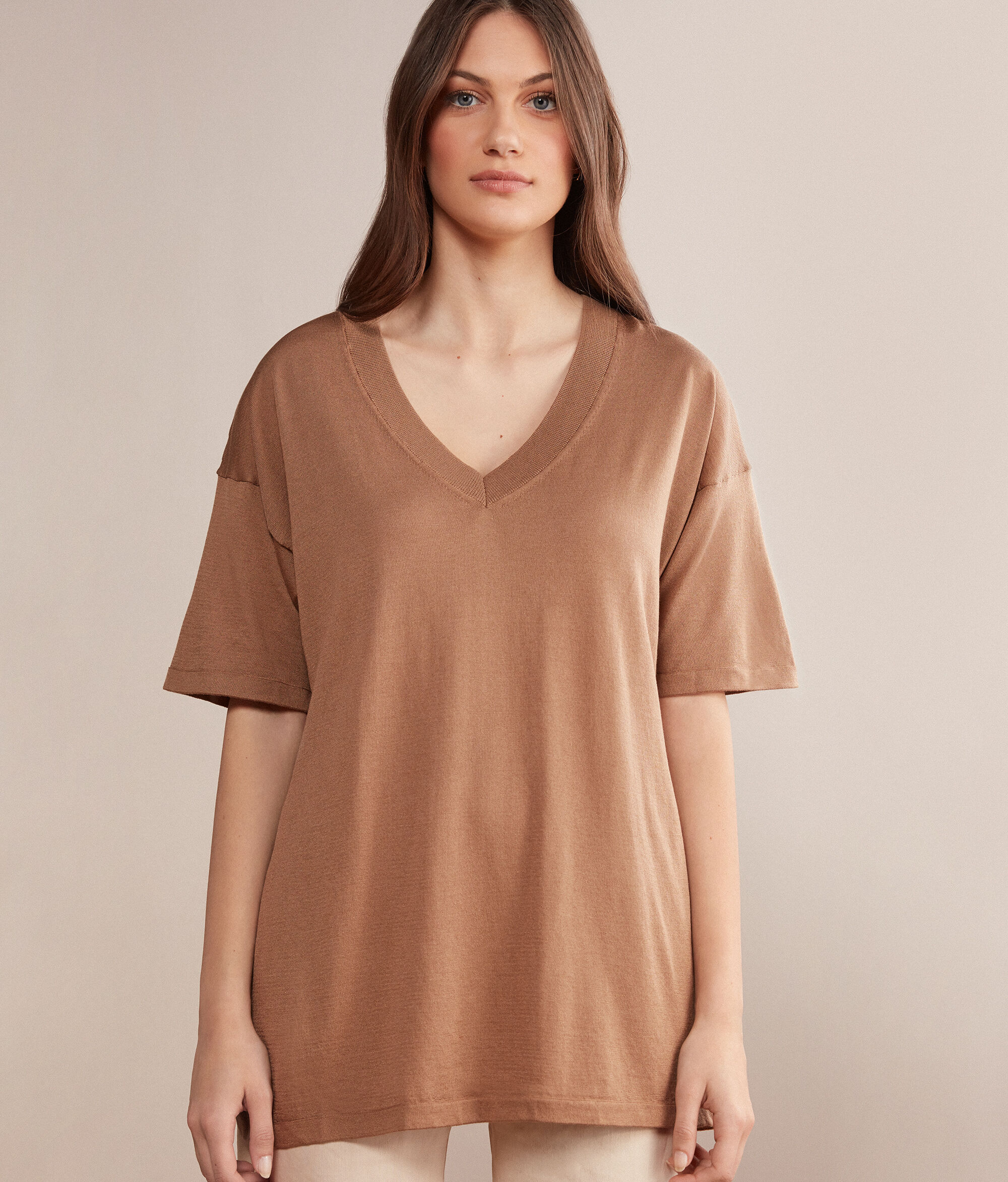 Bluzka z ozdobnym rozcięciem z jedwabiu i bawełny