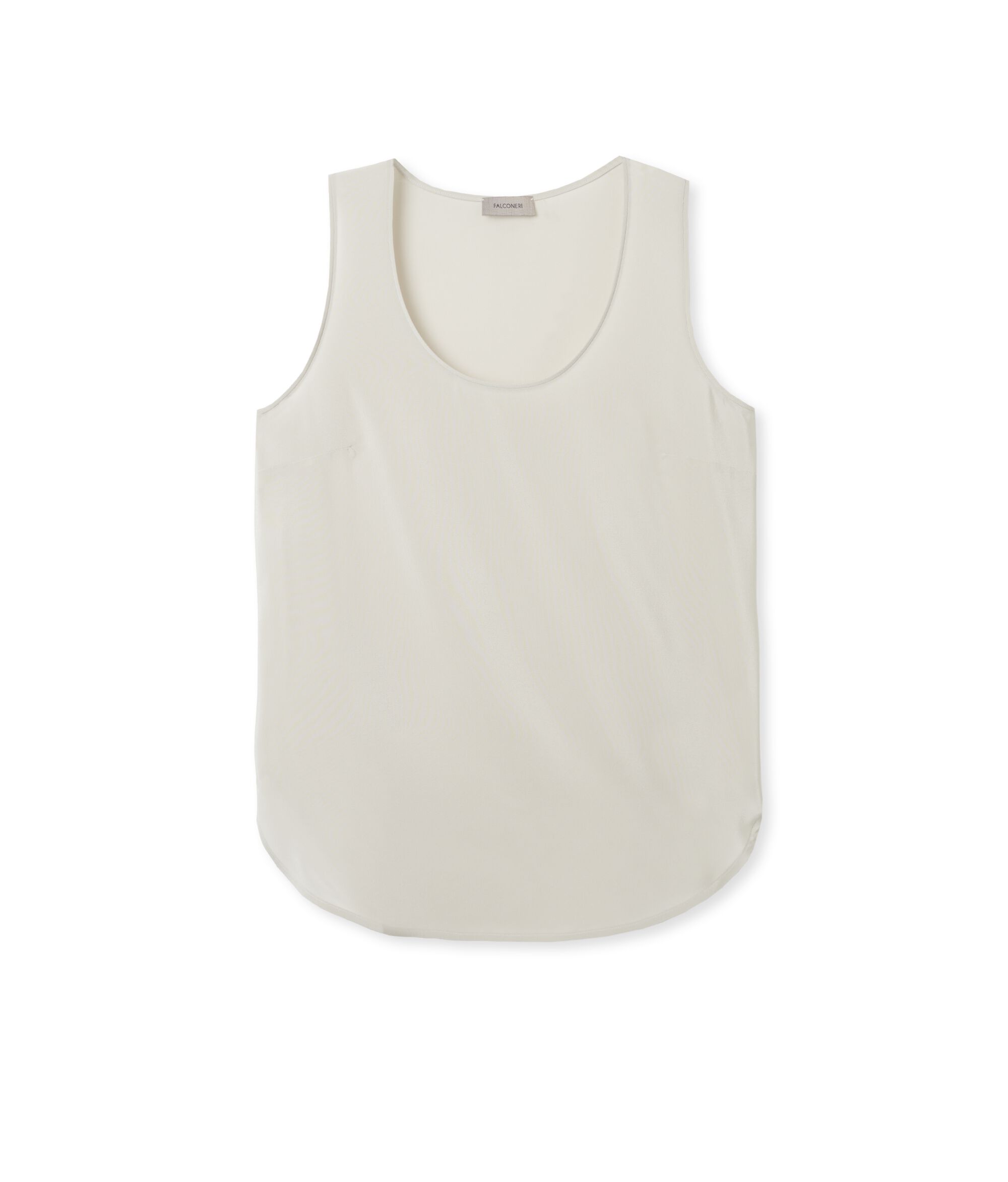Nowa propozycja Falconeri dla miłośniczek wyrafinowanych stylizacji i stylowych detali: podkoszulek z dużym dekoltem w całości wykonany ze zwiewnego jedwabiu, który podkreśla jego luźny fason.