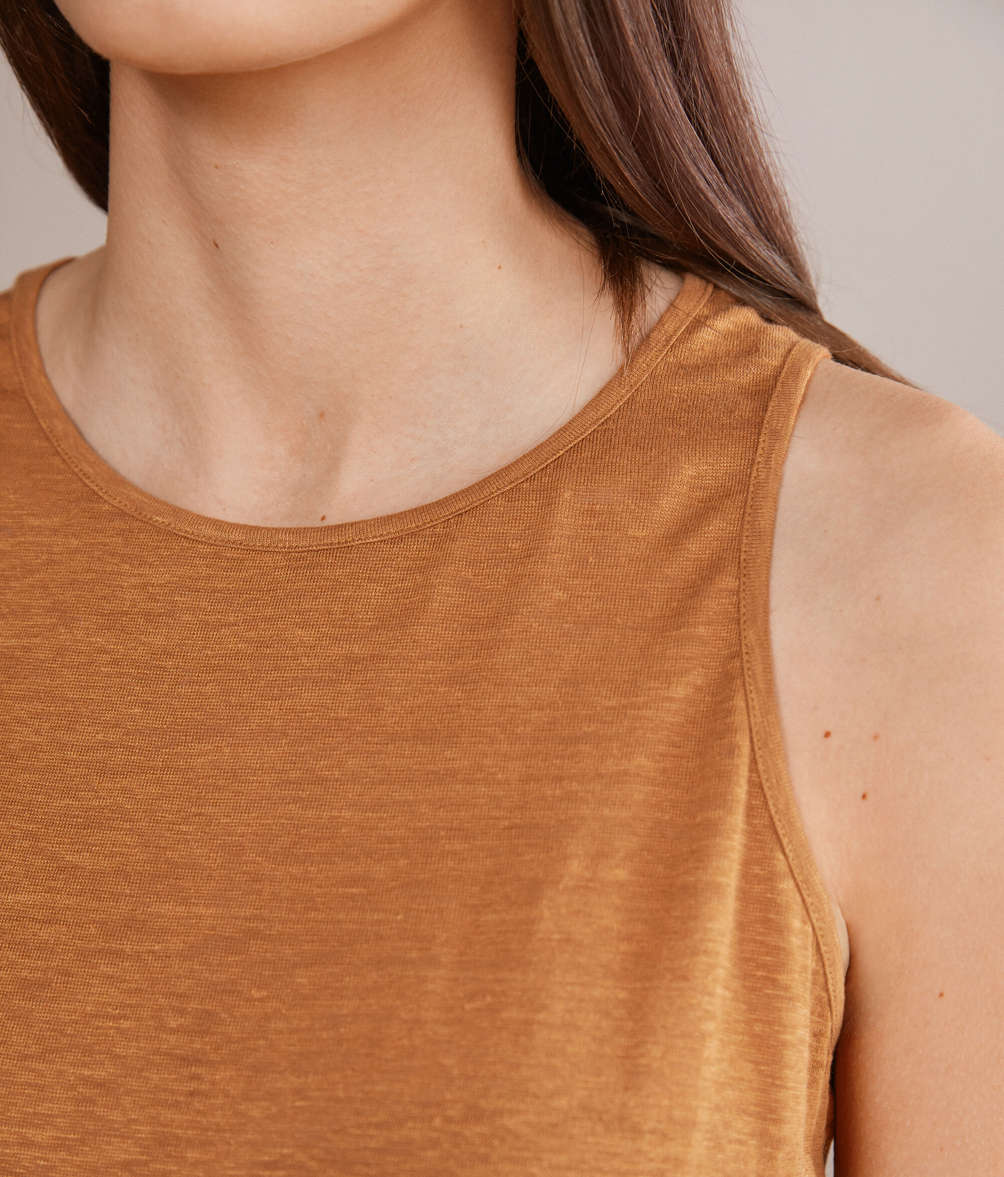 Szlachetny charakter wyselekcjonowanych przędz od zawsze stanowi znak rozpoznawczy marki, która w całej swojej kolekcji na pierwszym miejscu stawia charakterystyczne detale, stonowane formy i kobiecą elegancję. Standardowy krój nowej koszulki bokserki, wykonanej z chłodnej tkaniny, czyni ją idealnym uzupełnieniem klasycznych i współczesnych stylizacji. Niejednolity kolor, uzyskany dzięki specjalnej obróbce lnu, stanowi zaletę produktu i czyni go wyjątkowym.