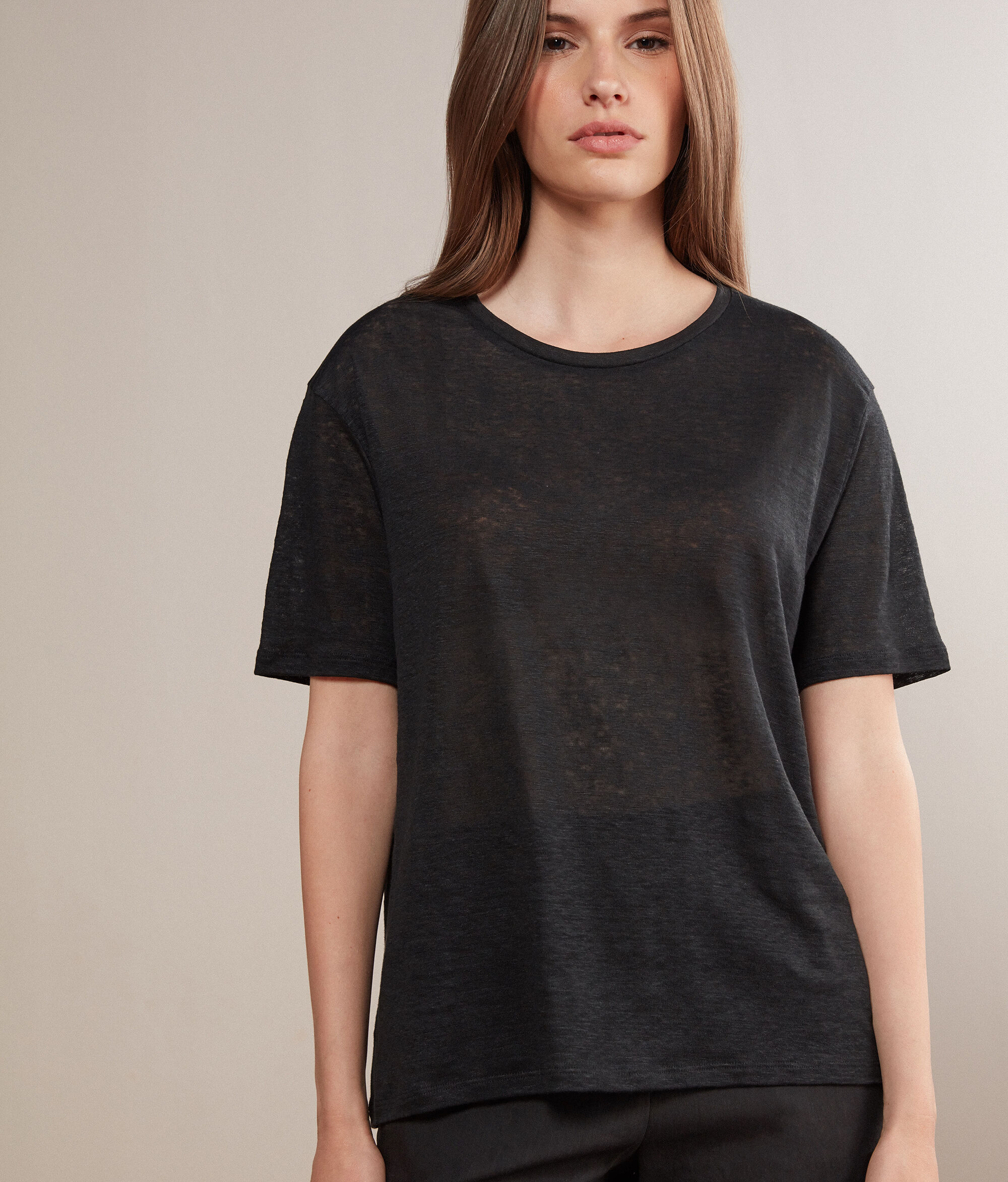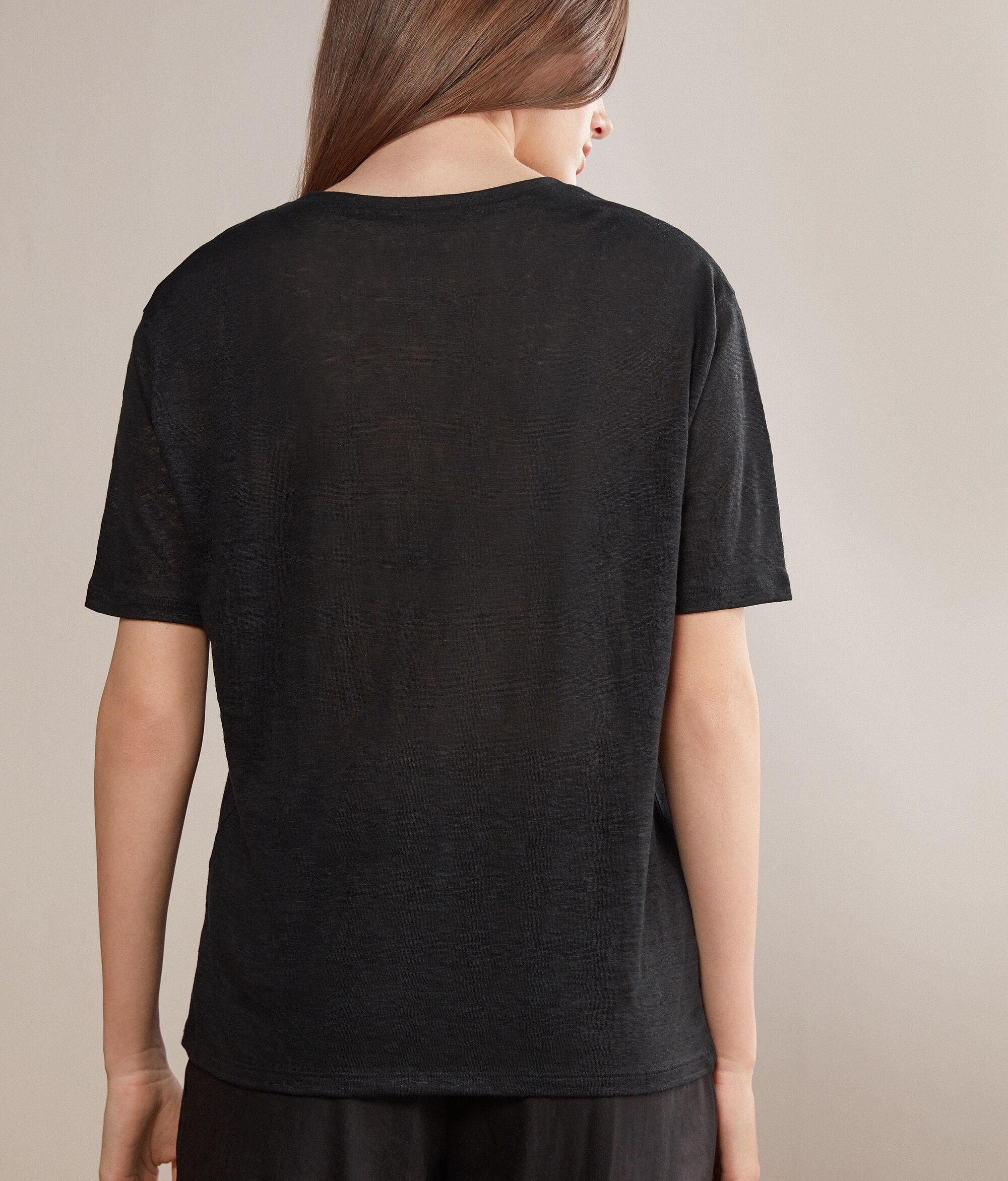 T-shirt z okrągłym dekoltem z lnianego dżerseju