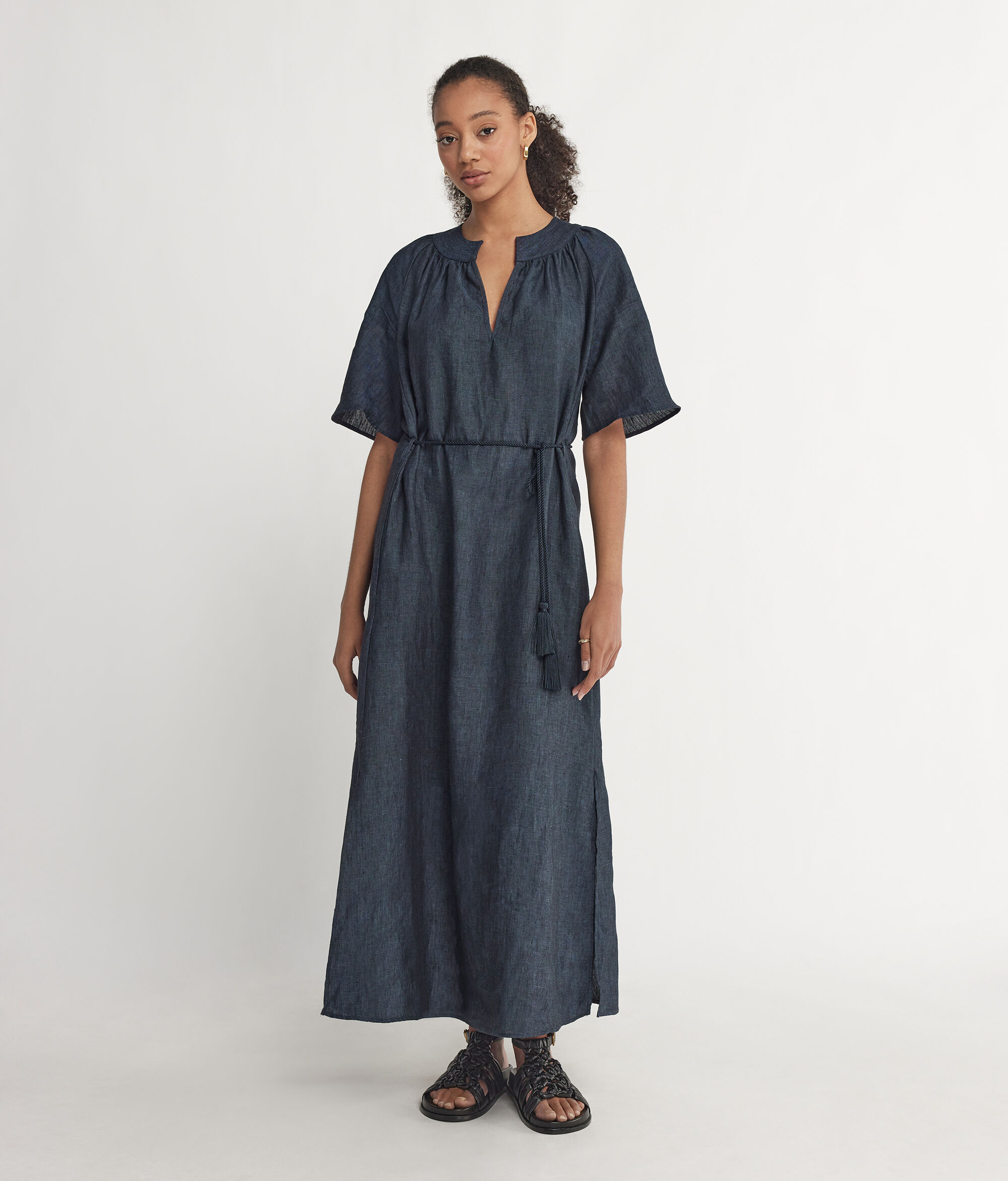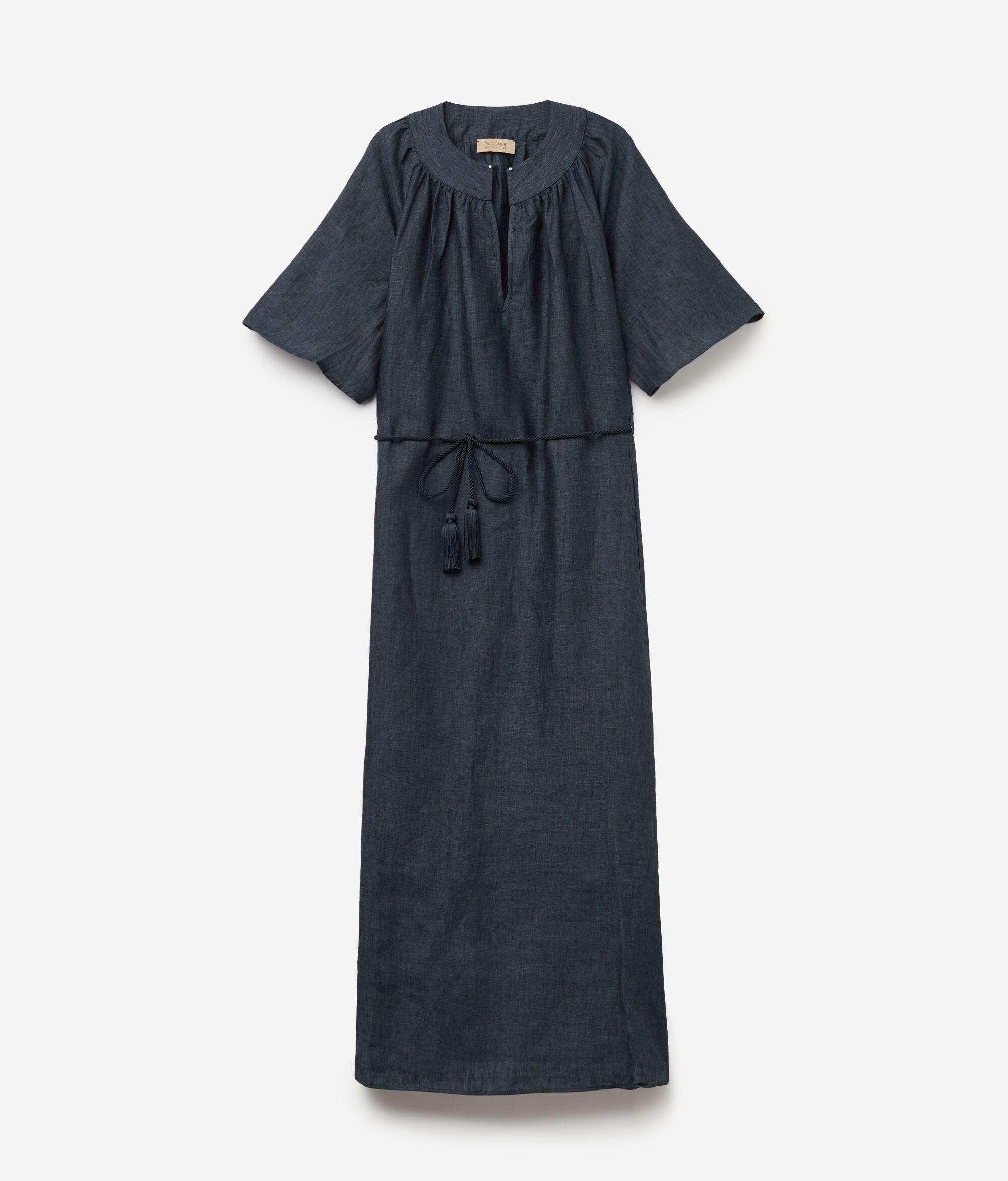 La ricercatezza del lino incontra le linee morbide ed eleganti di questo abito firmato Falconeri. A caratterizzare il capo, le maniche raglan e il collo alla coreana con impunture. Il laccio in vita con nappine accentua il punto vita mentre passanti e spacchi laterali contribuiscono a dare leggerezza alla gonna. Un abito perfetto per una passeggiata estiva in città o sul lungomare.