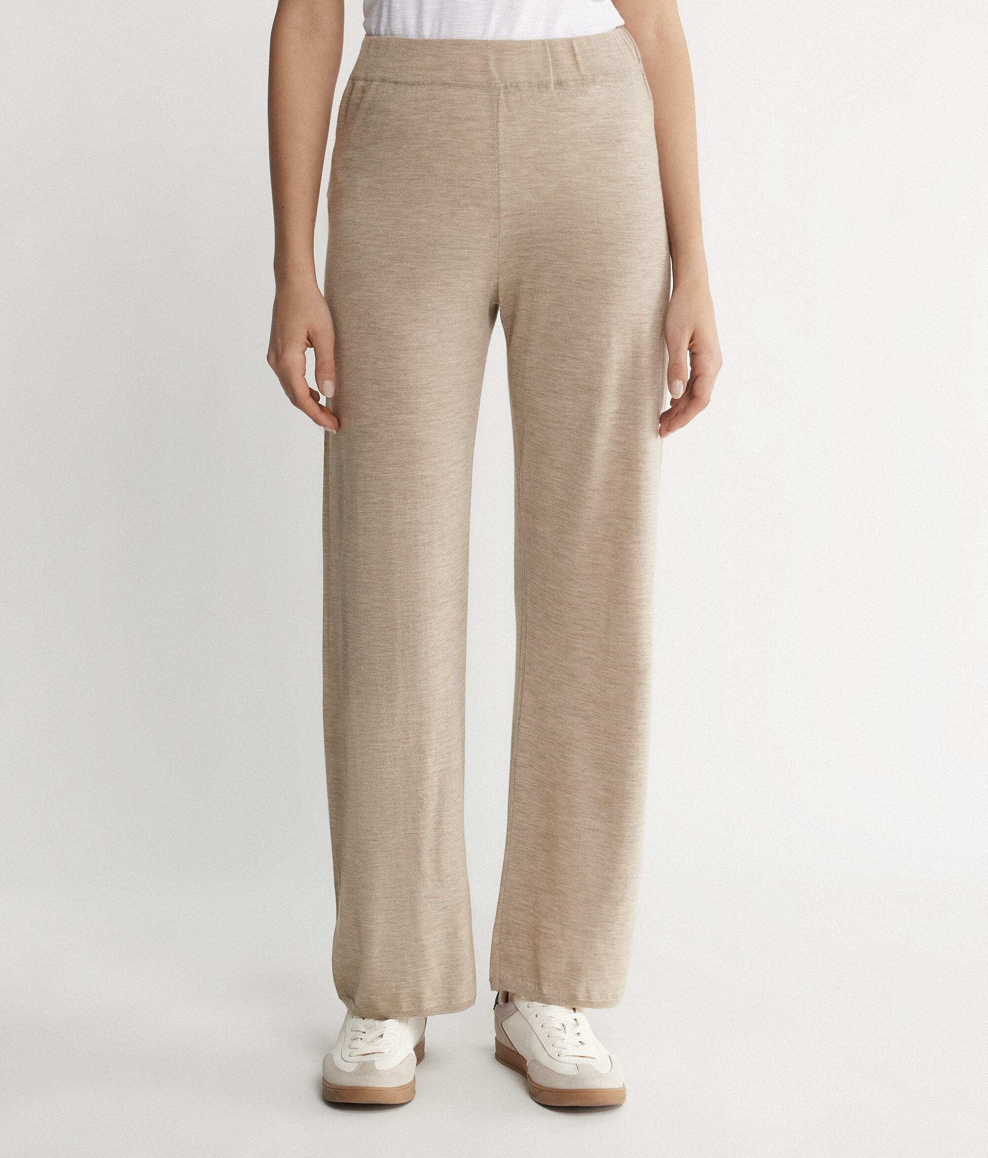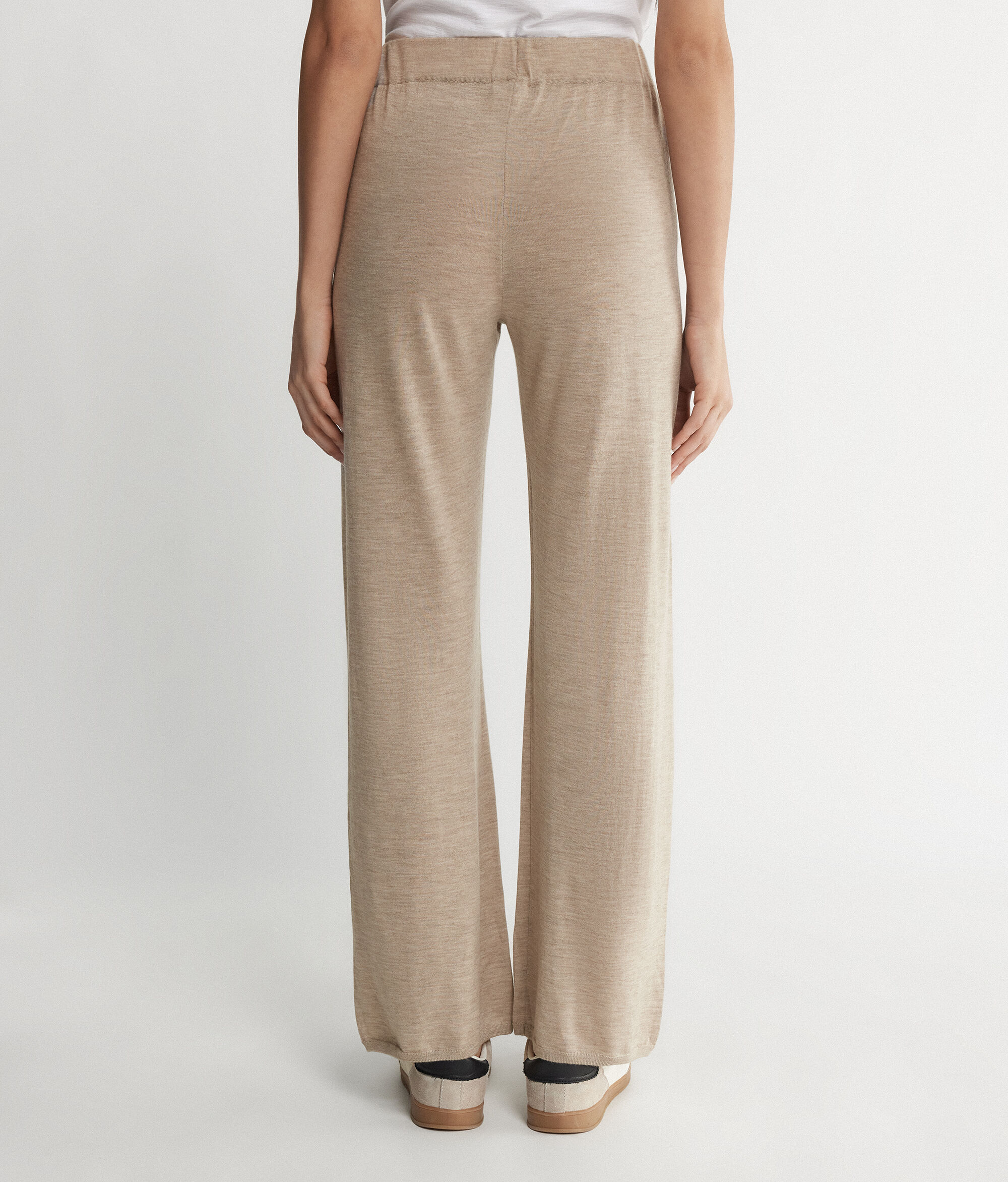 Il pantalone è un modello a palazzo in cashmere ultrafine con cinturino elastico in vita. La morbidezza del cashmere che lo caratterizza ne conferisce una vestibilità morbida.