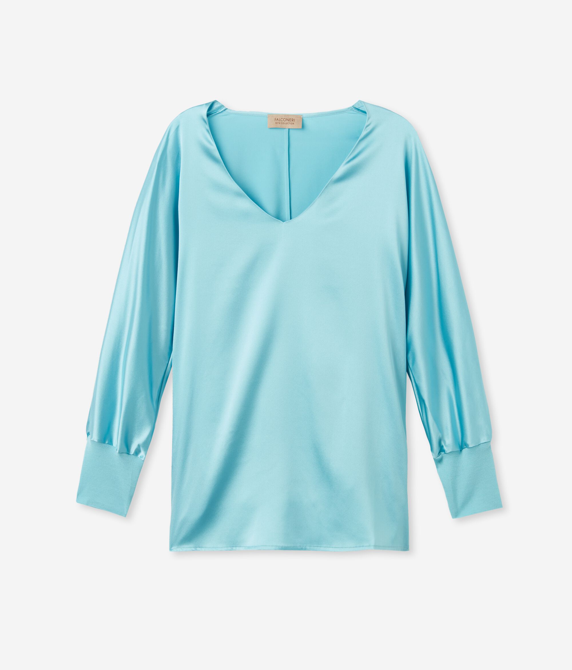 Per chi cerca uno look sofisticato capace di valorizzare i dettagli di stile, Falconeri propone una blusa interamente realizzata in raso di seta sapientemente disegnata per enfatizzare le morbide linee del tessuto. I volumi più generosi e fluidi permettono un indosso confortevole ed i dettagli sartoriali come i polsi in maglia di cotone e lo scollo a V ne rendono più grintoso lo stile.