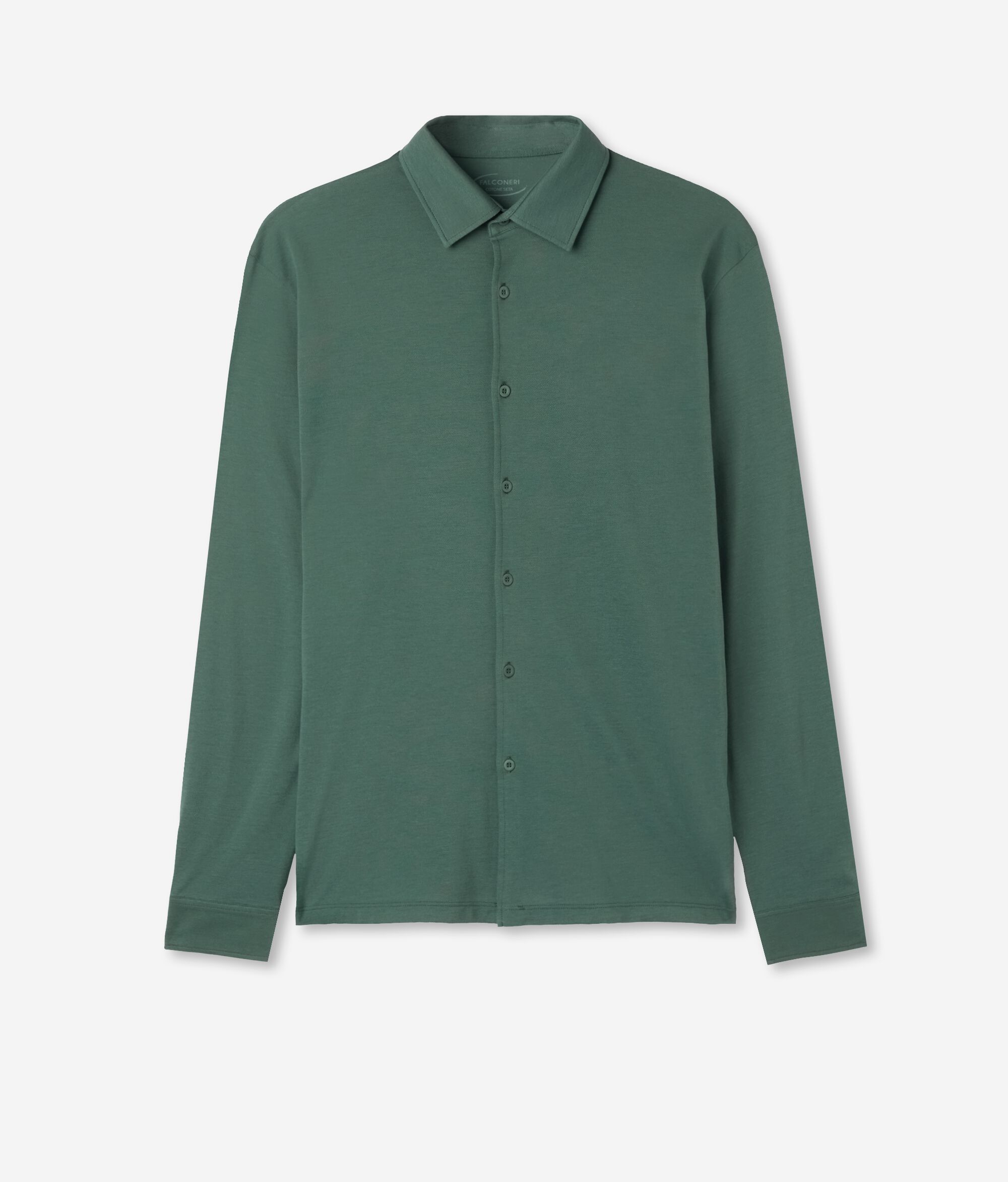 Camicia a Maniche Lunghe in Piquet di Cotone Seta