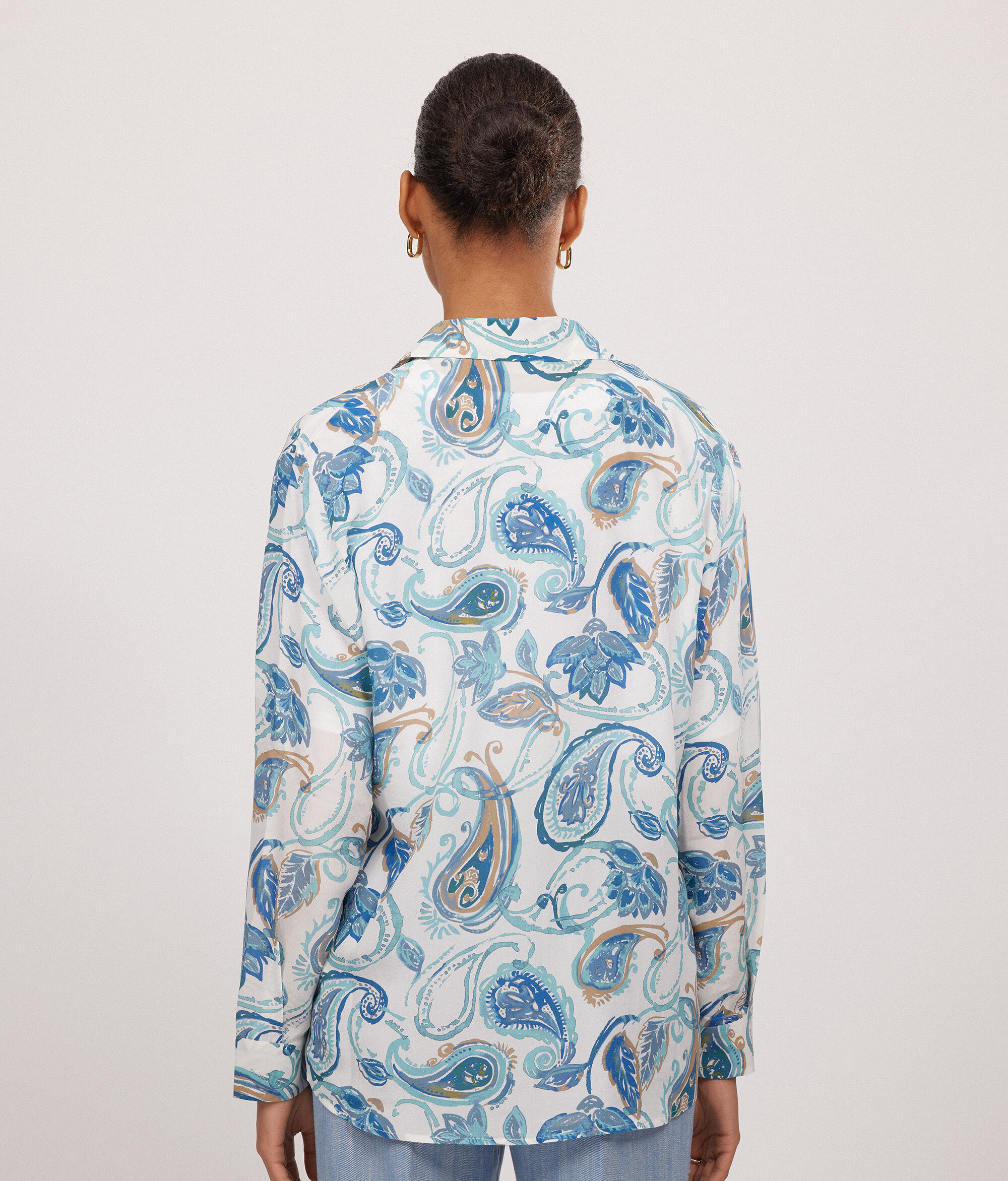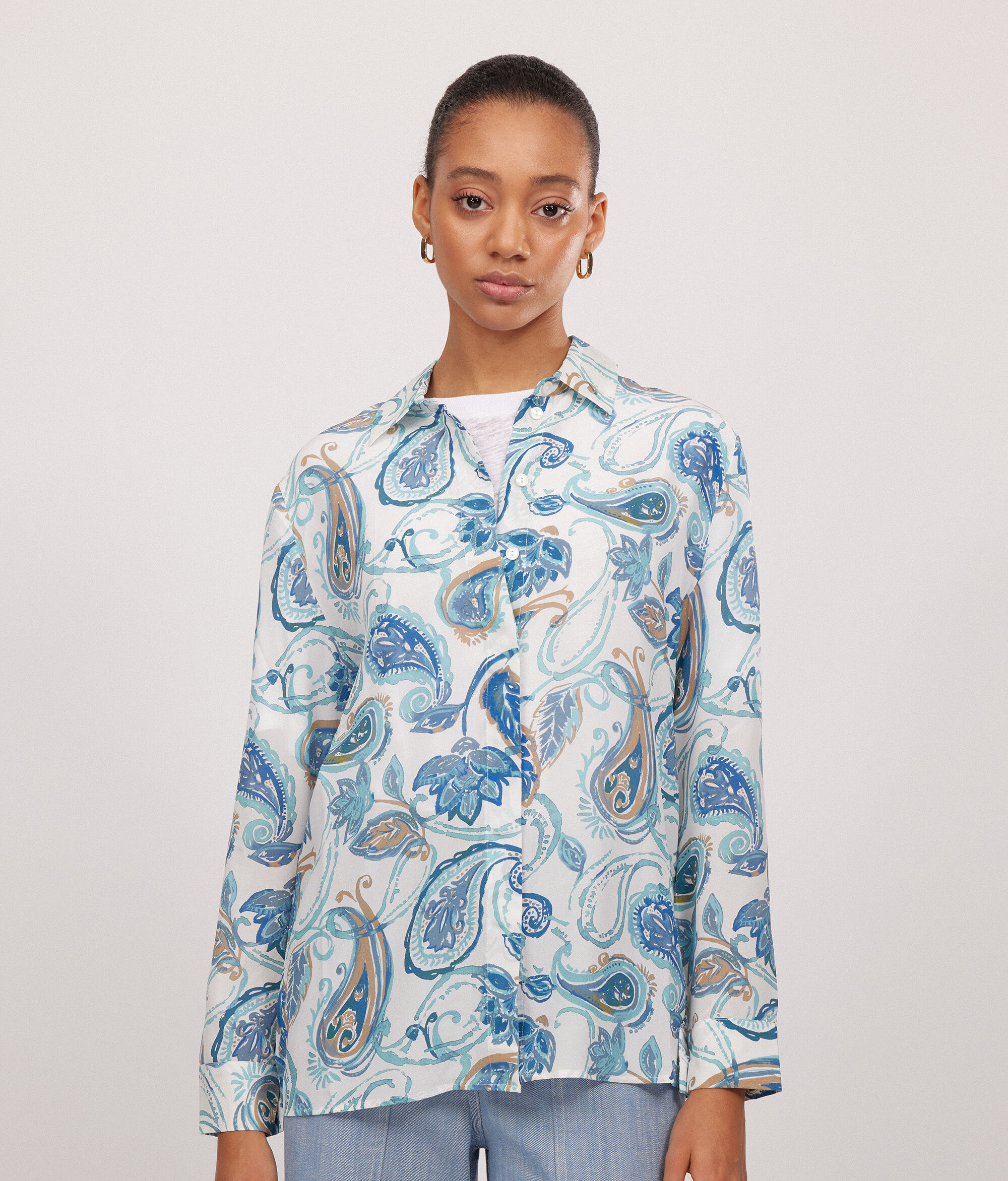 La pregiatezza della seta aggiunge un tocco iconico e prezioso al gusto raffinato della camicia in seta stampata. I dettagli sartoriali arricchiscono il capo donandogli un tocco di femminilità. Le linee regolari delle spalle e i volumi eterei si abbinano alla mano liscia e fresca della seta per rendere la vestibilità piacevole.
