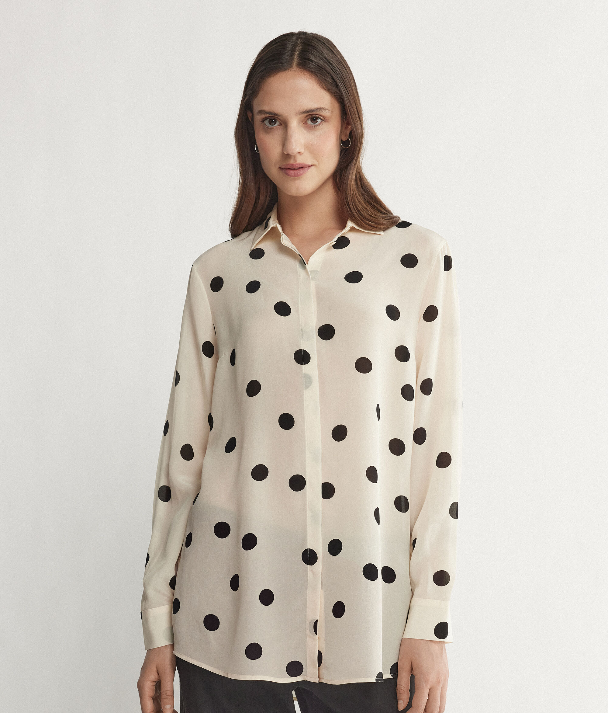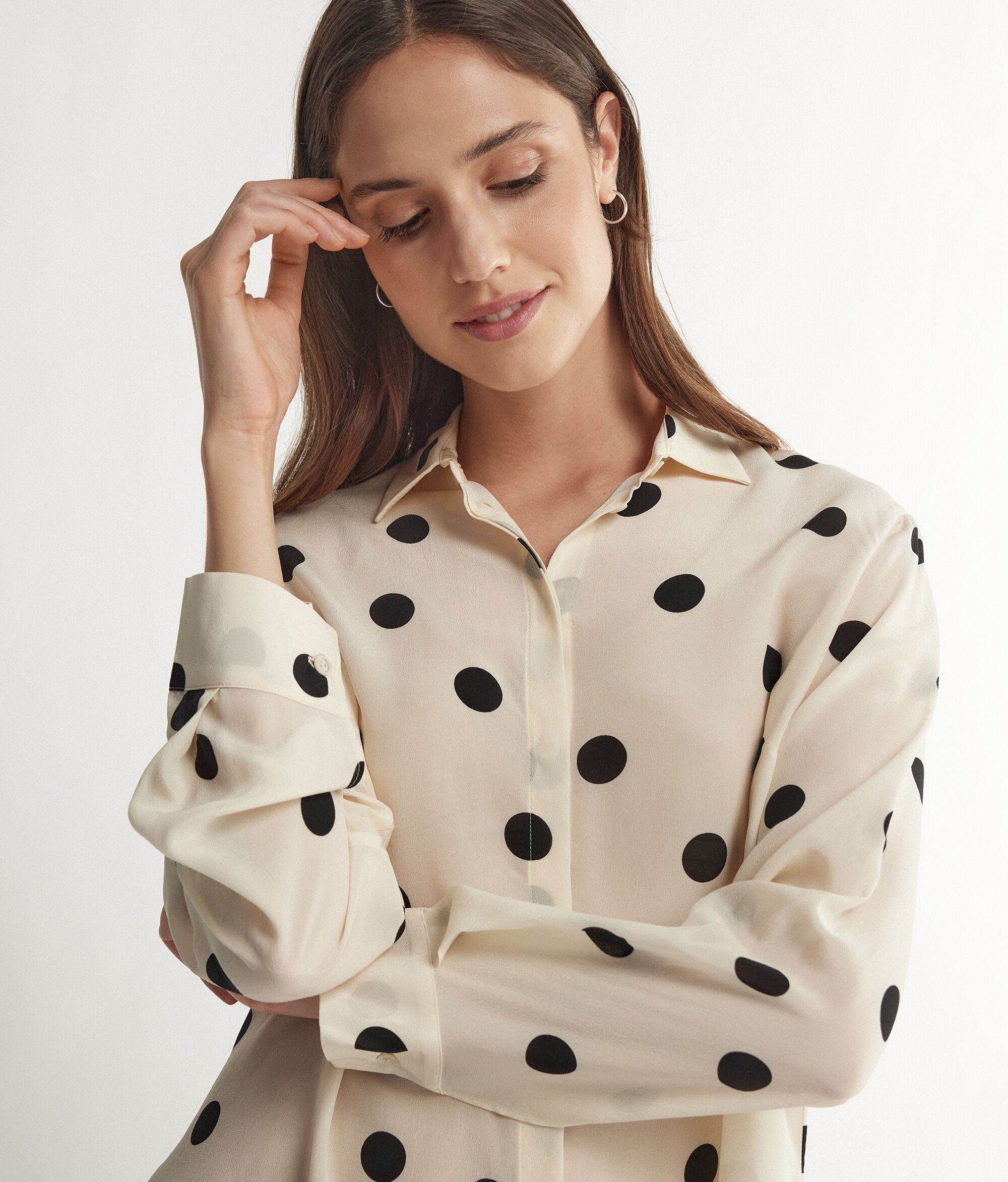 La stampa tipica degli anni Cinquanta incontra le linee semplici e pulite del marchio Falconeri. Perfetta per tutte le occasioni questa camicia è immancabile nell'armadio delle inguaribili romantiche che vogliono esprimere al meglio personalità ed eleganza.