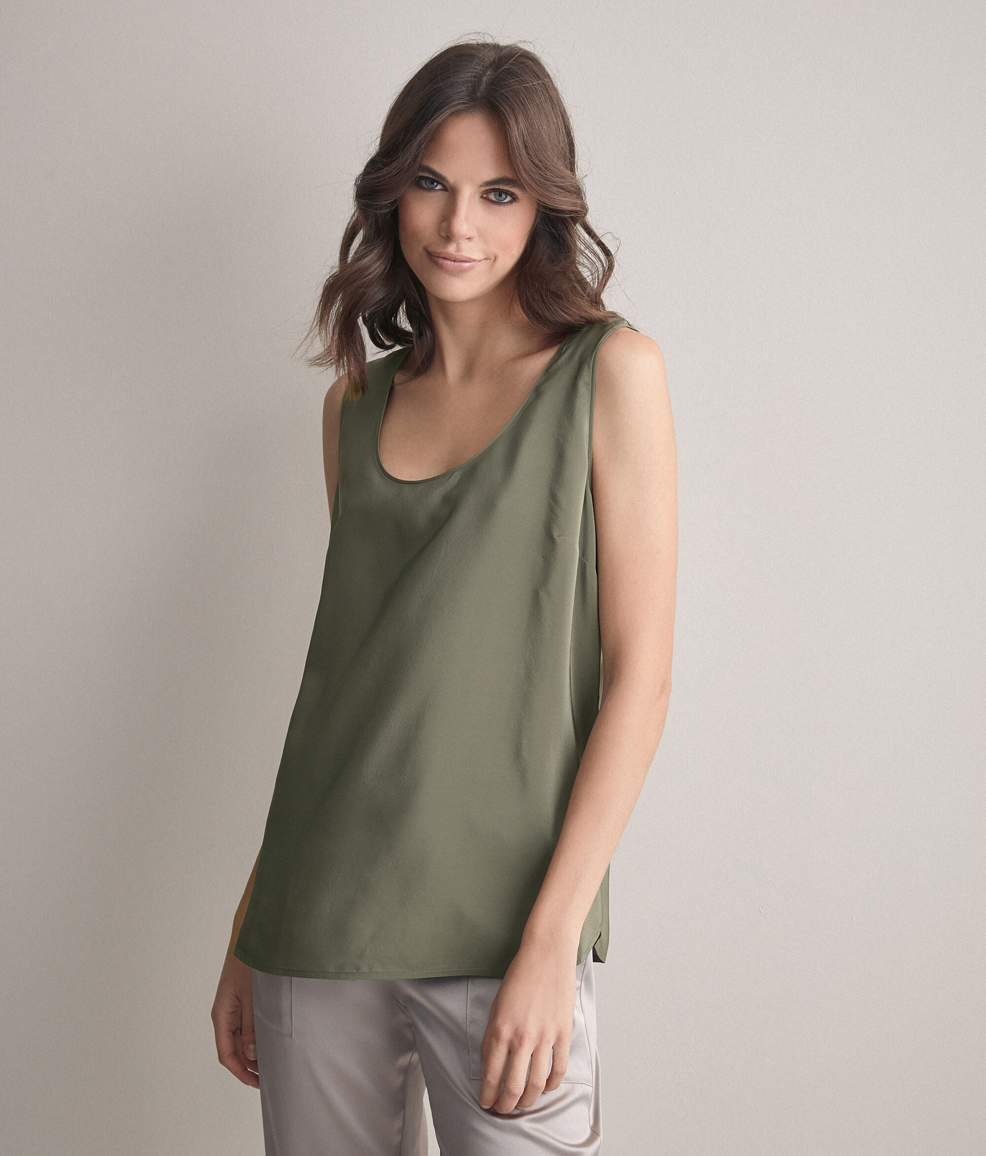 Per chi cerca uno look sofisticato capace di valorizzare i dettagli di stile, Falconeri propone una canotta interamente realizzata in seta con scollo ampio sapientemente disegnata per enfatizzare le morbide linee del tessuto.