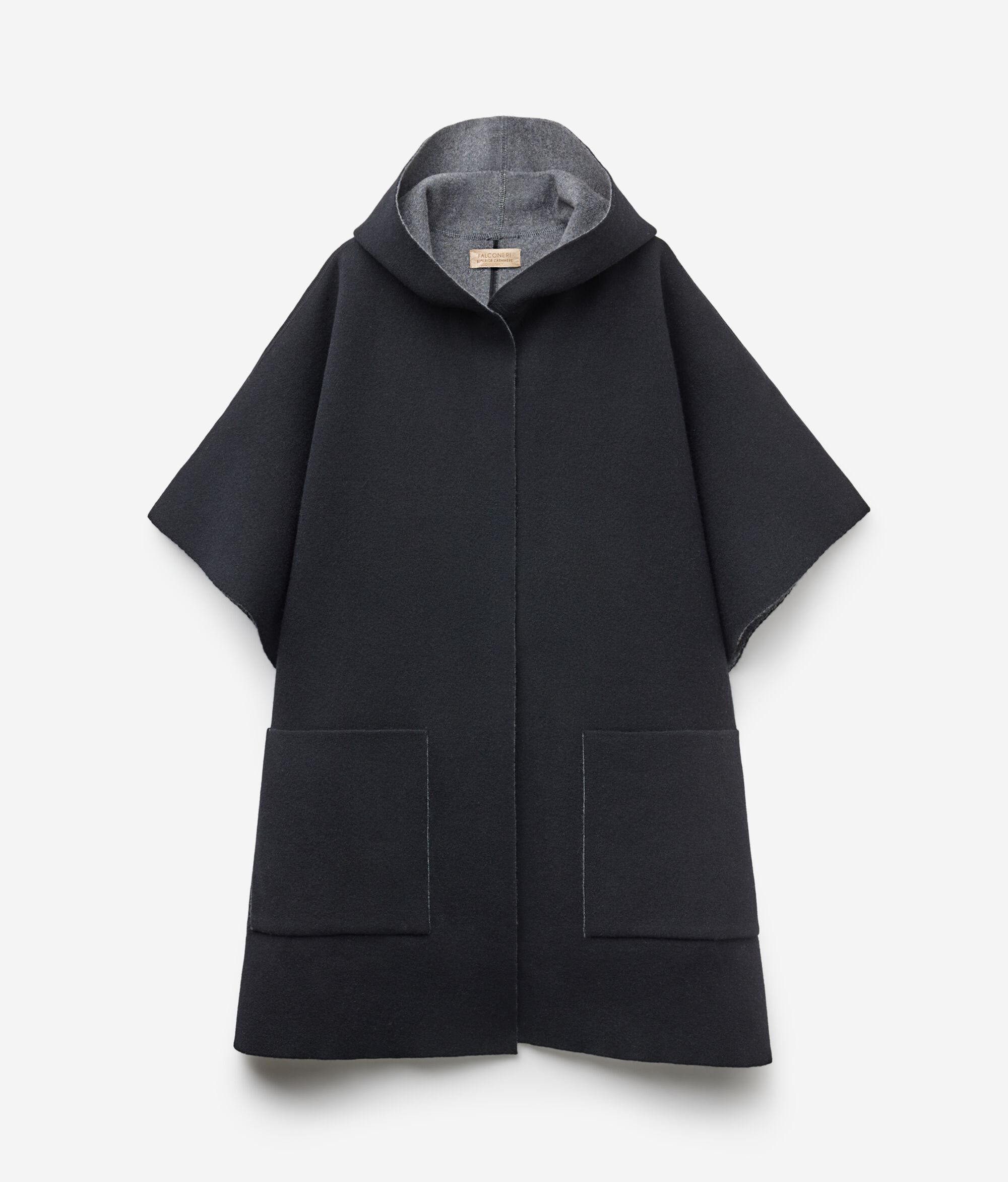 Linee rilassate e dettagli sartoriali si incontrano in questa cappa bicolore a maniche corte realizzata in soffice Cashmere Ultrasoft. Dotata di una chiusura con bottoni automatici è ulteriormente arricchita da due pratiche tasche. La sua vestibilità morbida offre un look moderno e sofisticato, perfetto per completare ogni outfit con un tocco di eleganza casual.