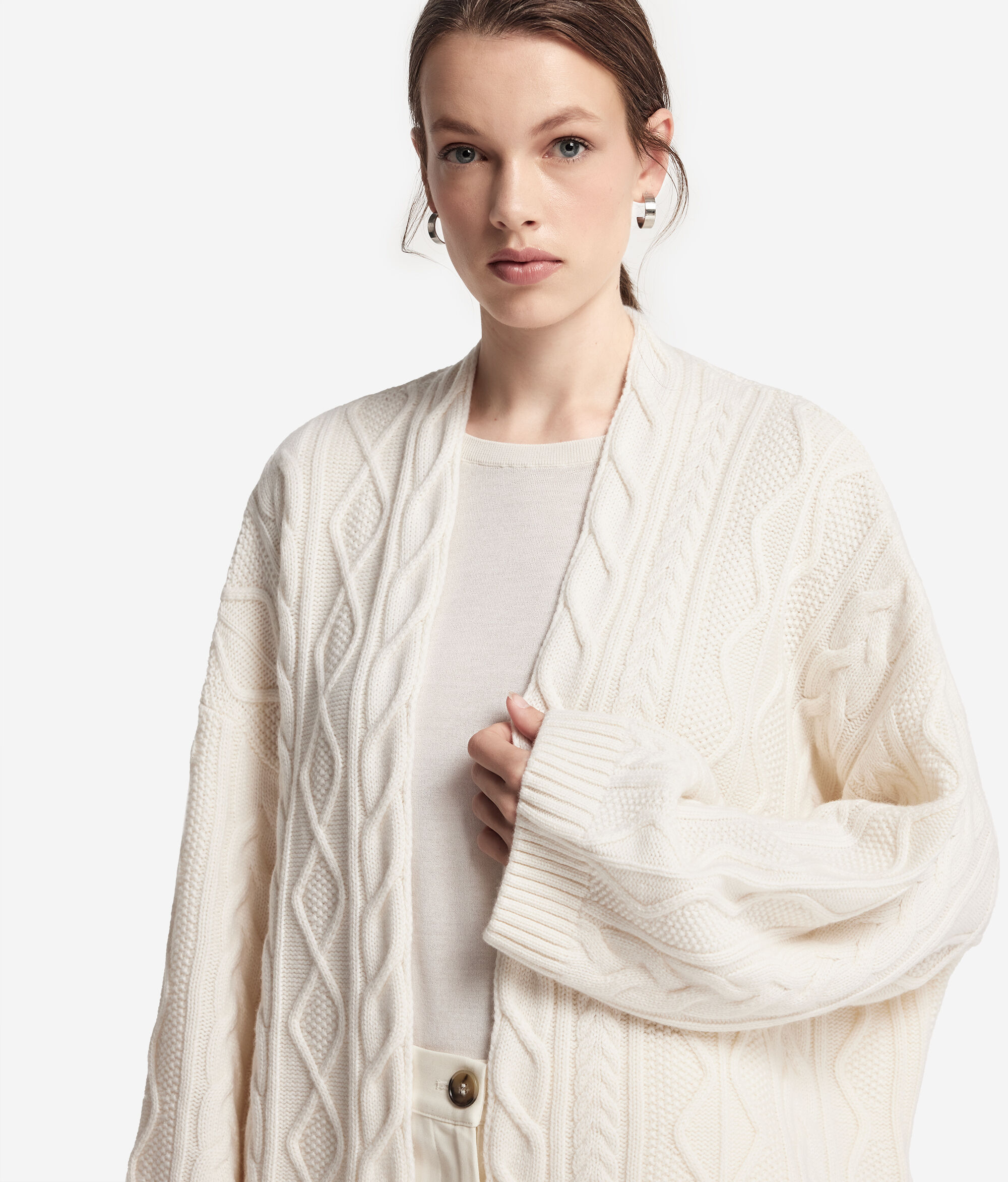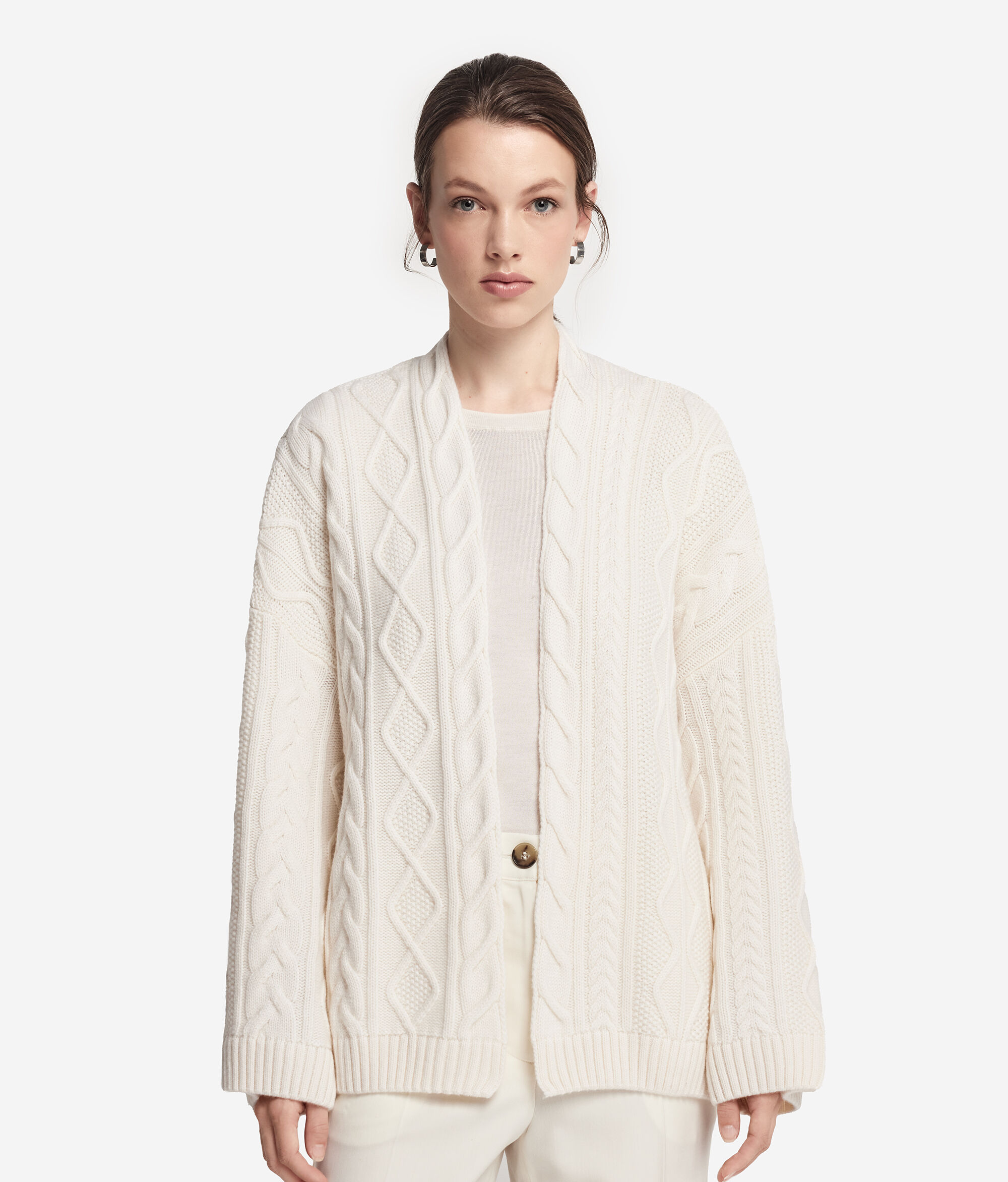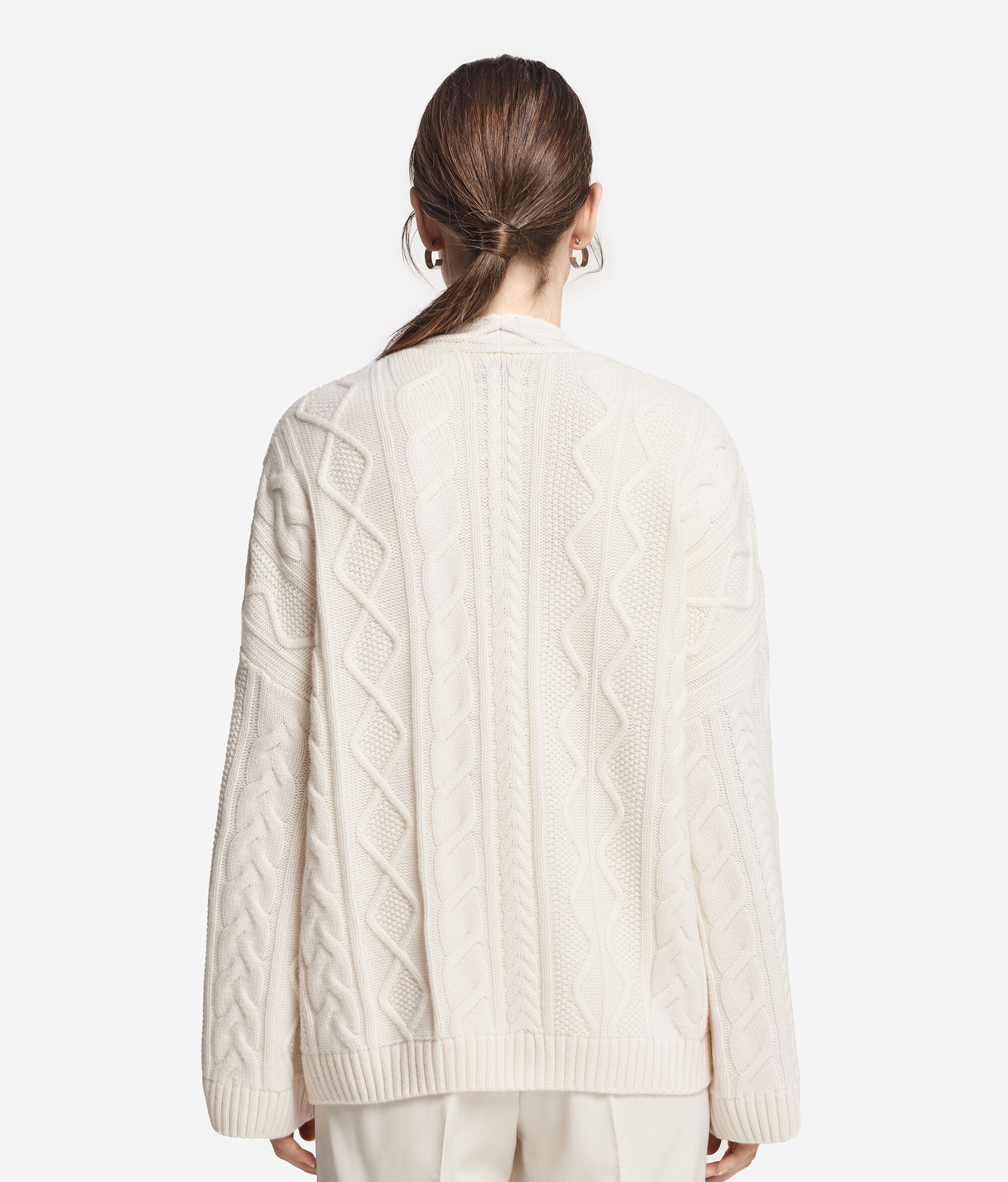 Realizzata in soffice Cashmere Ultrasoft, si caratterizza per il suo design raffinato e impreziosito da un motivo a trecce diverse. La sua vestibilità morbida e la manica ampia conferiscono un fit rilassato e naturale che risponde ad uno stile contemporaneo. L'equilibrio tra classico e moderno unito all'uso di materiali pregiati, la rendono elegante e confortevole.