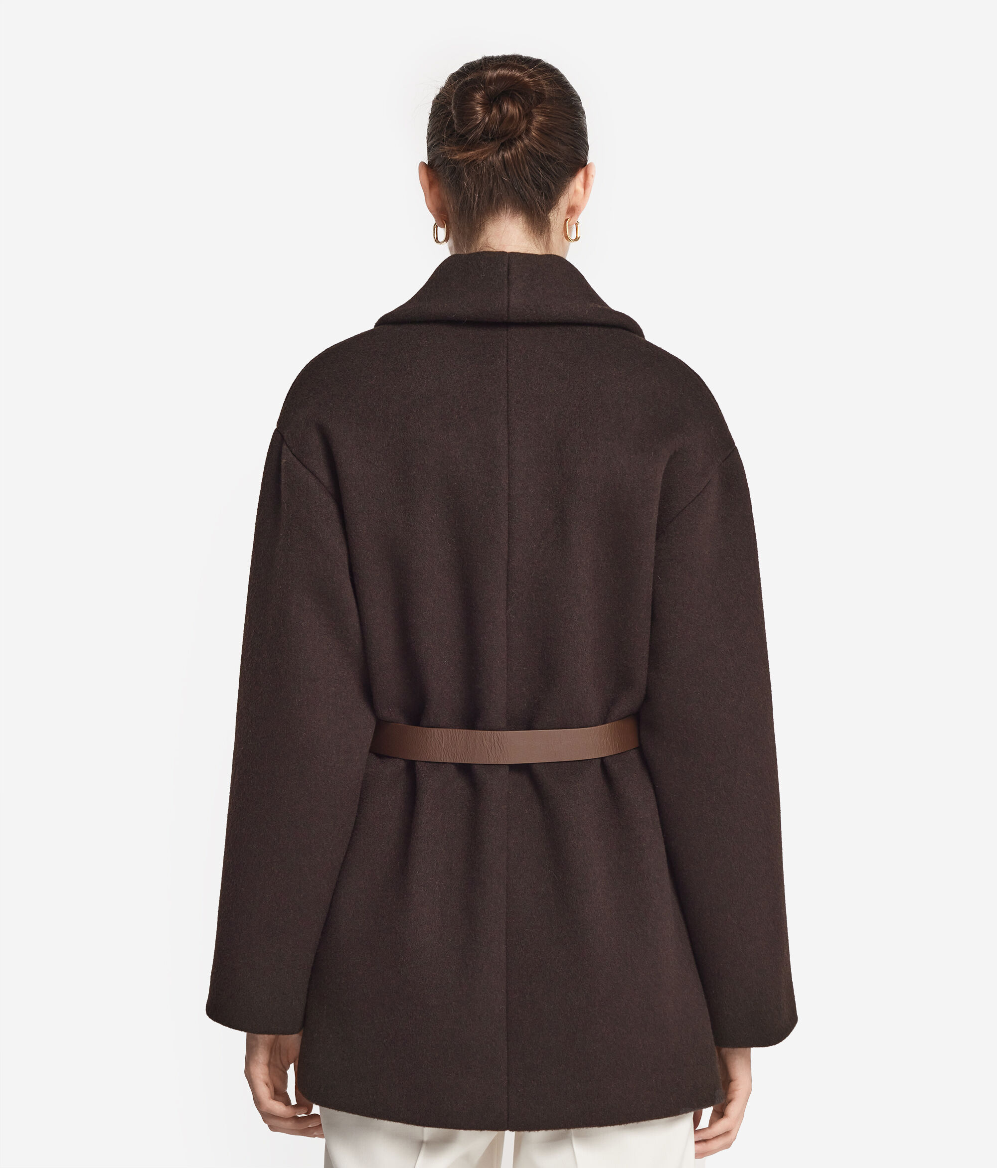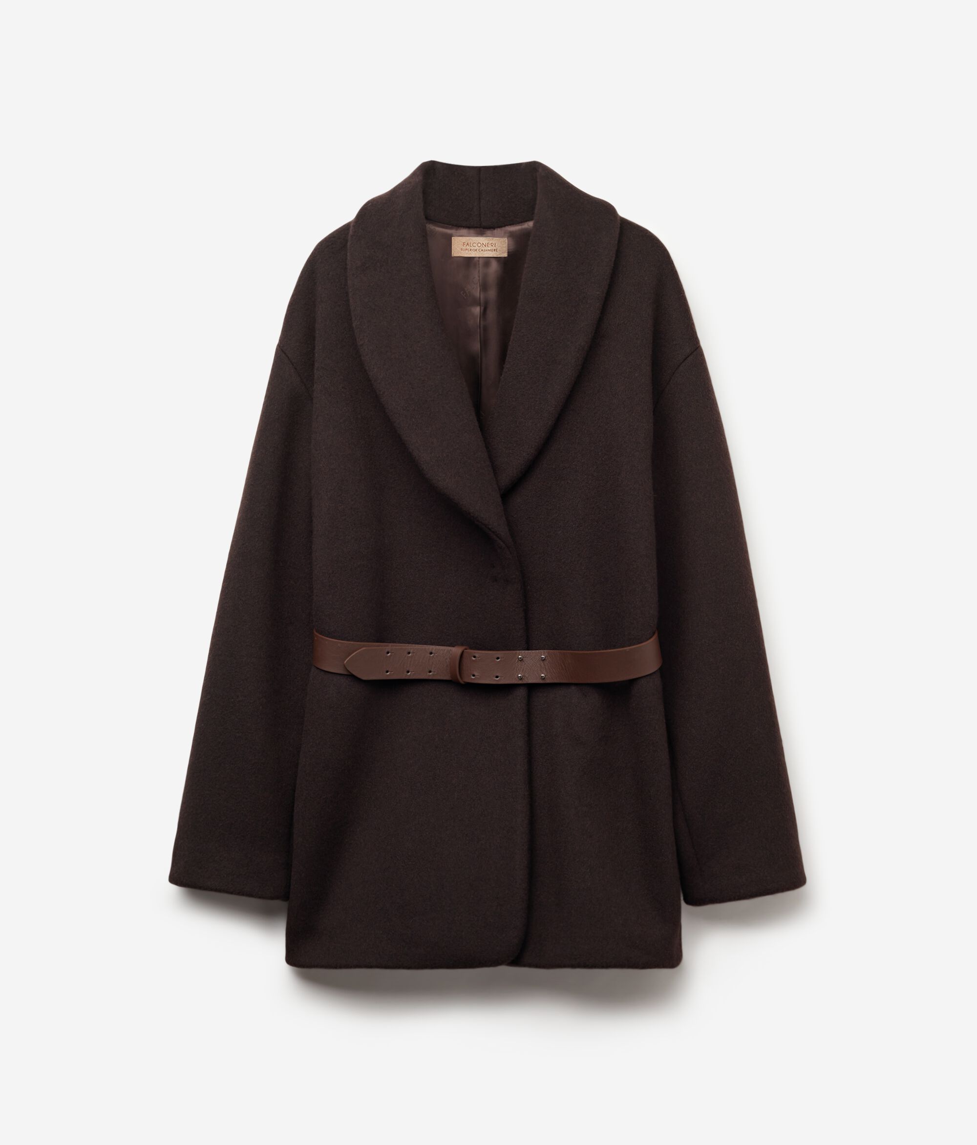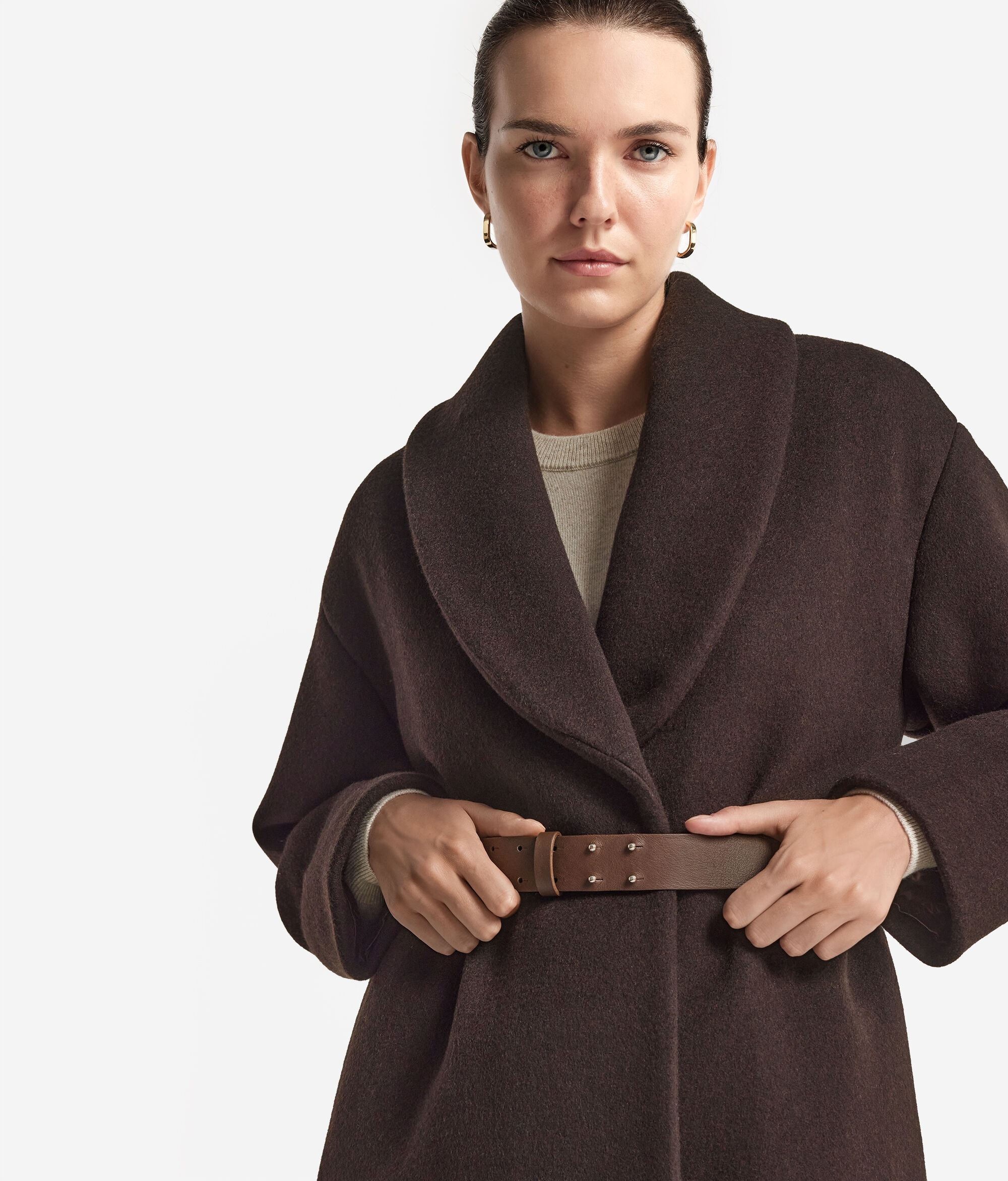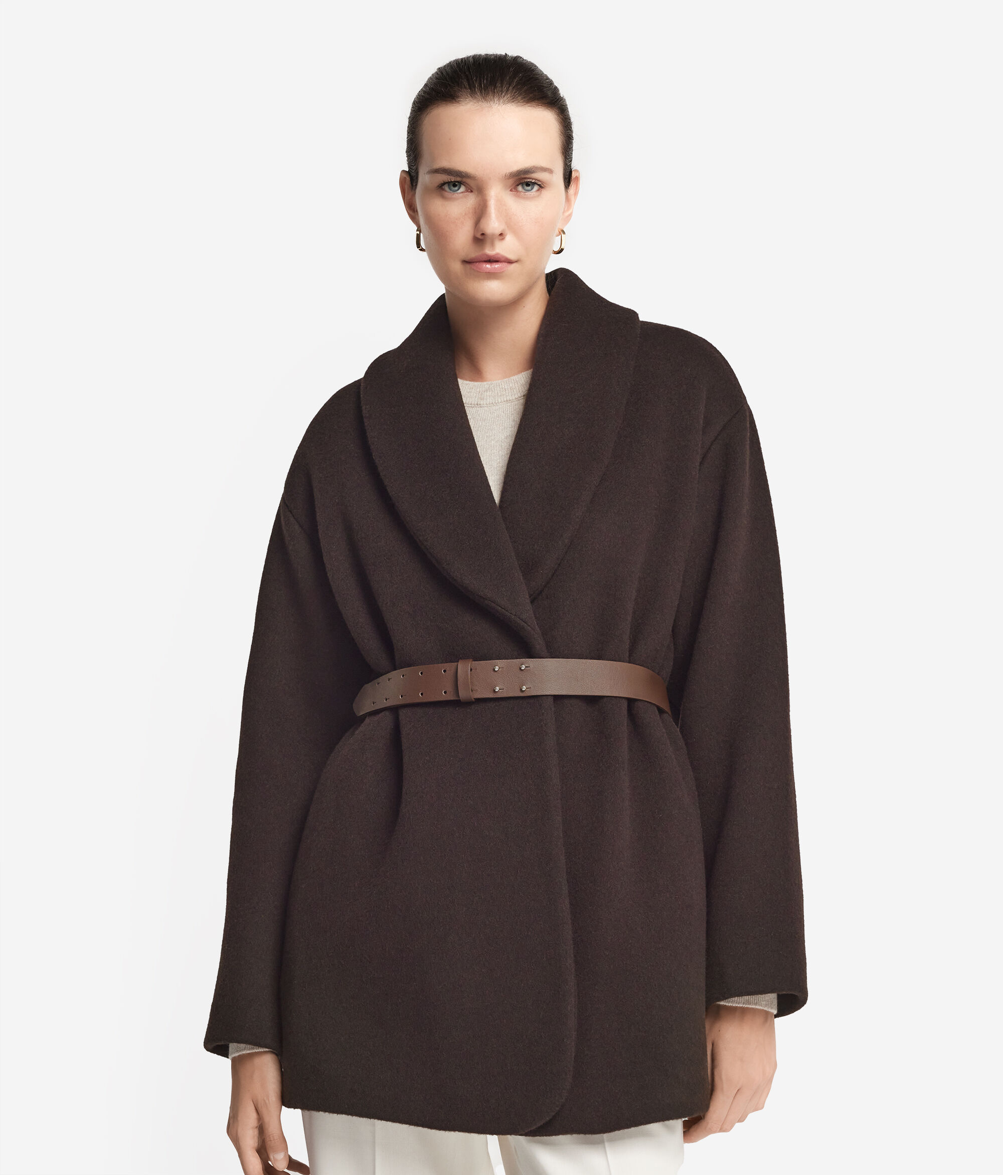 Realizzata in tessuto di cashmere, questo cappotto rappresenta un capo essenziale per il guardaroba che unisce la qualità allo stile. A caratterizzarne il design un elegante collo sciallato ed una cintura in pelle che valorizza la silhouette. L'attenzione ai dettagli si esprime nella fodera logata al suo interno e nella chiusura con bottone automatico. L'equilibrio tra classico e moderno unito all'uso di materiali pregiati, rendono questo capo raffinato e confortevole, che arricchisce ogni guard