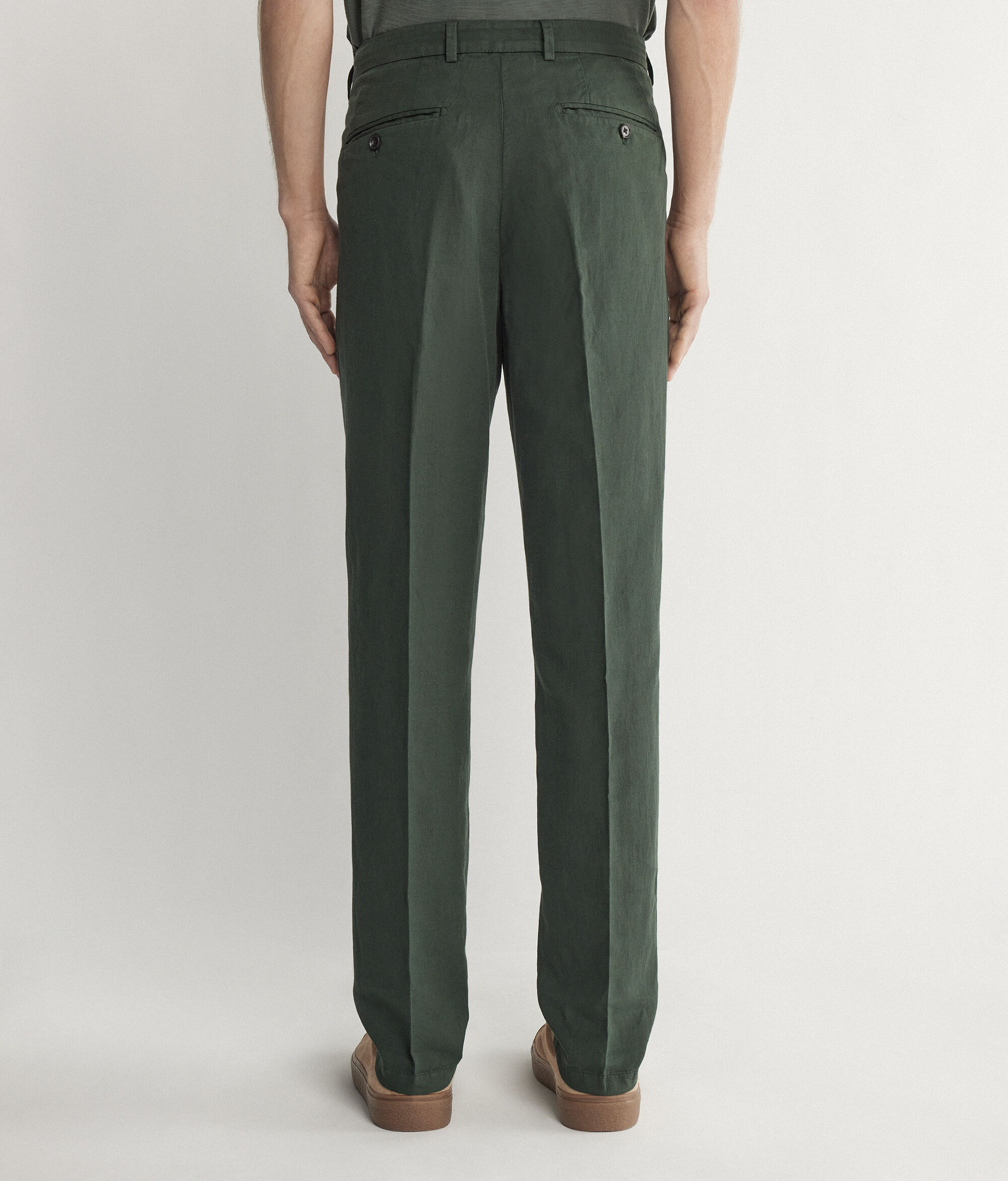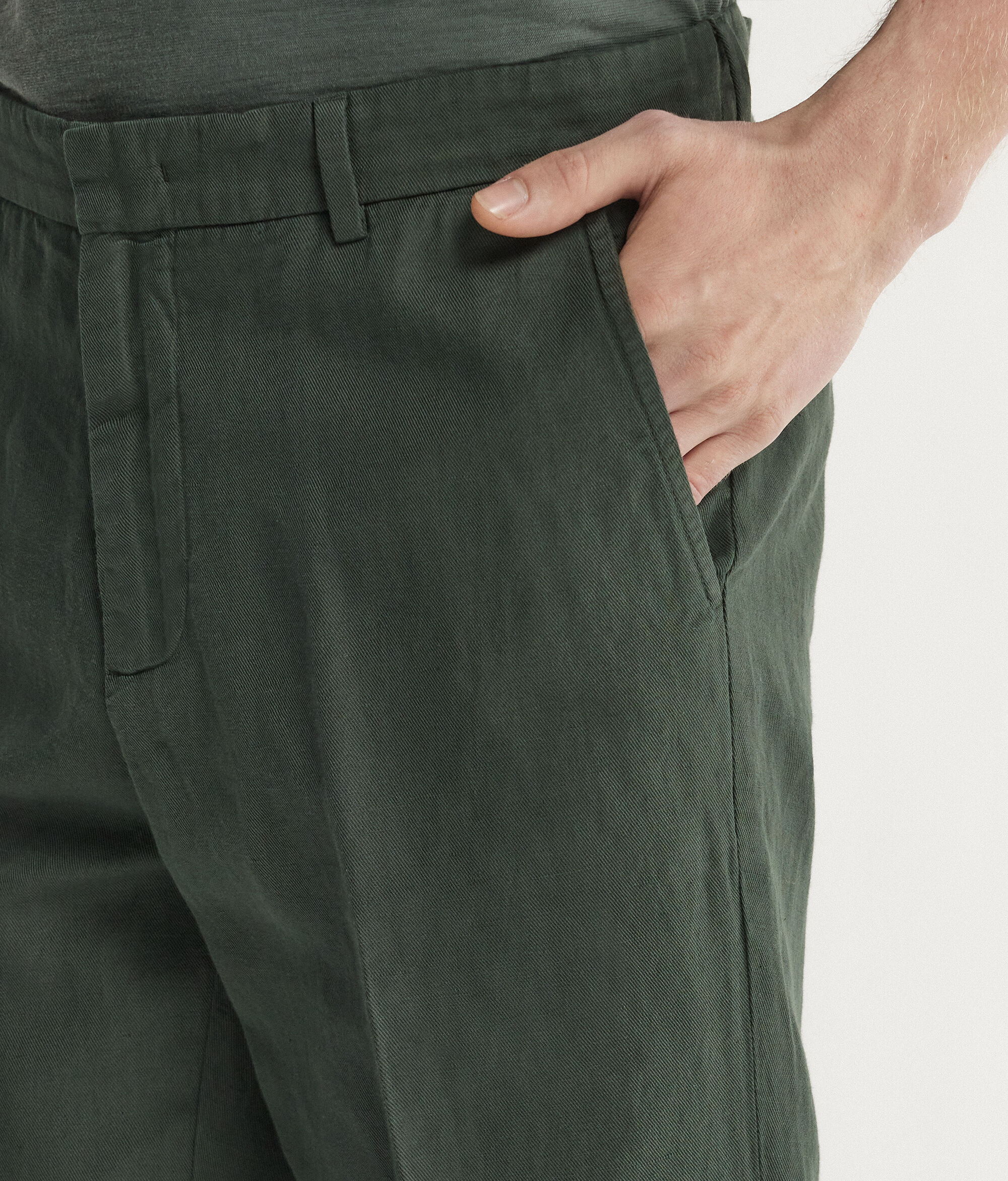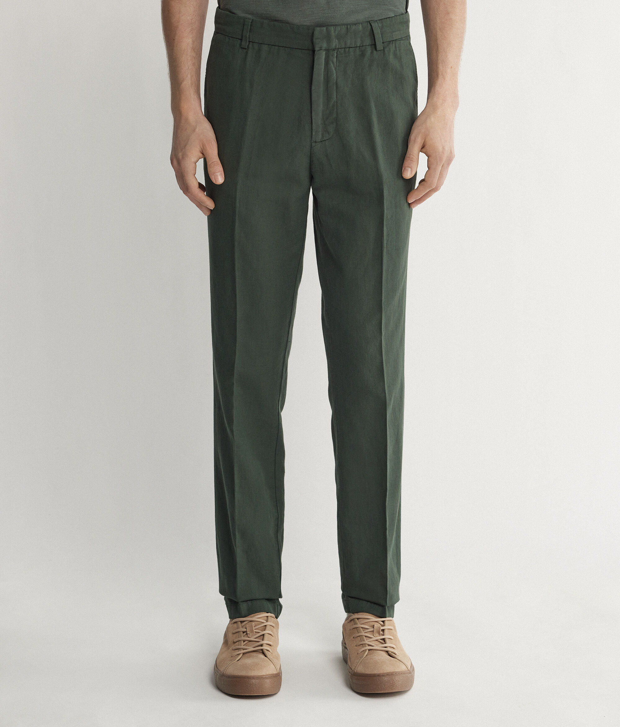 In perfetto equilibrio tra eleganza casual ed ispirazioni moderne, i nuovi pantaloni chino valorizzano una texture fresca in lino cotone per un comfort piacevole ed una vestibilità sempre perfetta.