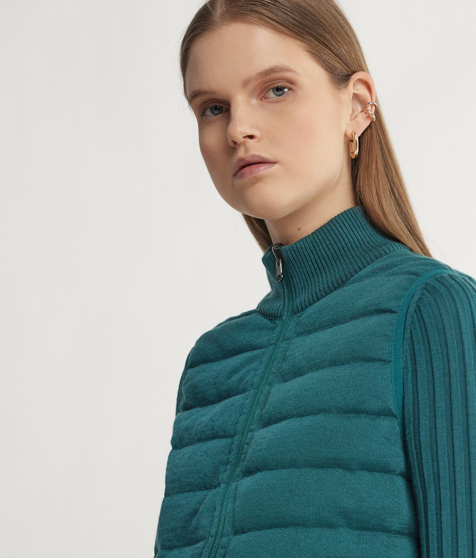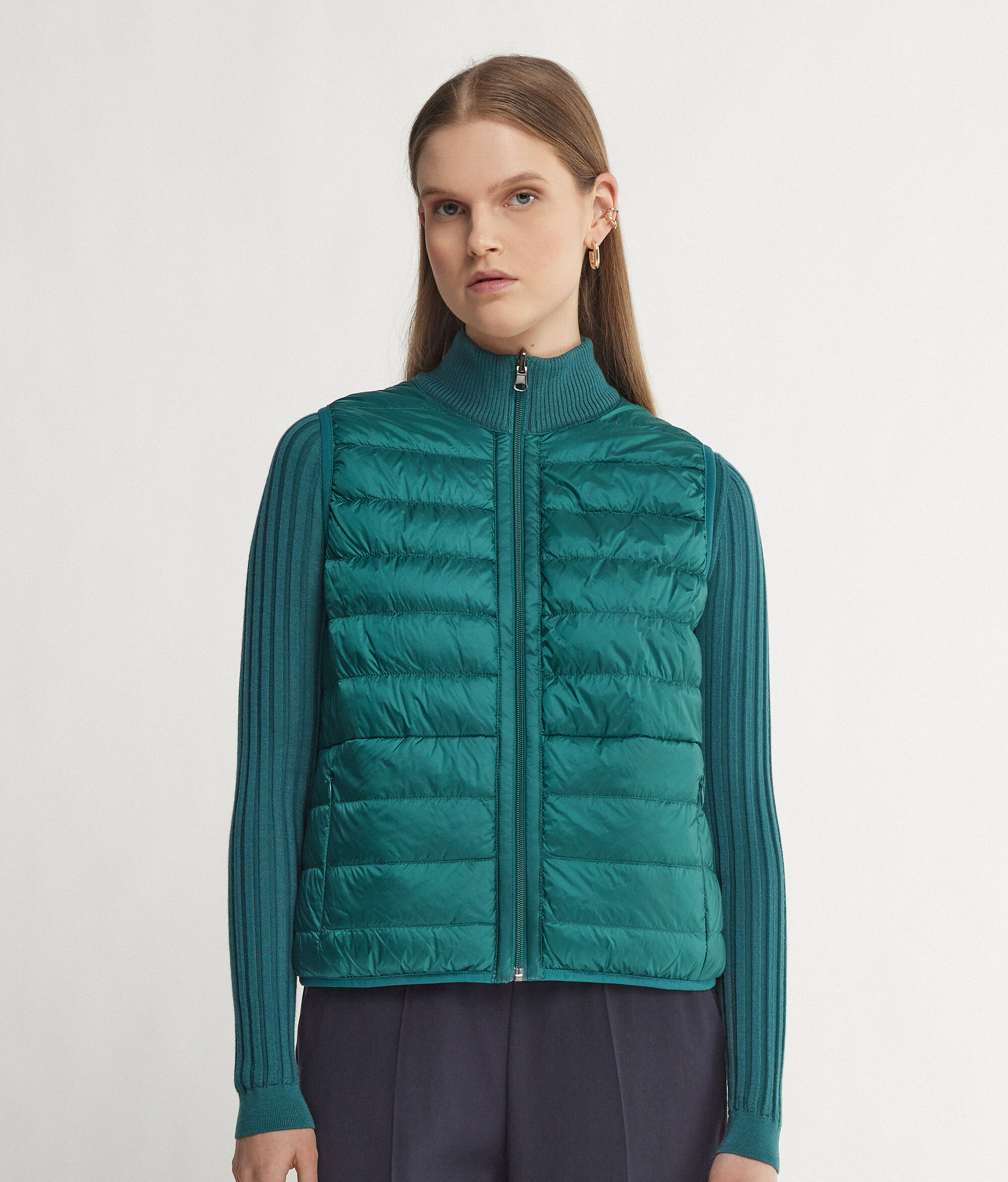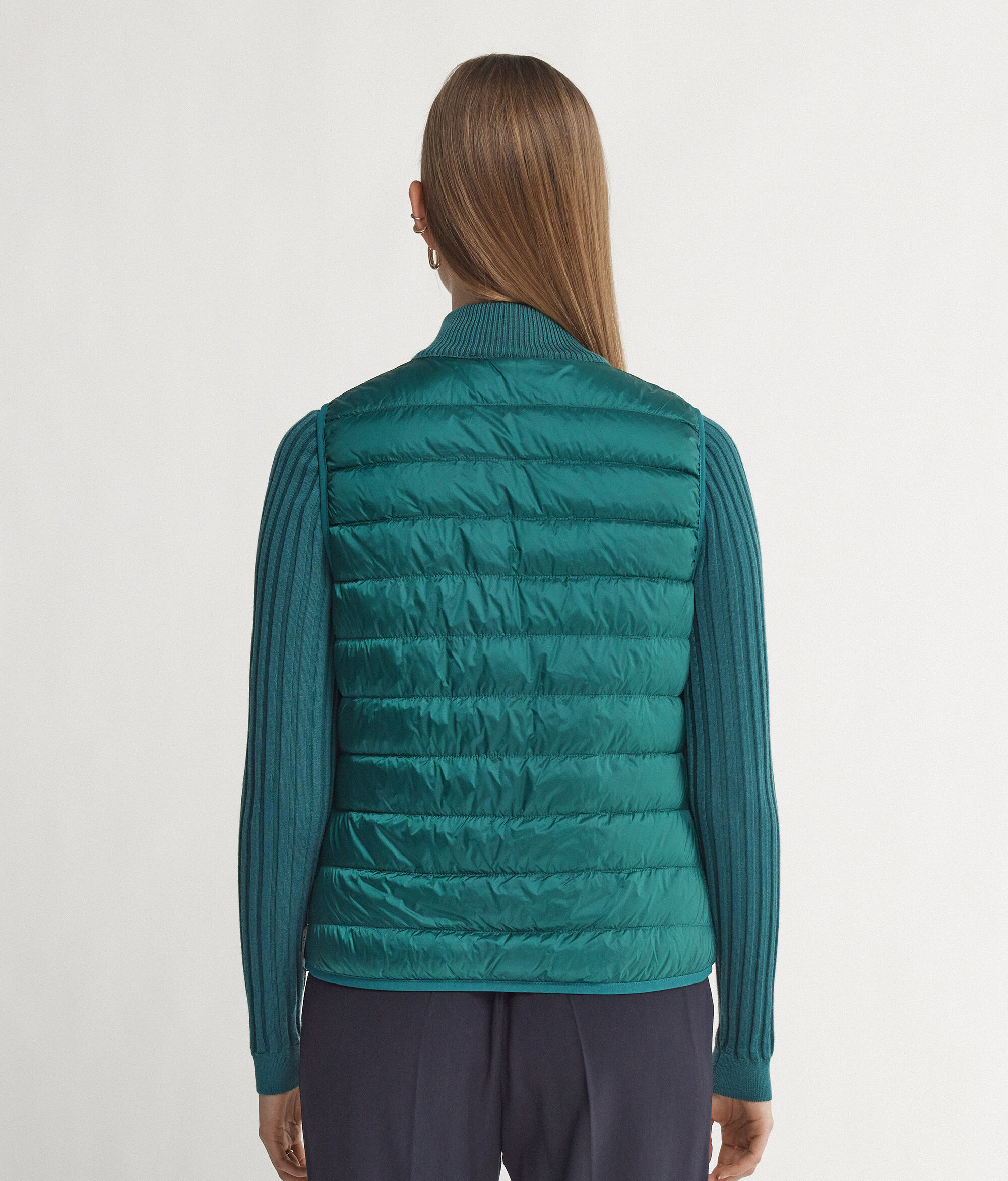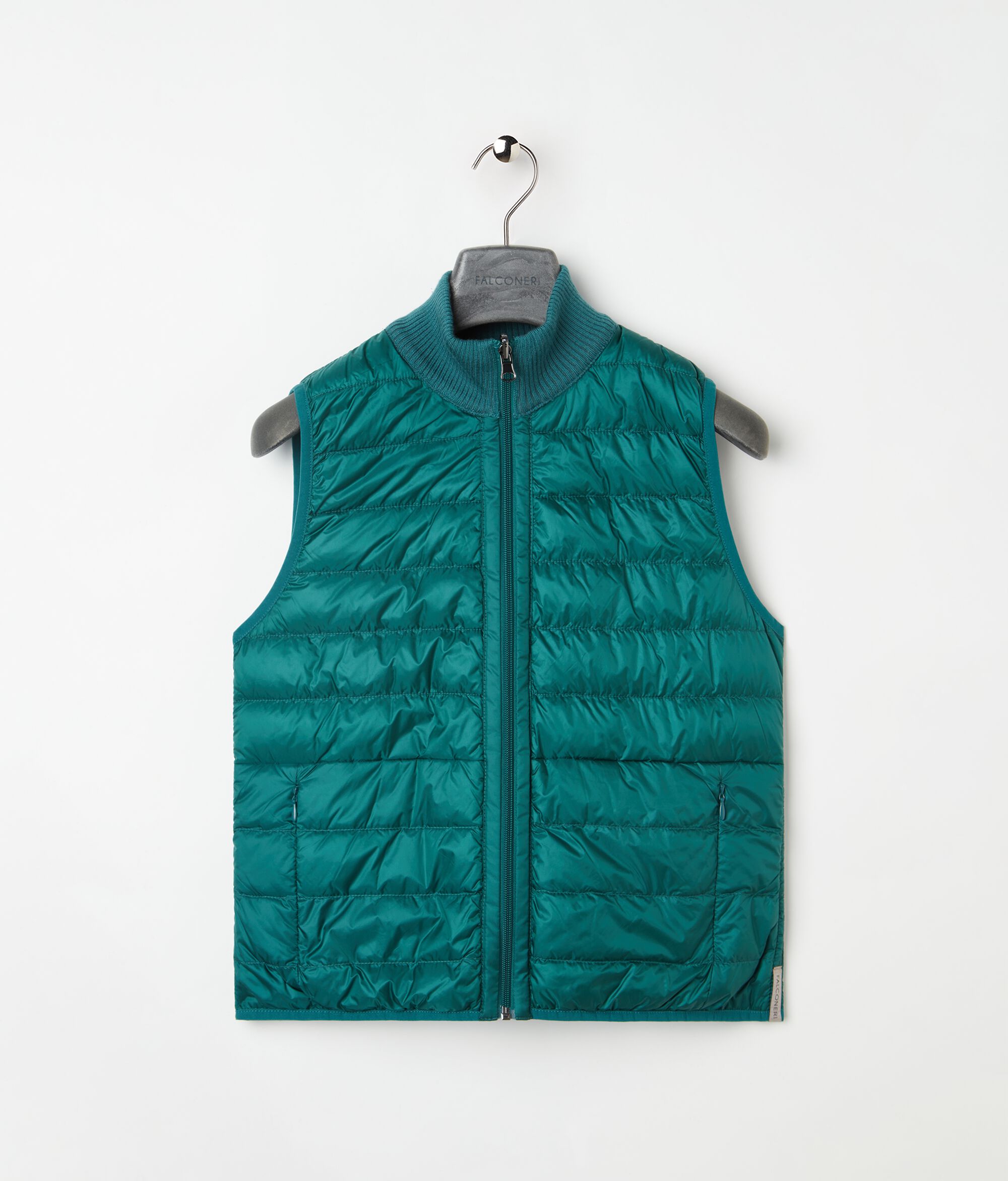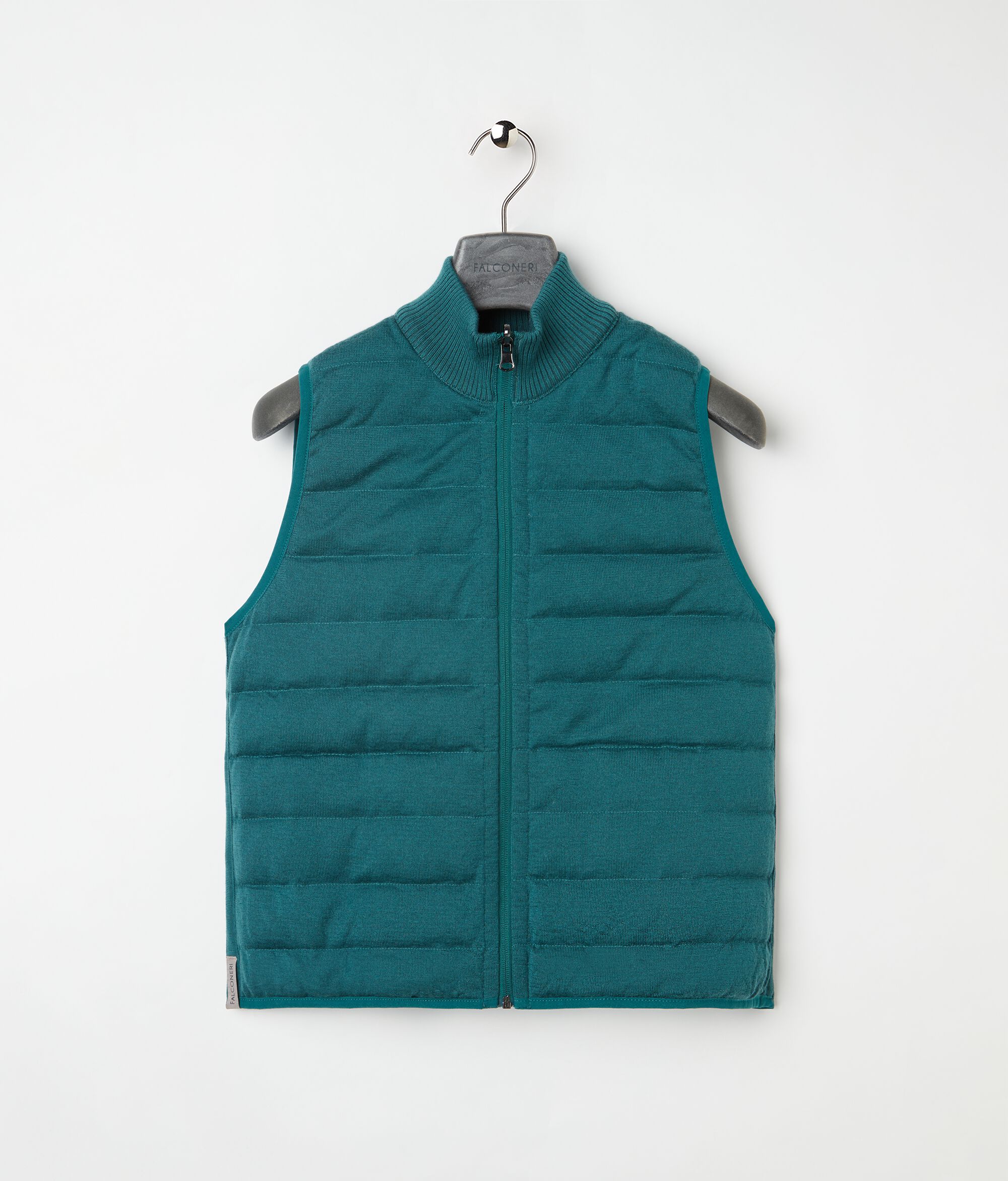 Falconeri propone una nuova versione del versatile e unico piumino senza maniche donna. L’aggiunta del pregiato cashmere ultrafine arricchisce lo stile sportivo di questo capo per un connubio perfetto tra funzionalità ed eleganza. Grazie alla sua caratteristica double-face, potrai sempre scegliere che stile indossare. Ideale per la stagione di passaggio, aggiungerà un tocco di classe a tutti i tuoi outfit!