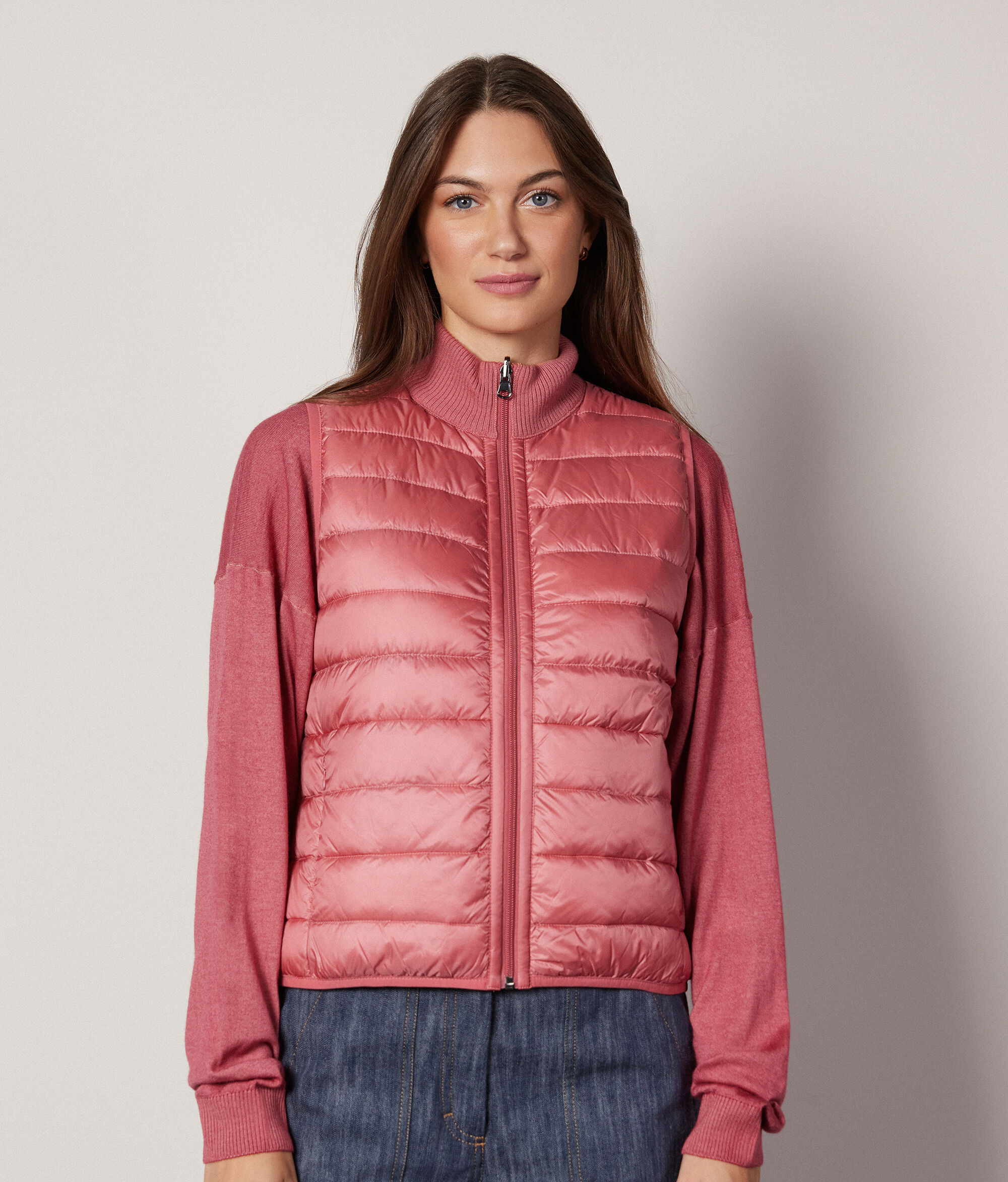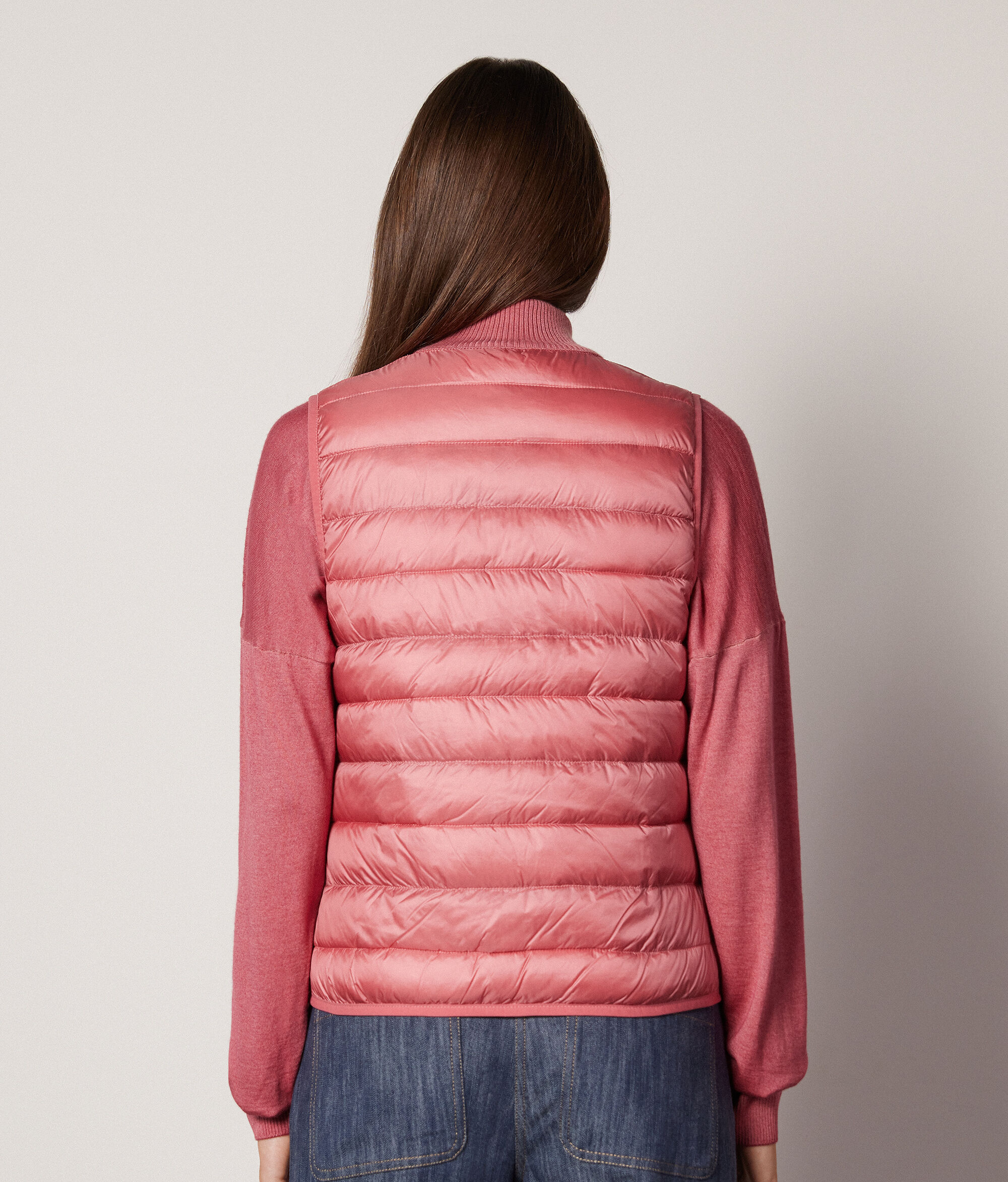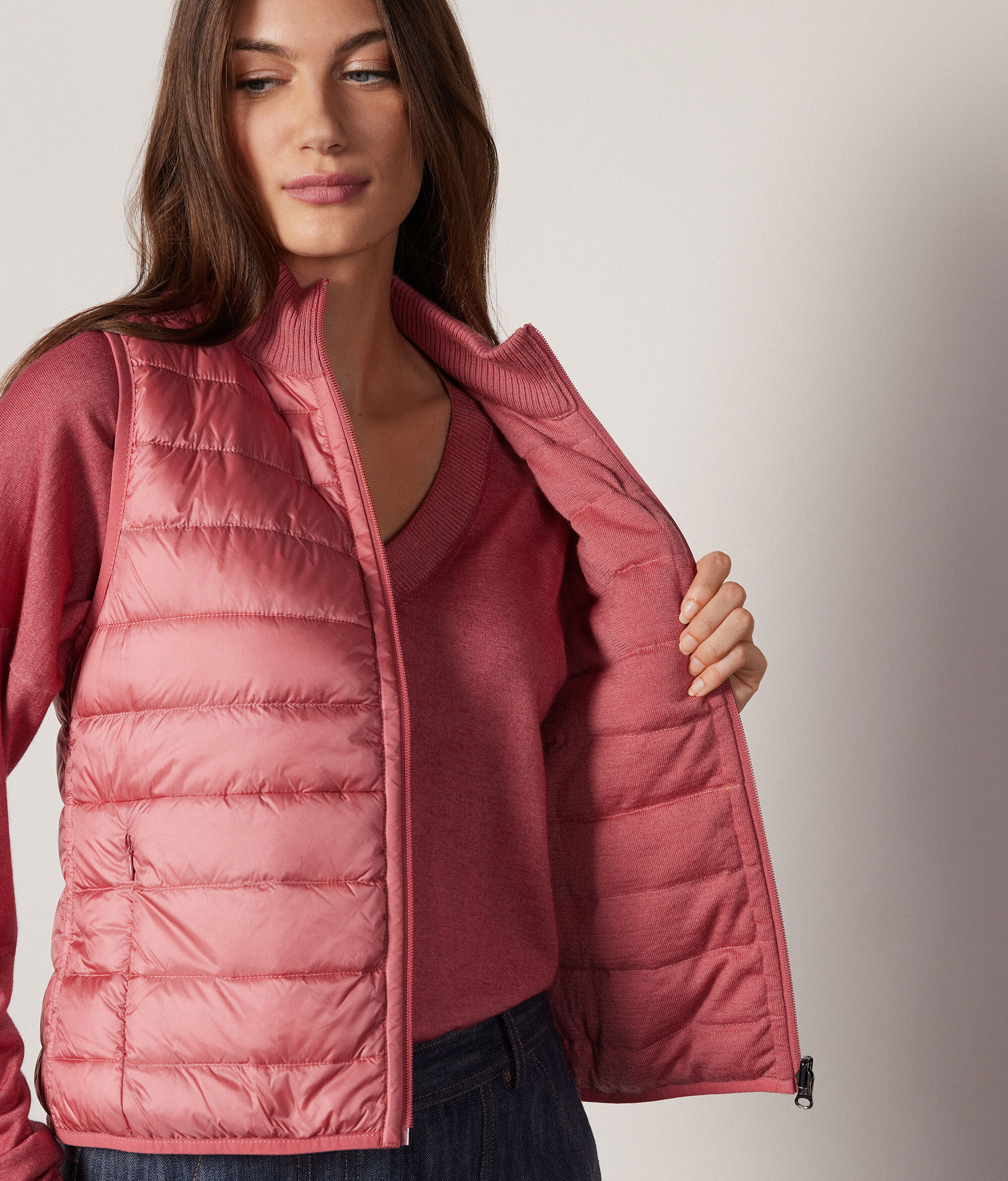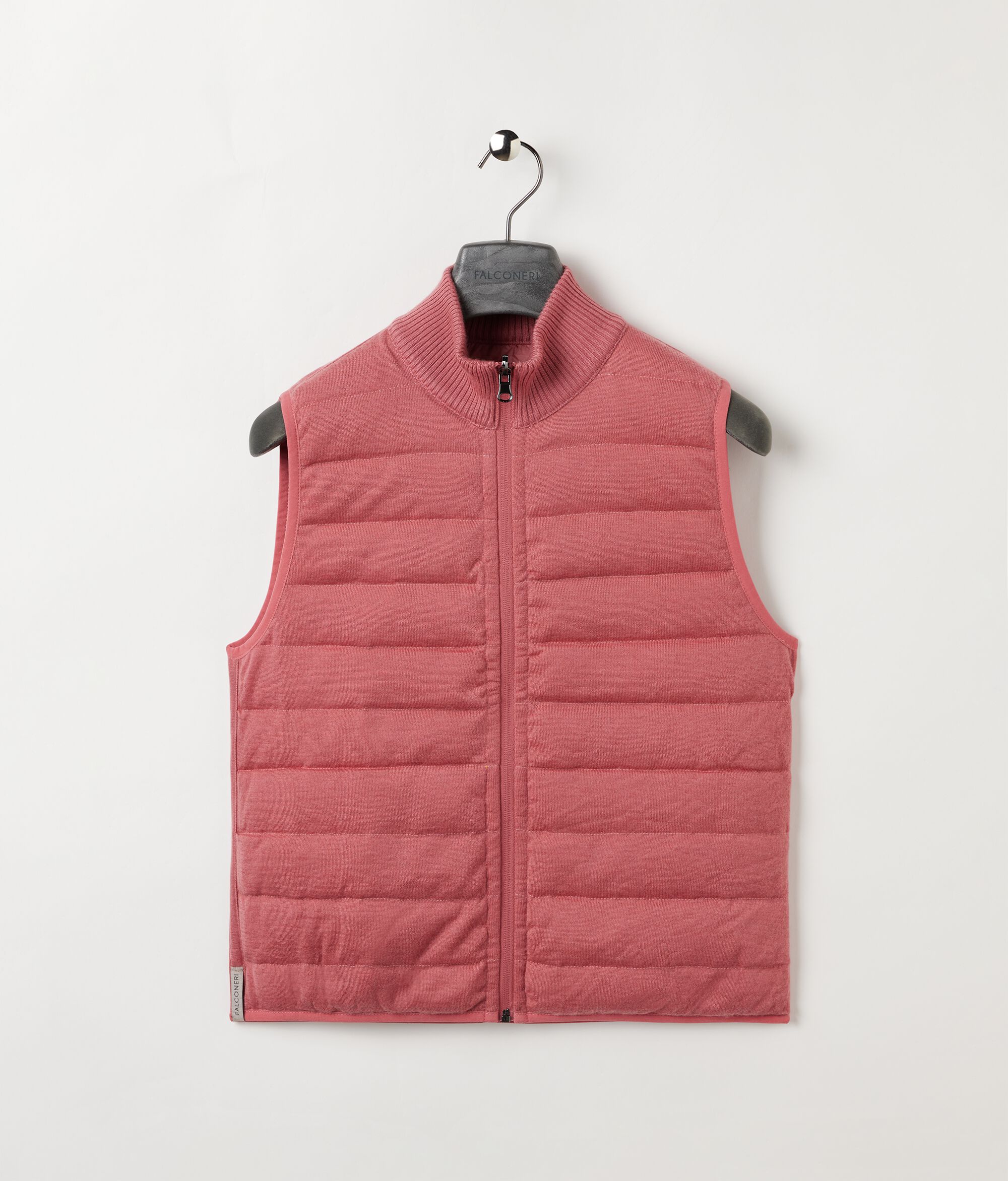 Falconeri propone una nuova versione del versatile e unico piumino senza maniche donna. L’aggiunta del pregiato cashmere ultrafine arricchisce lo stile sportivo di questo capo per un connubio perfetto tra funzionalità ed eleganza. Grazie alla sua caratteristica double-face, potrai sempre scegliere che stile indossare. Ideale per la stagione di passaggio, aggiungerà un tocco di classe a tutti i tuoi outfit!