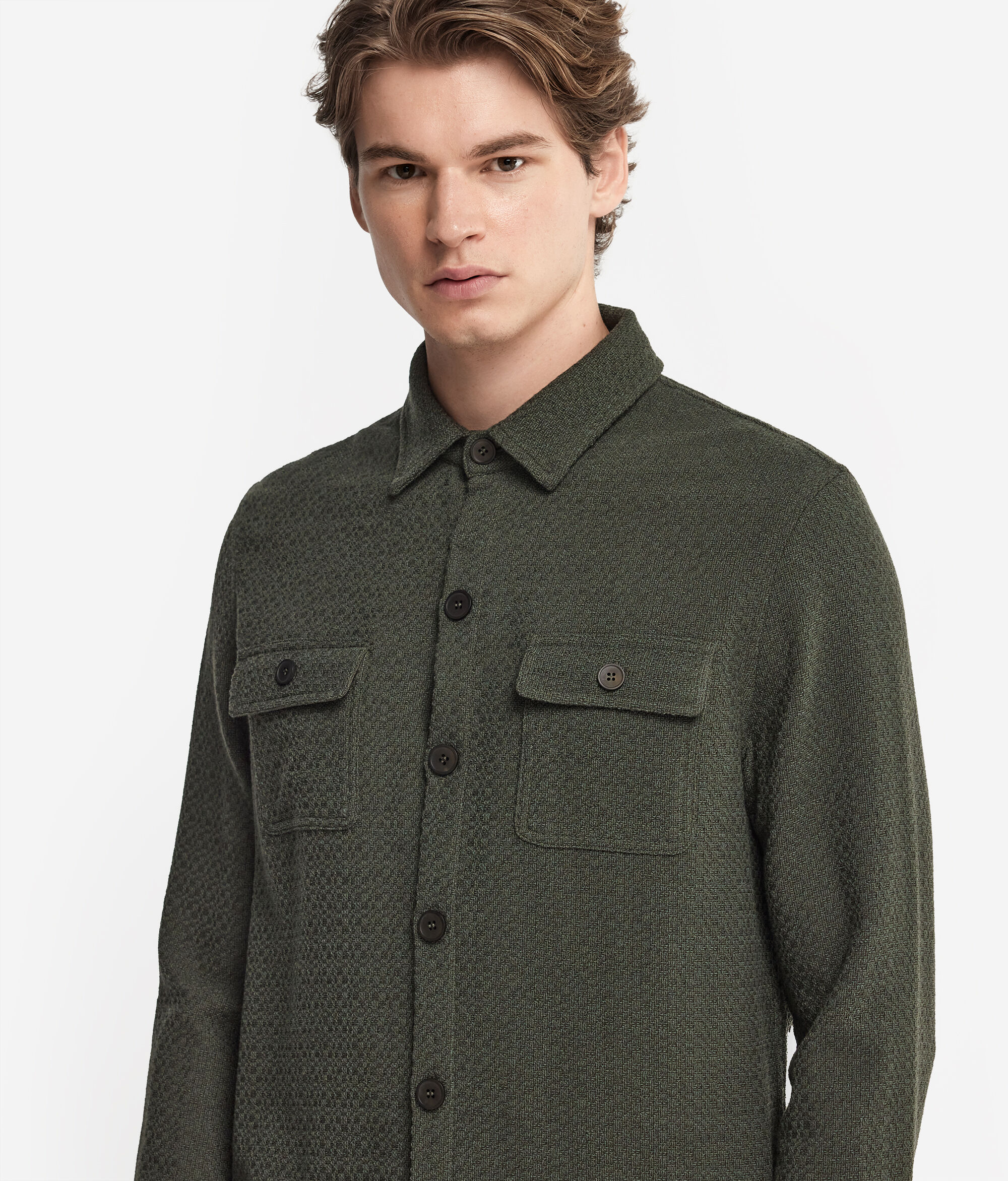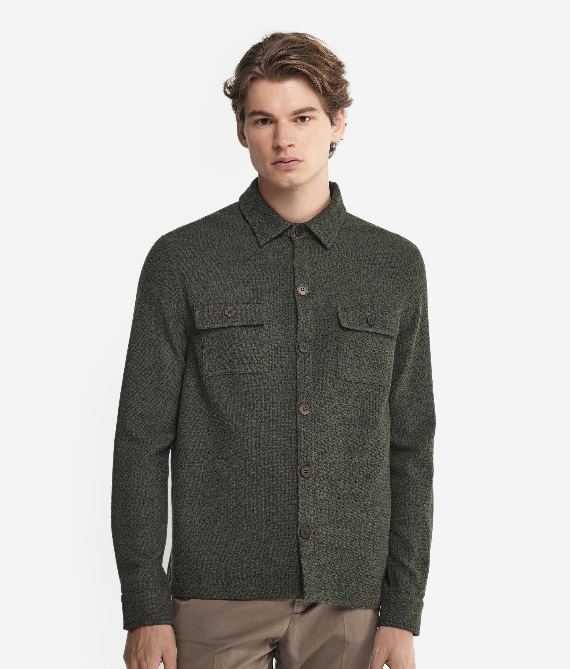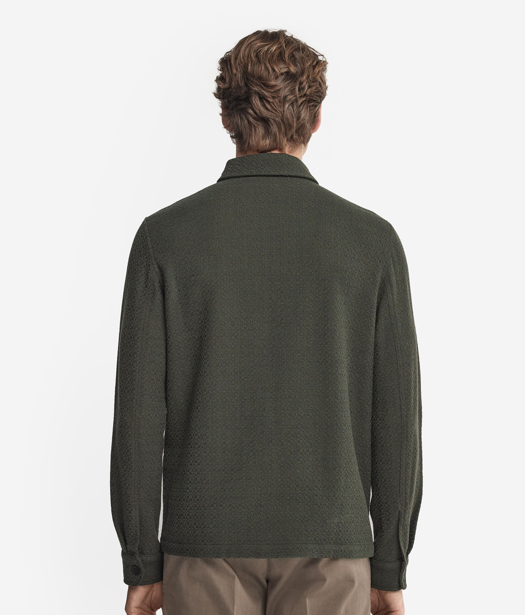 Scopri l'eleganza e la morbidezza di questa giacca camicia realizzata in jersey di lana. Il design presenta un classico collo a camicia e un'allacciatura centrale con bottoni. Dotata di pratiche tasche a toppa all'altezza del petto, combina funzionalità e stile senza tempo. L'effetto goffrato conferisce dinamicità alla texture e una sensazione inconfondibile al tatto, rendendo il capo piacevole e confortevole da indossare tutto il giorno.
