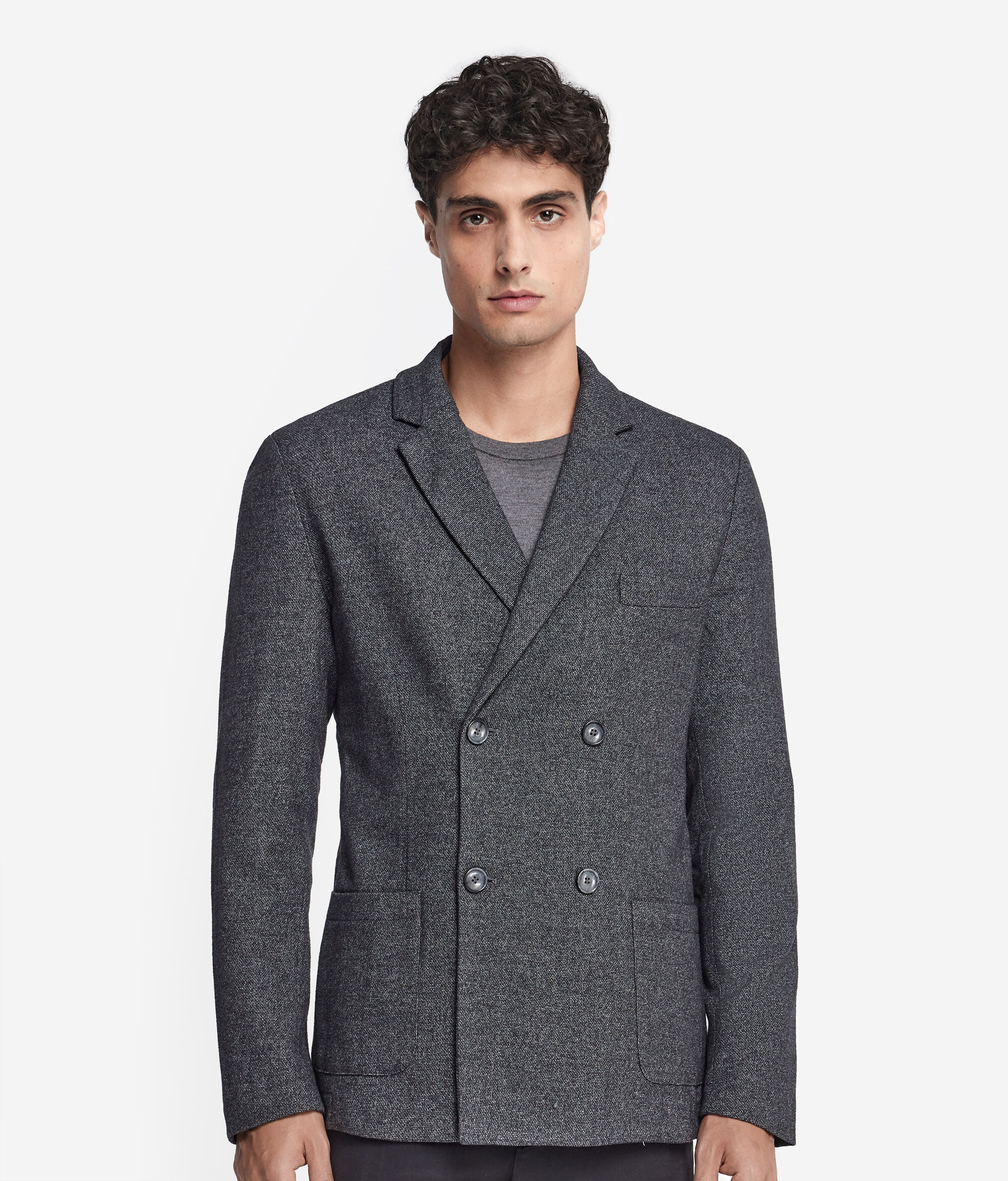 Scopri l'eleganza di questa giacca in jersey di lana, un capo perfetto per aggiungere un tocco di classe al tuo stile quotidiano. Il design è caratterizzato da una chiusura doppiopetto e da un'abbottonatura a quattro bottoni. L'amore per i dettagli si esprime attraverso le tasche a toppa al fondo e da un taschino interno sul petto sinistro.