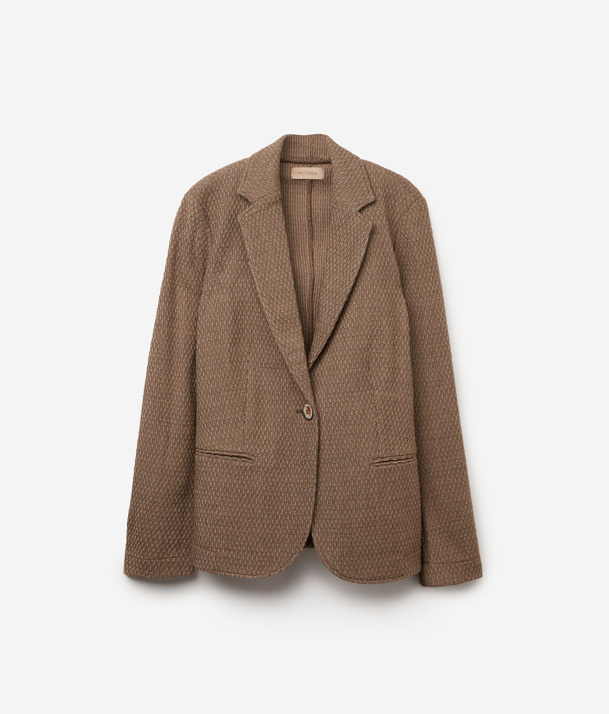 Scopri l'eleganza senza tempo di questa giacca in lana, un capo perfetto per aggiungere un tocco di classe al tuo stile quotidiano. Grazie all'effetto goffrato, si distingue per la sua texture ricercata. Il rever conferisce raffinatezza, ideale per creare un look unico e sofisticato. La chiusura con un bottone aggiunge un dettaglio classico e minimalista, mentre le tasche a doppio filetto contribuiscono al design pulito della giacca. Perfetto per chi ricerca qualità e attenzione ai dettagli, que