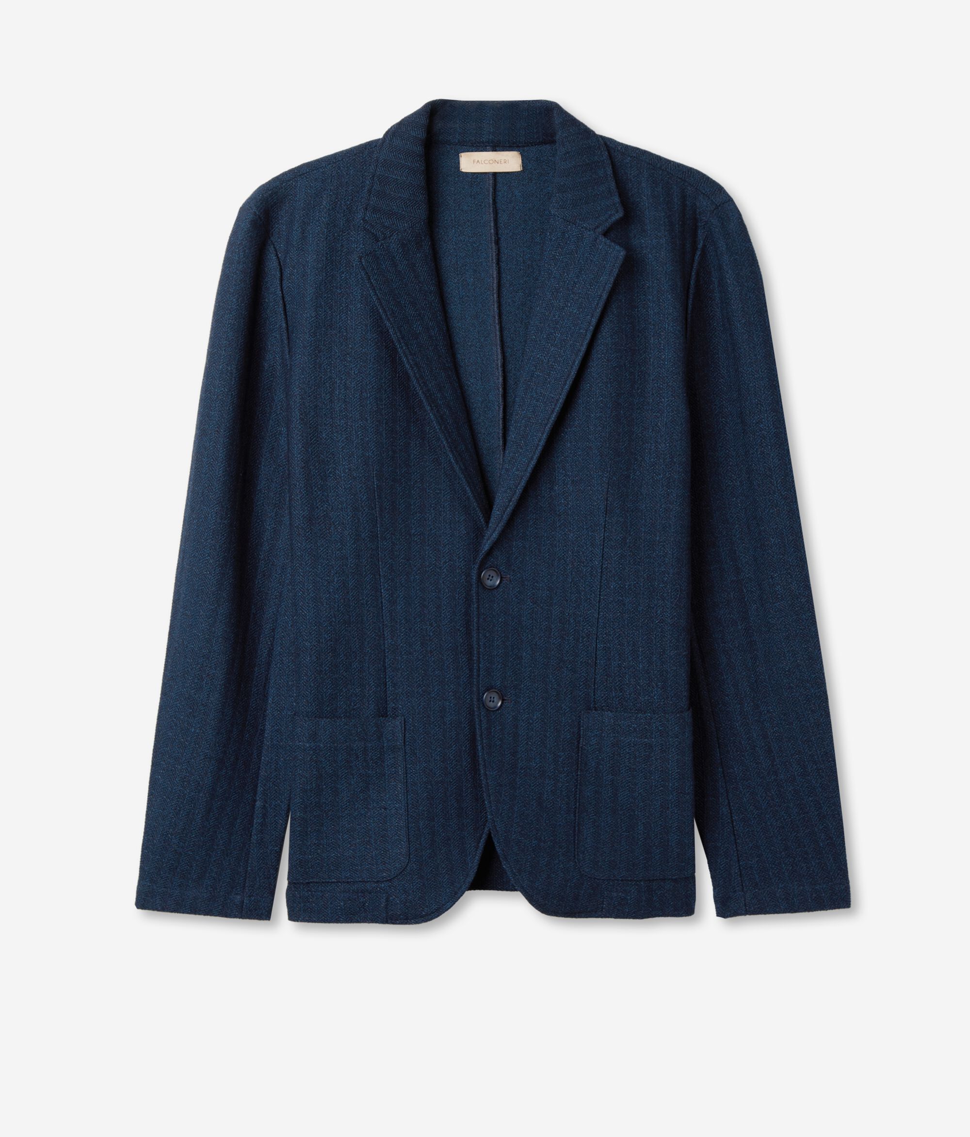 Questa nuova giacca realizzata in jersey lino-cotone si distingue grazie alle linee raffinate e alla texture a spina di pesce. A completare il capo una chiusura a due bottoni e due comode tasche a toppa applicate.