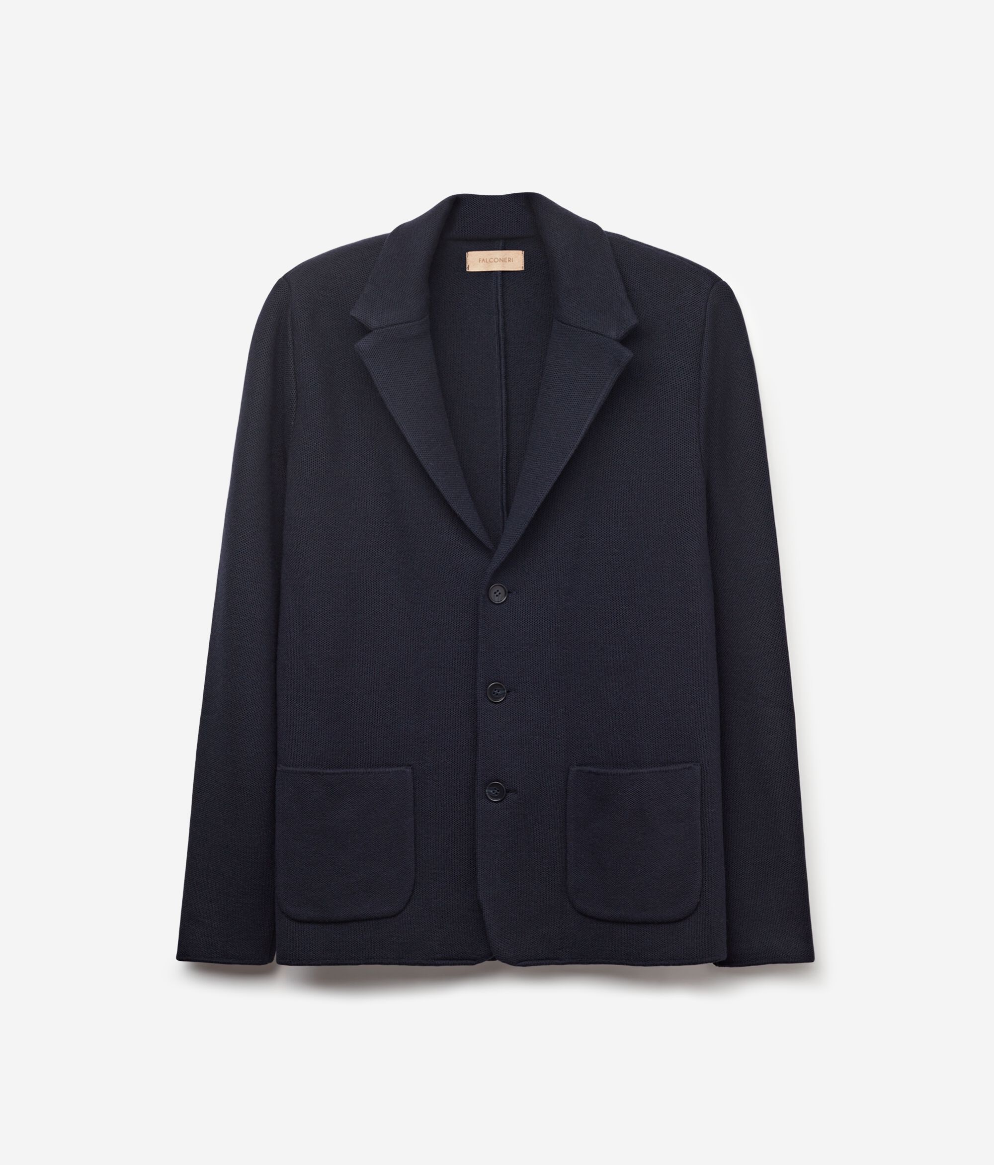Scopri l'eleganza e la morbidezza di questa giacca in maglia di lana in punto piquet, caratterizzata da un delicata trama bicolore. Il suo design classico e raffinato, è composto da revers classici, un' abbottonatura centrale con tre bottoni e due tasche applicate a toppa. L'equilibrio tra classico e moderno unito all'uso di materiali pregiati, rendono questo capo elegante e confortevole, che arricchisce ogni outfit con un tocco di lusso discreto ma senza tempo.