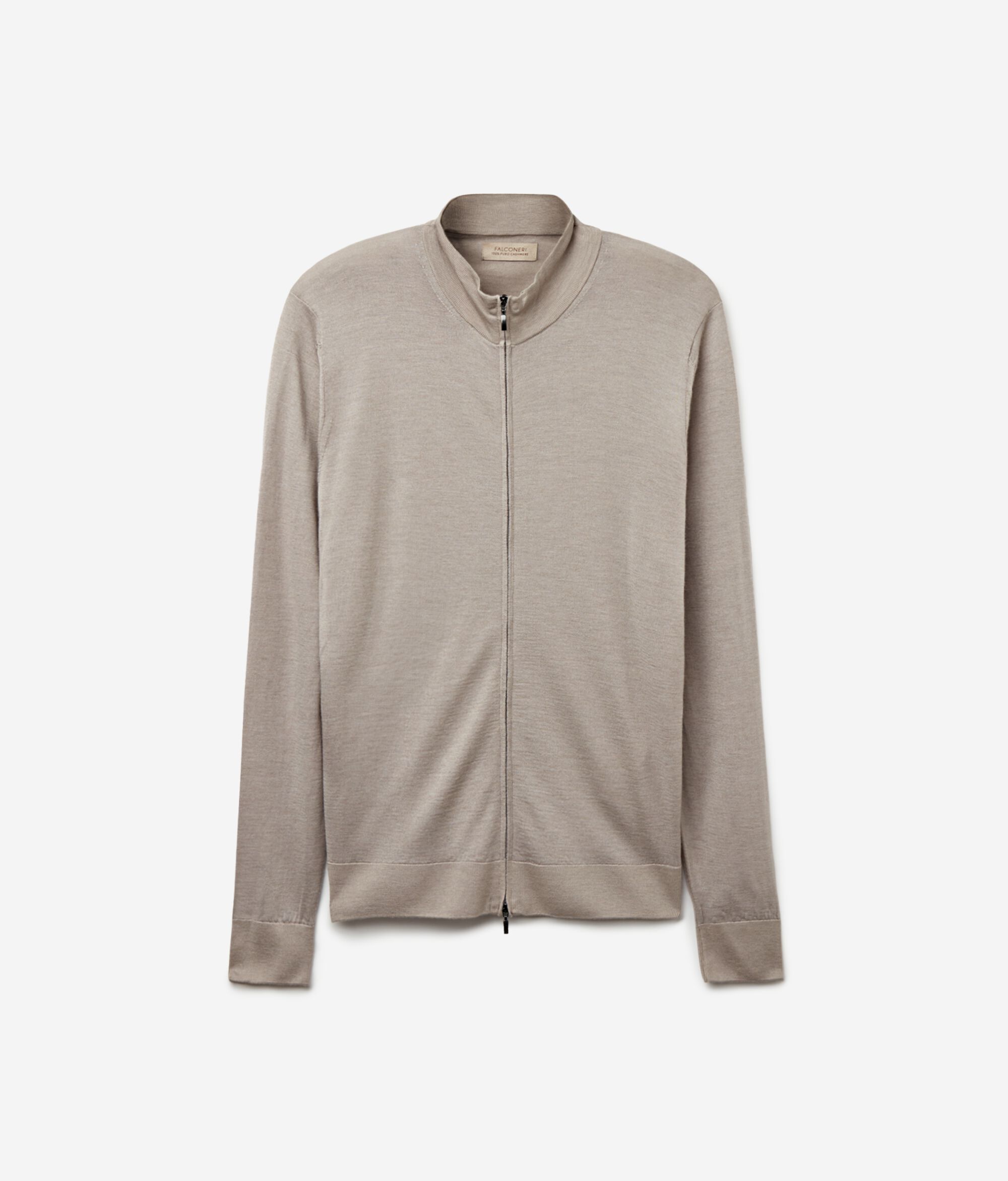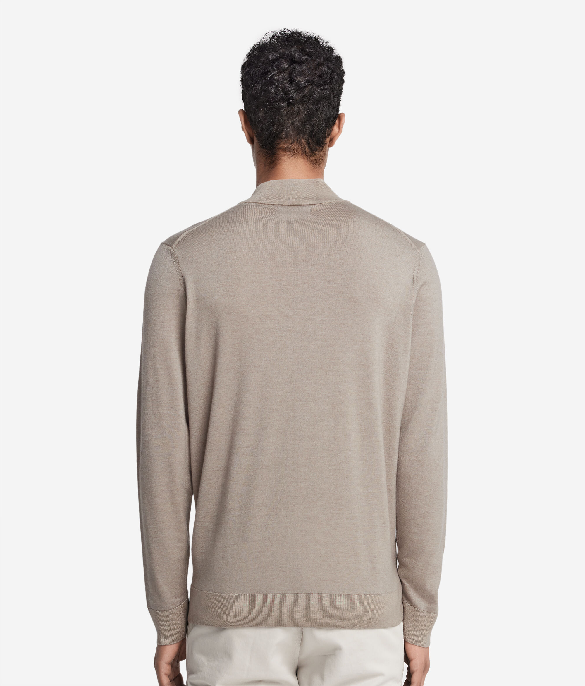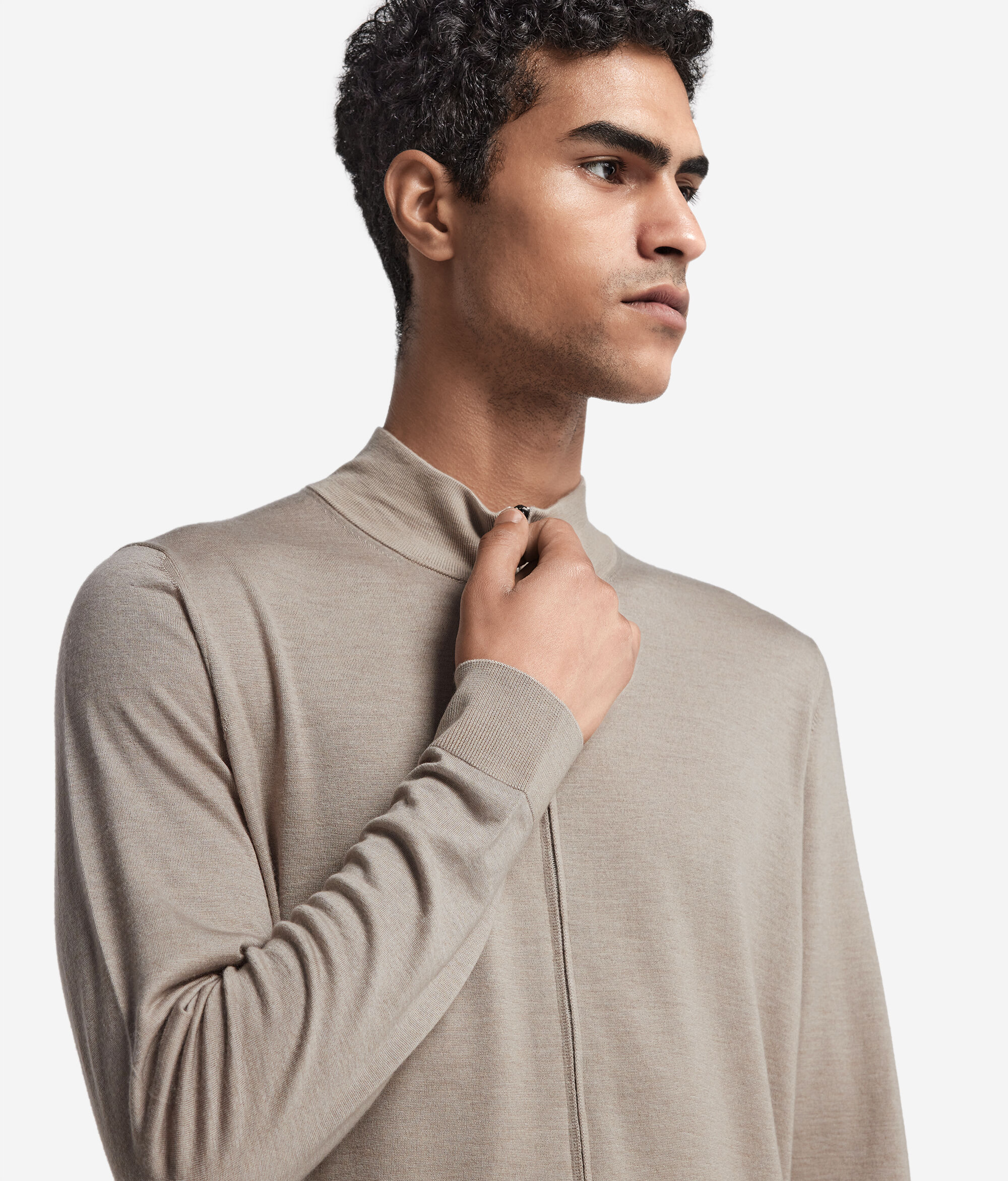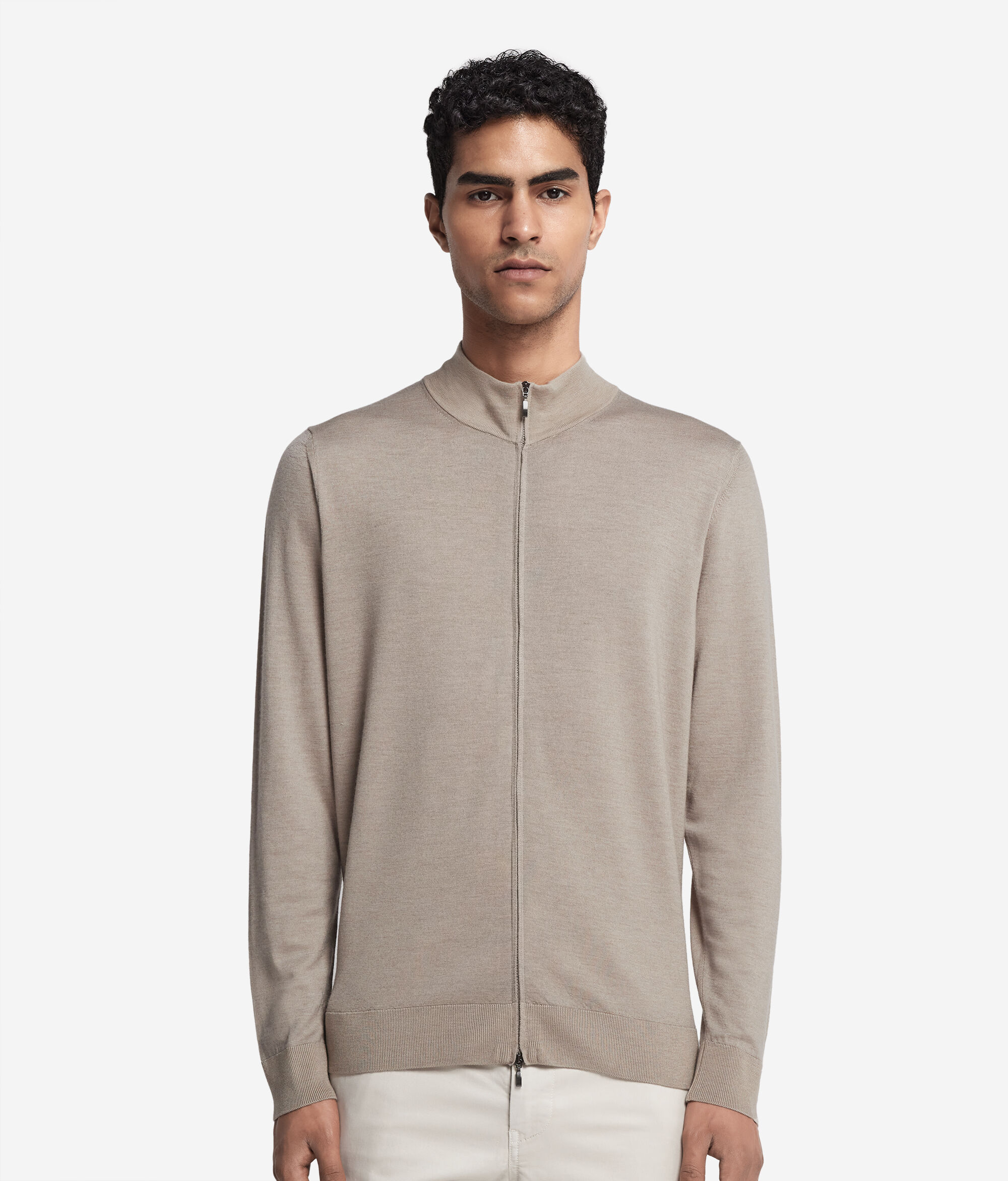 Il pregio delle fibre naturali impreziosisce l'immagine di un uomo che ama uno stile elegante e contemporaneo, ma senza rinunciare al comfort. Una fibra preziosa come il cashmere ultrafine conferisce alla texture di questo cardigan con zip un aspetto ricercato.