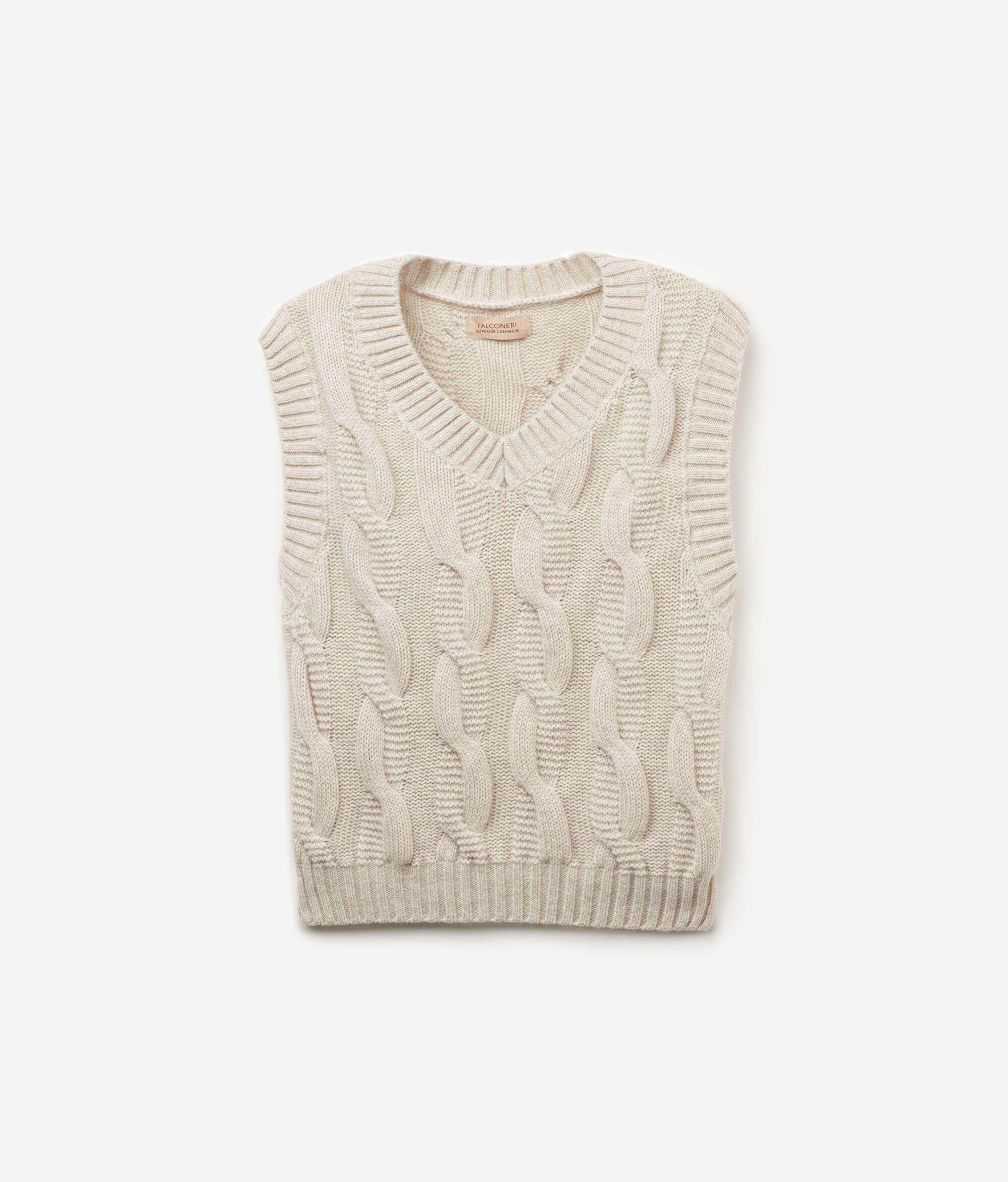 Gilet con trama a Trecce in Cashmere Ultrasoft