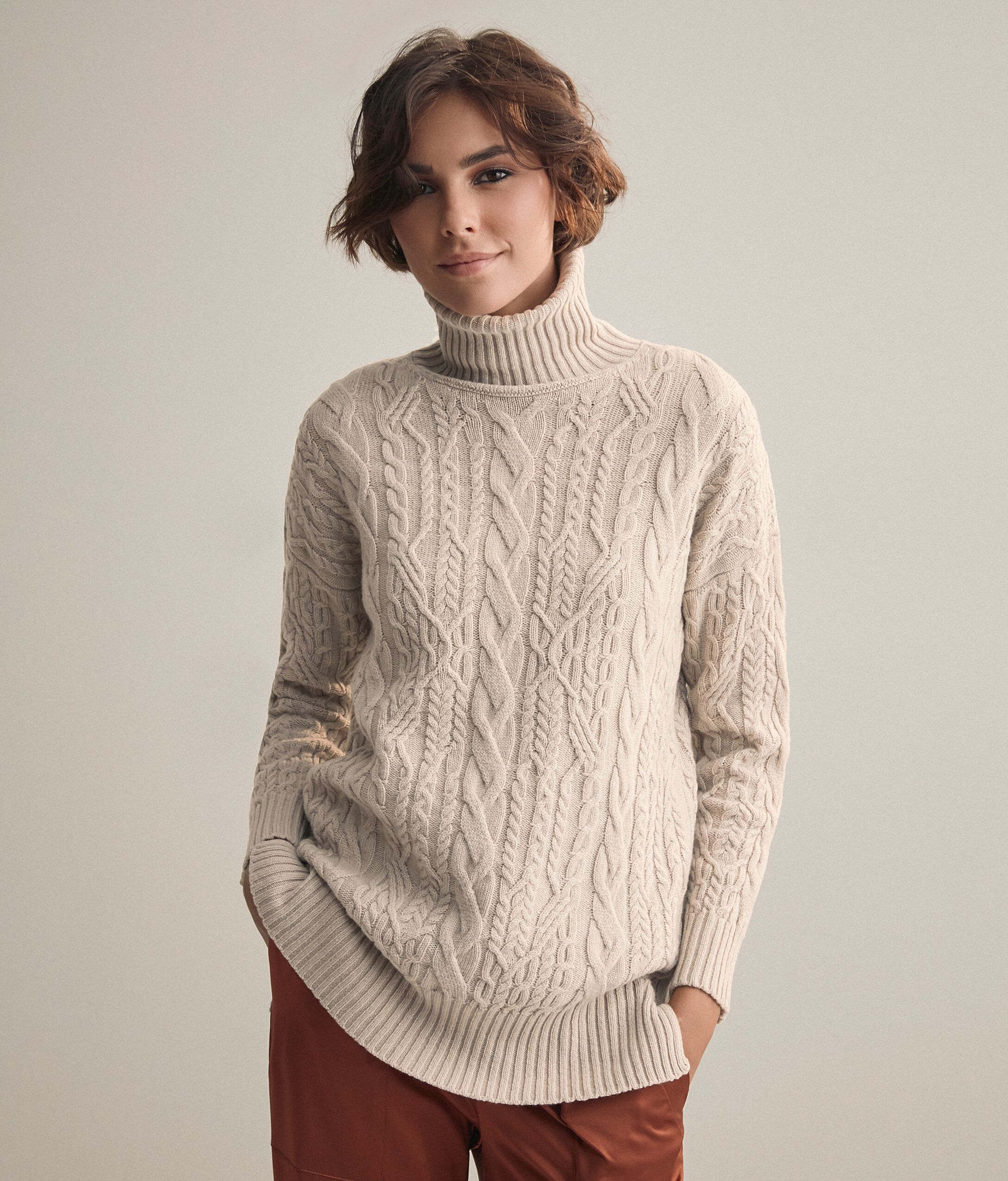 Maglia Dolcevita Treccia in Cashmere