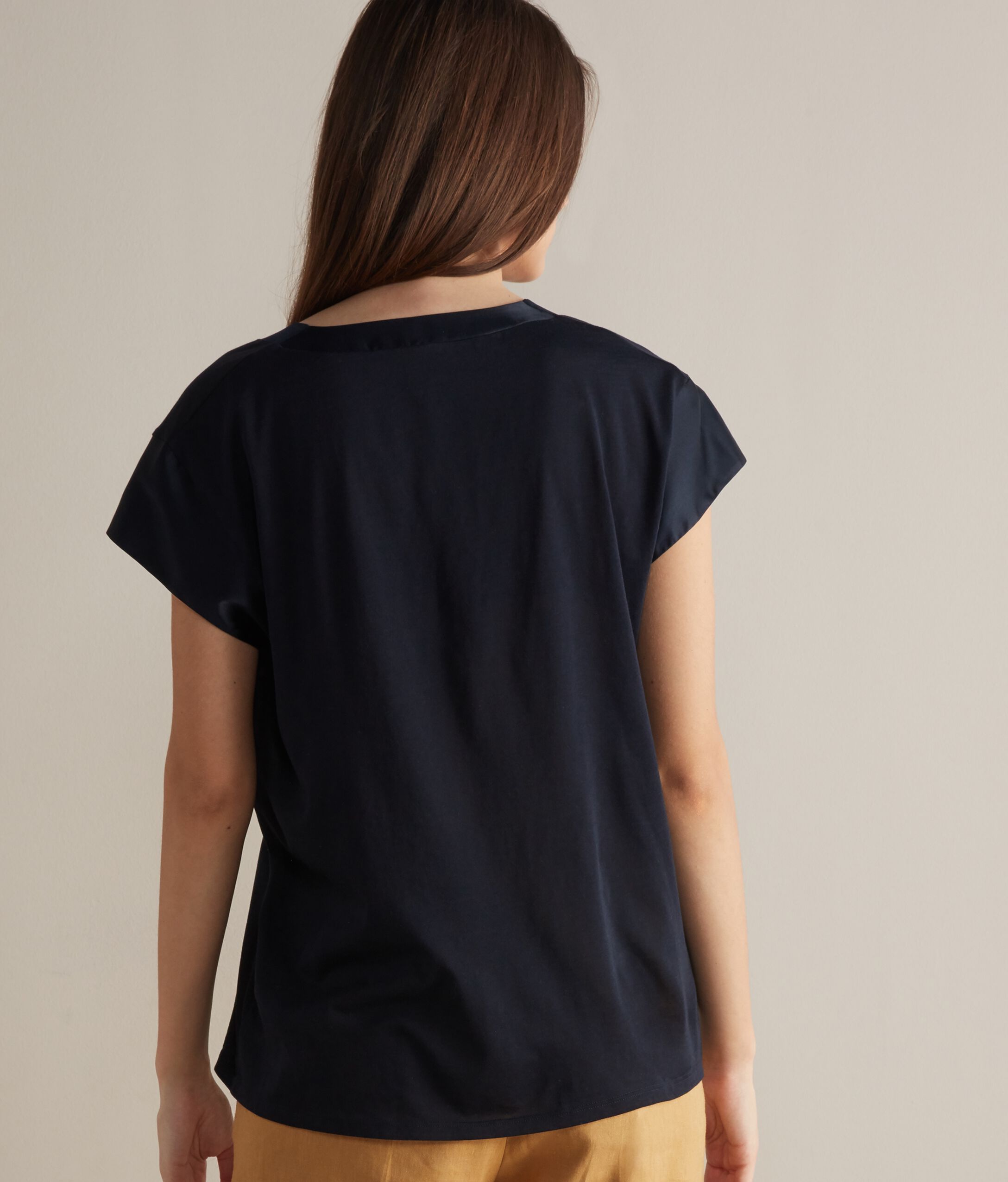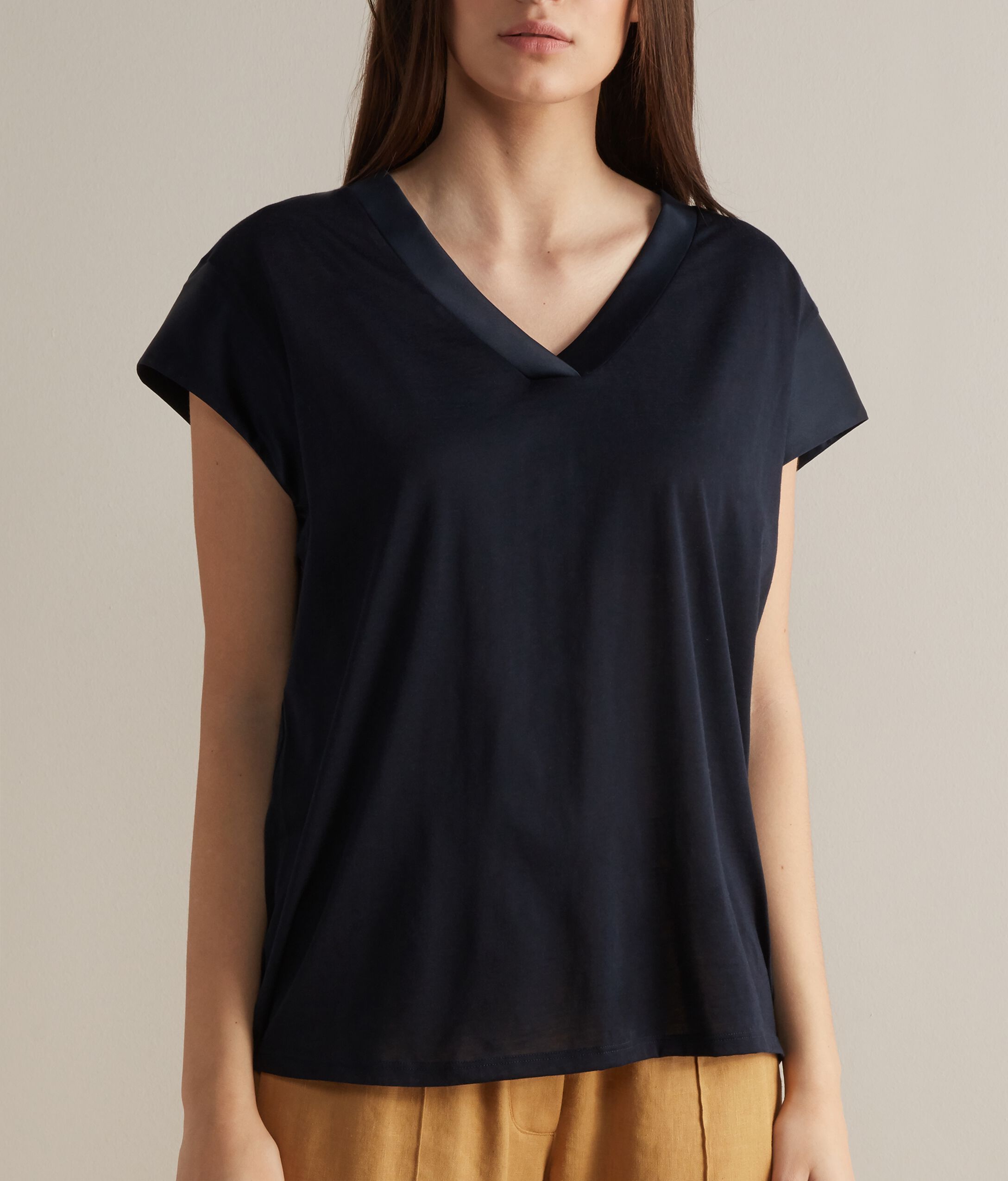 T-Shirt in Seta Fresh con Profili in Raso