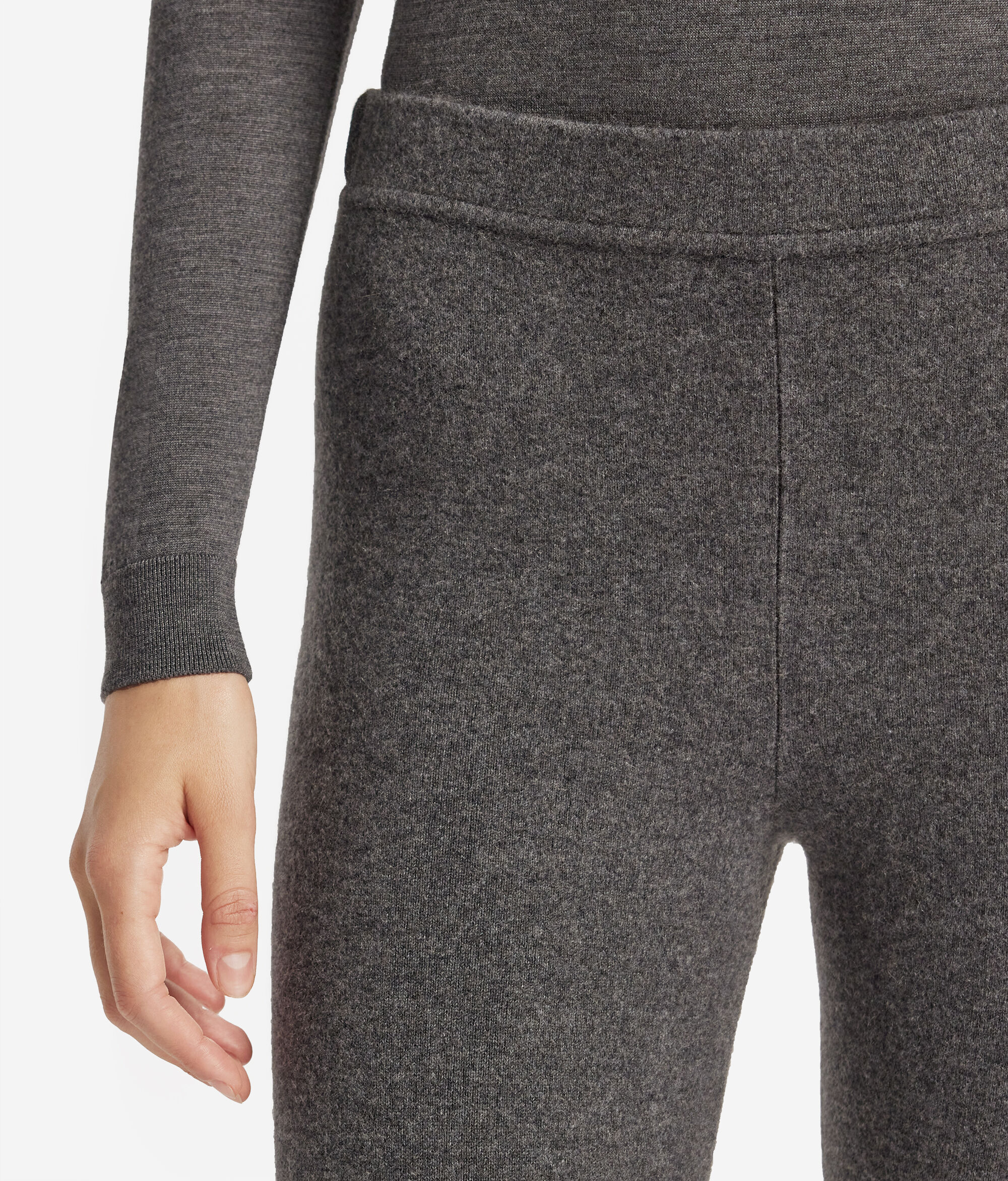 Lasciati avvolgere dalla morbidezza di questo leggings interamente realizzato in Cashmere Ultrasoft. Il tessuto pregiato e morbido al tatto, offre una carezza vellutata sulla pelle. La finitura a costine lungo il bordo aggiunge un tocco di stile, creando un dettaglio elegante e raffinato. Grazie ad una vestibilità regolare, che si adatta alle forme, e al senso di sofficità conferito dal cashmere, è un vero must -have per chi apprezza qualità e stile senza compromessi.