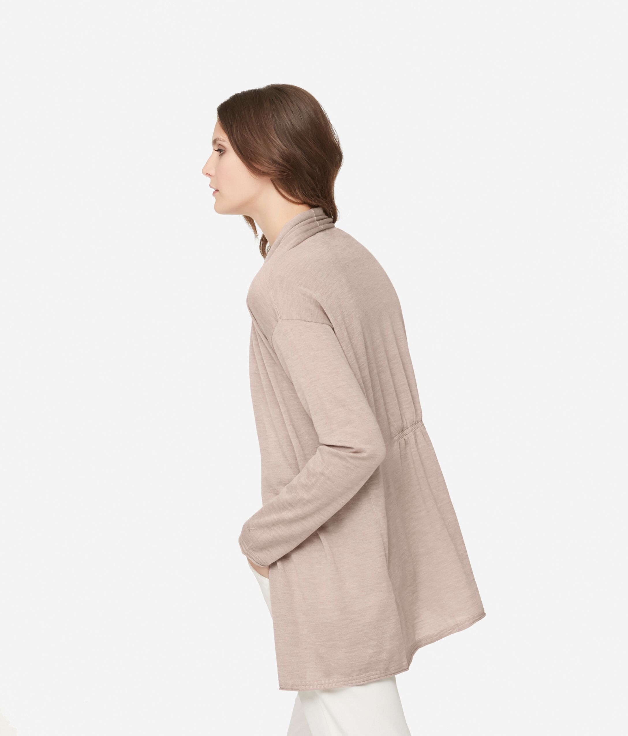 Cardigan lungo aperto, con collo sciallato e manica lunga. Interamente realizzato in cashmere ultrafine, senza cuciture. Le maniche sono impreziosite da una finitura con motivo tubolare. La parte posteriore è caratterizzata da un'arricciatura per conferire maggior vestibilità. La modella è alta 179cm e veste una taglia MPetto: 88cm / Vita: 67cm / Fianchi: 94cm