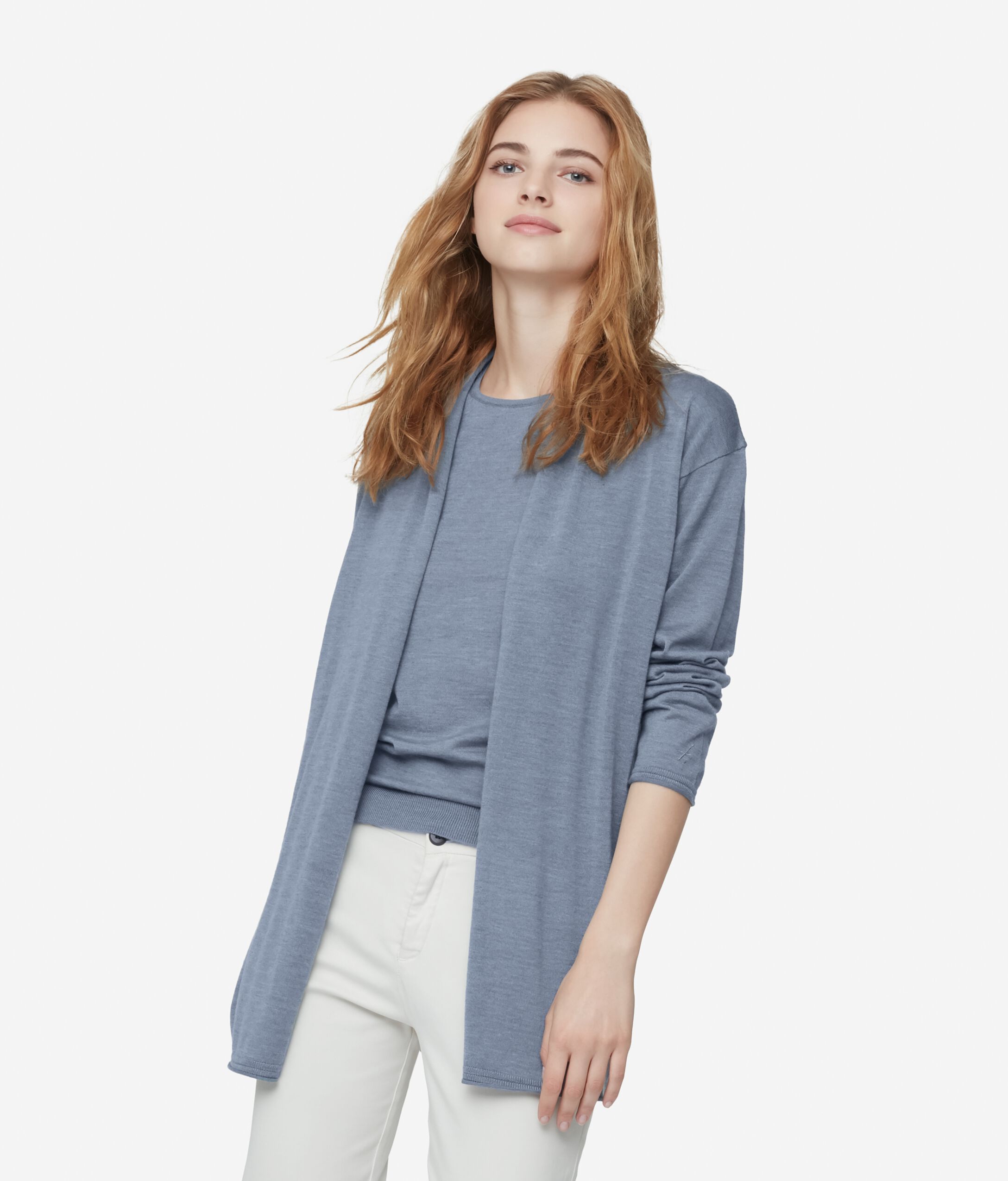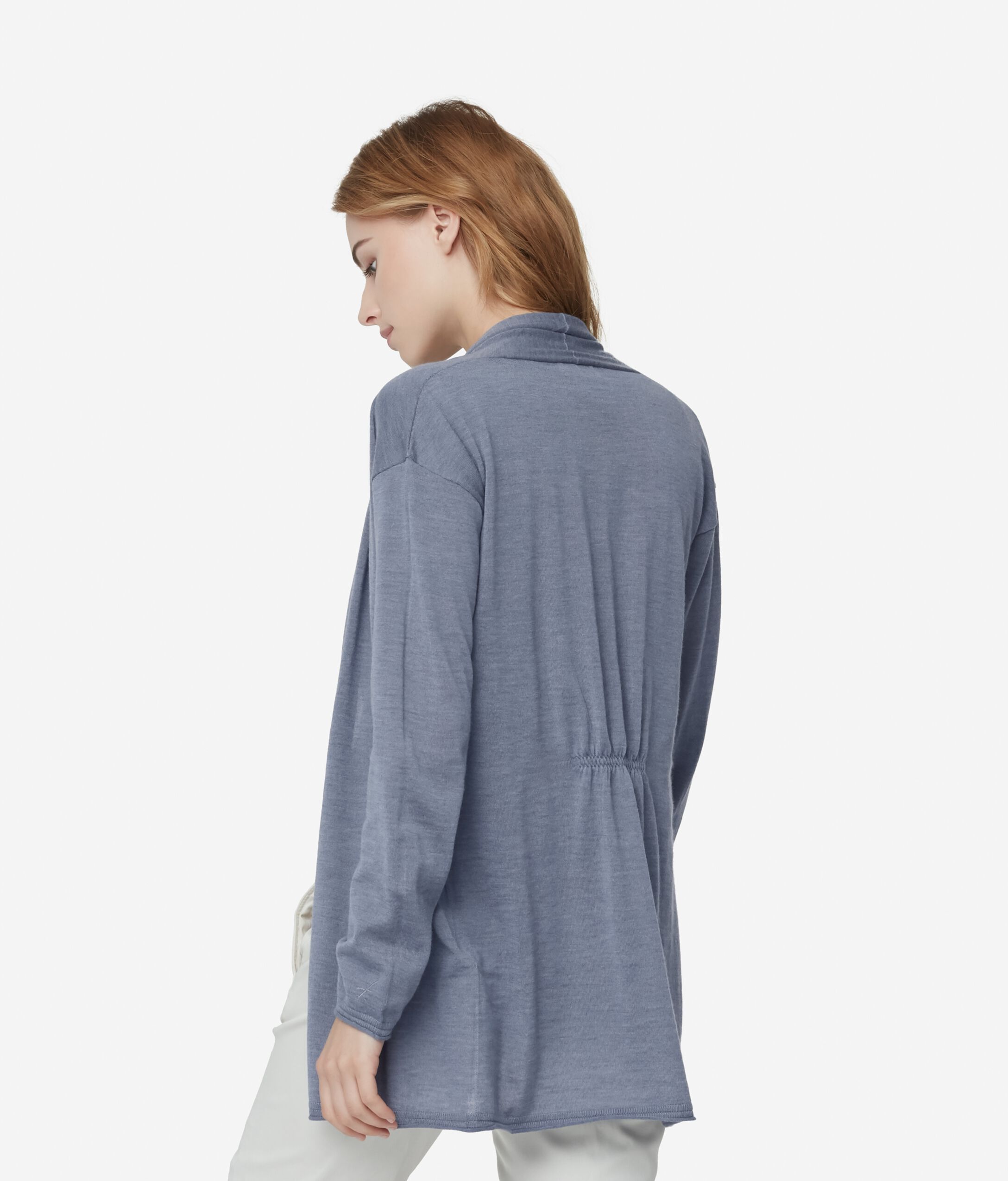 Cardigan lungo aperto, con collo sciallato e manica lunga. Interamente realizzato in cashmere ultrafine, senza cuciture. Le maniche sono impreziosite da una finitura con motivo tubolare. La parte posteriore è caratterizzata da un'arricciatura per conferire maggior vestibilità. La modella è alta 179cm e veste una taglia MPetto: 88cm / Vita: 67cm / Fianchi: 94cm