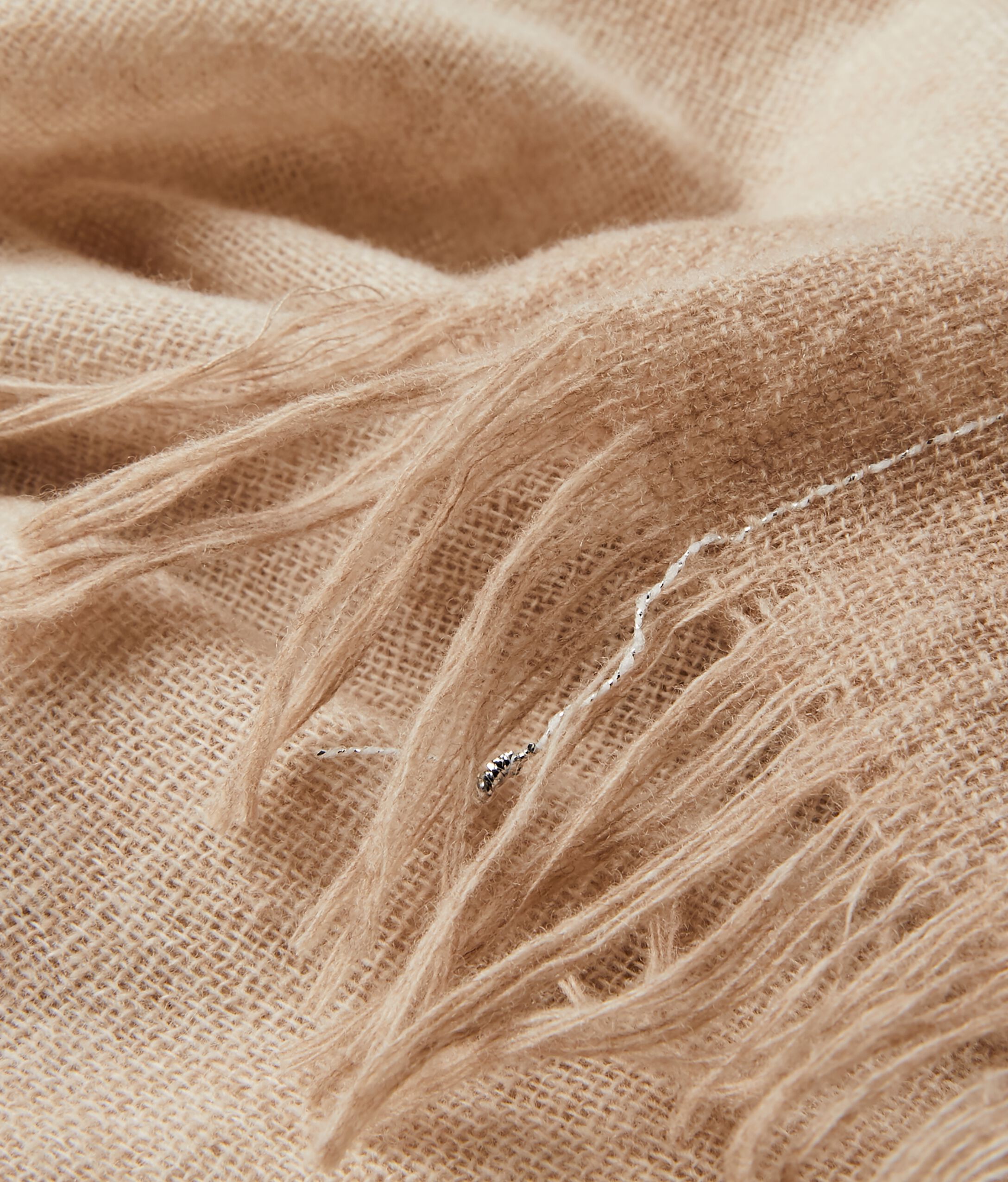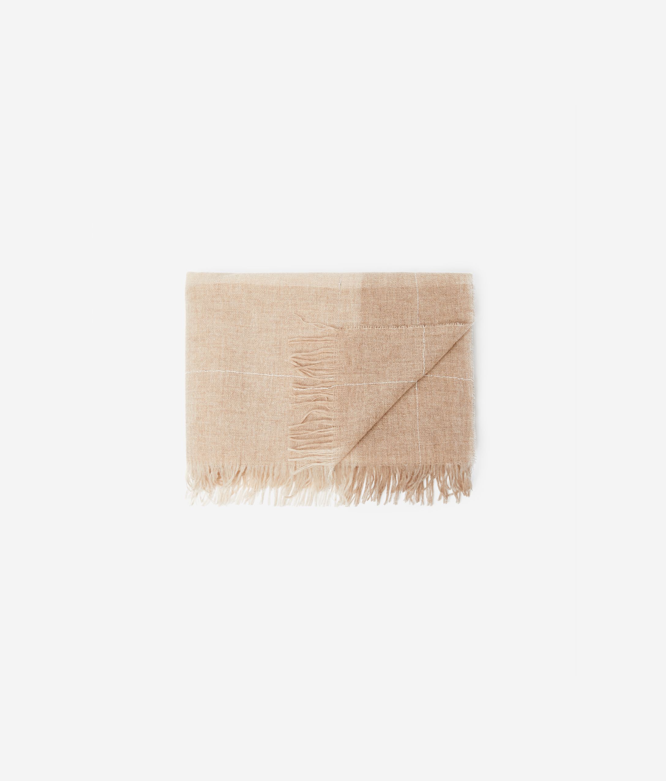 Sciarpa madras realizzata in lana con interventi di filato lamé e leggero contrasto colore. Misure: 70 x 179 cm