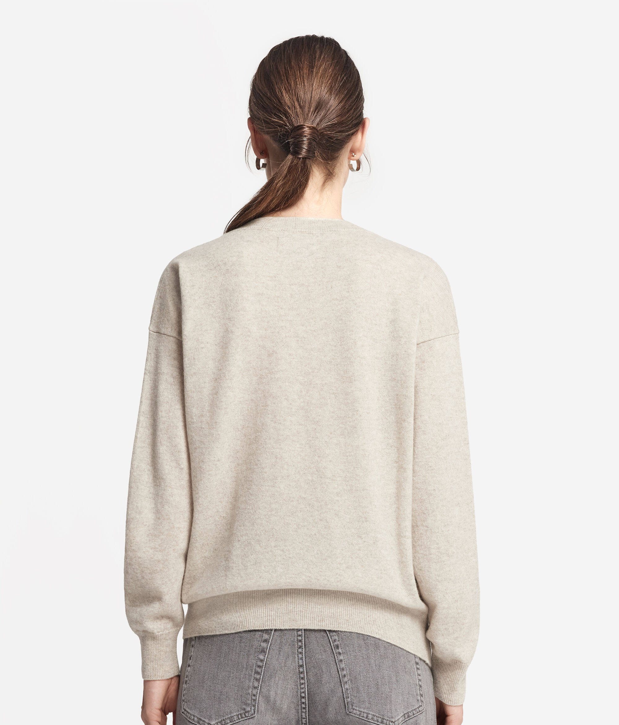 Realizzata in soffice Cashmere Ultrasoft, questa maglia dallo scollo a V diventerà il pezzo chiave del tuo guardaroba durante le giornate più fresche. Il bordo, i polsini e lo scollo sono impreziositi da una lavorazione a costine che aggiunge un tocco di raffinatezza. Le spalle scese e la sua vestibilità morbida conferiscono un fit rilassato e naturale che risponde ad uno stile attuale e contemporaneo.