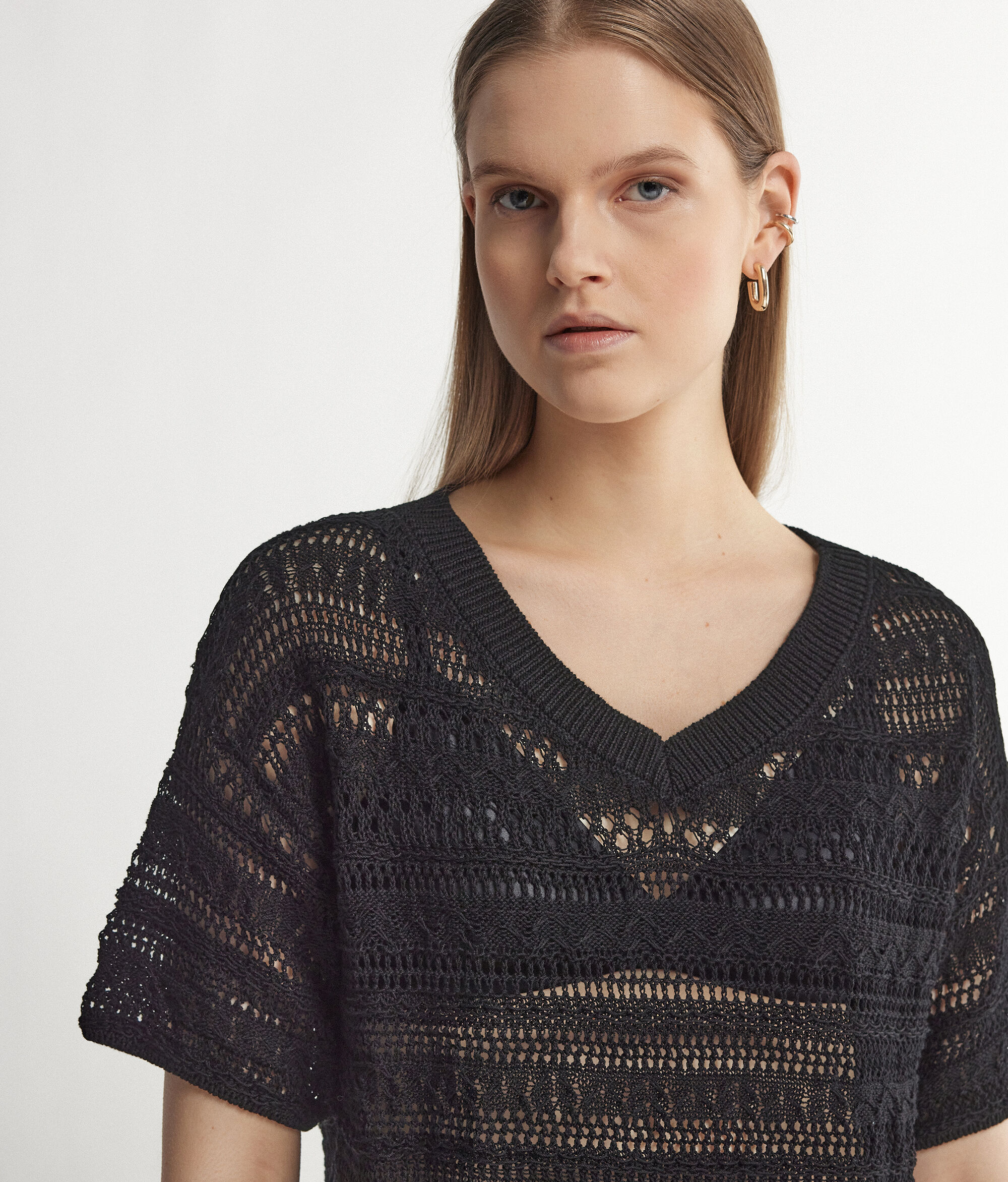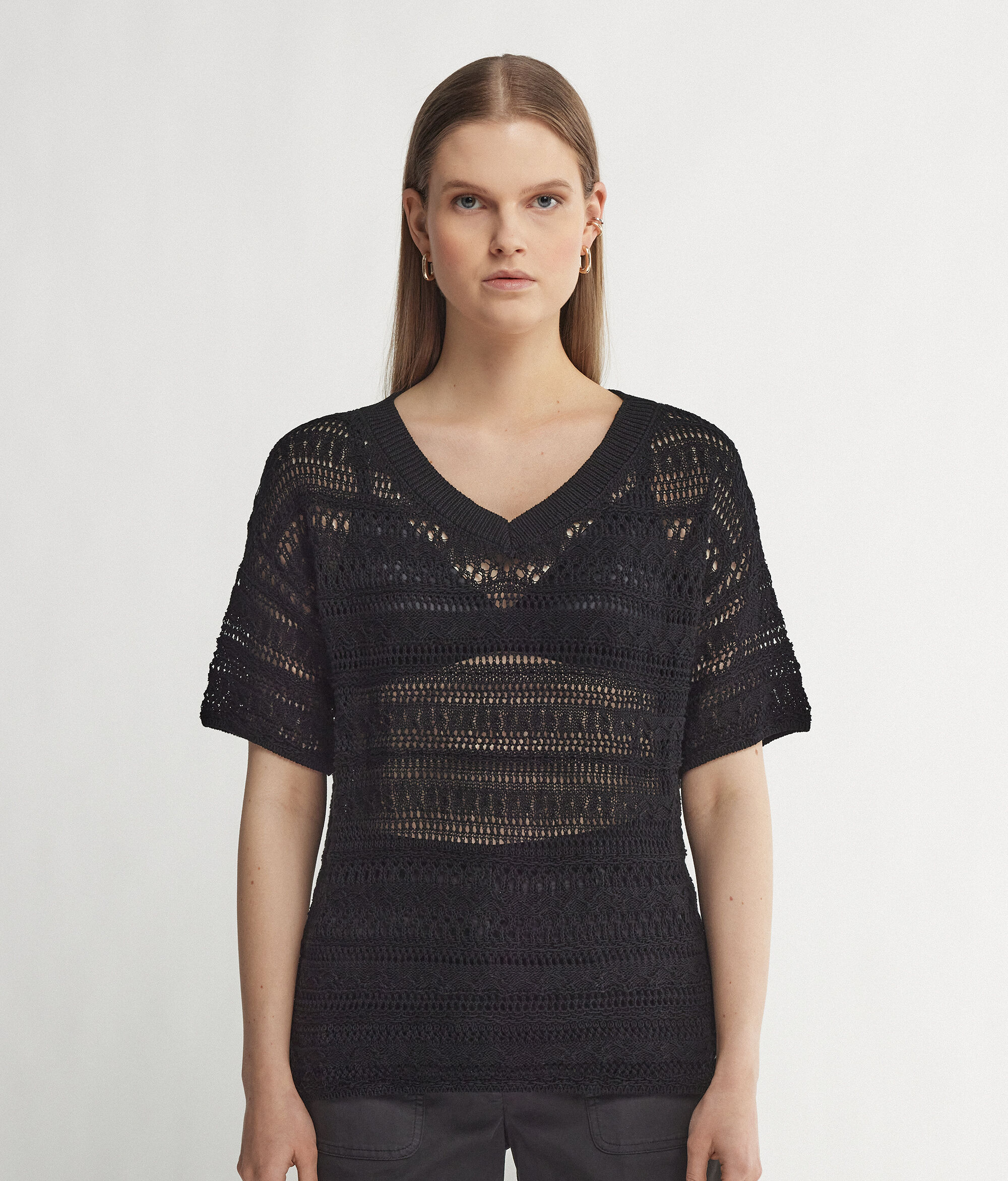 Nata da un'ispirazione all'anima gypsy la nuova maglia traforata firmata Falconeri è il capo perfetto per valorizare i tuoi look primaverili. Versatile e raffinata dona carattere anche al look più semplice. Ideale abbinata ad un pantalone con piega a gamba larga per un gusto più elegante oppure ad un comodo demin essenziale dalla vita alta per un aspetto più casual.