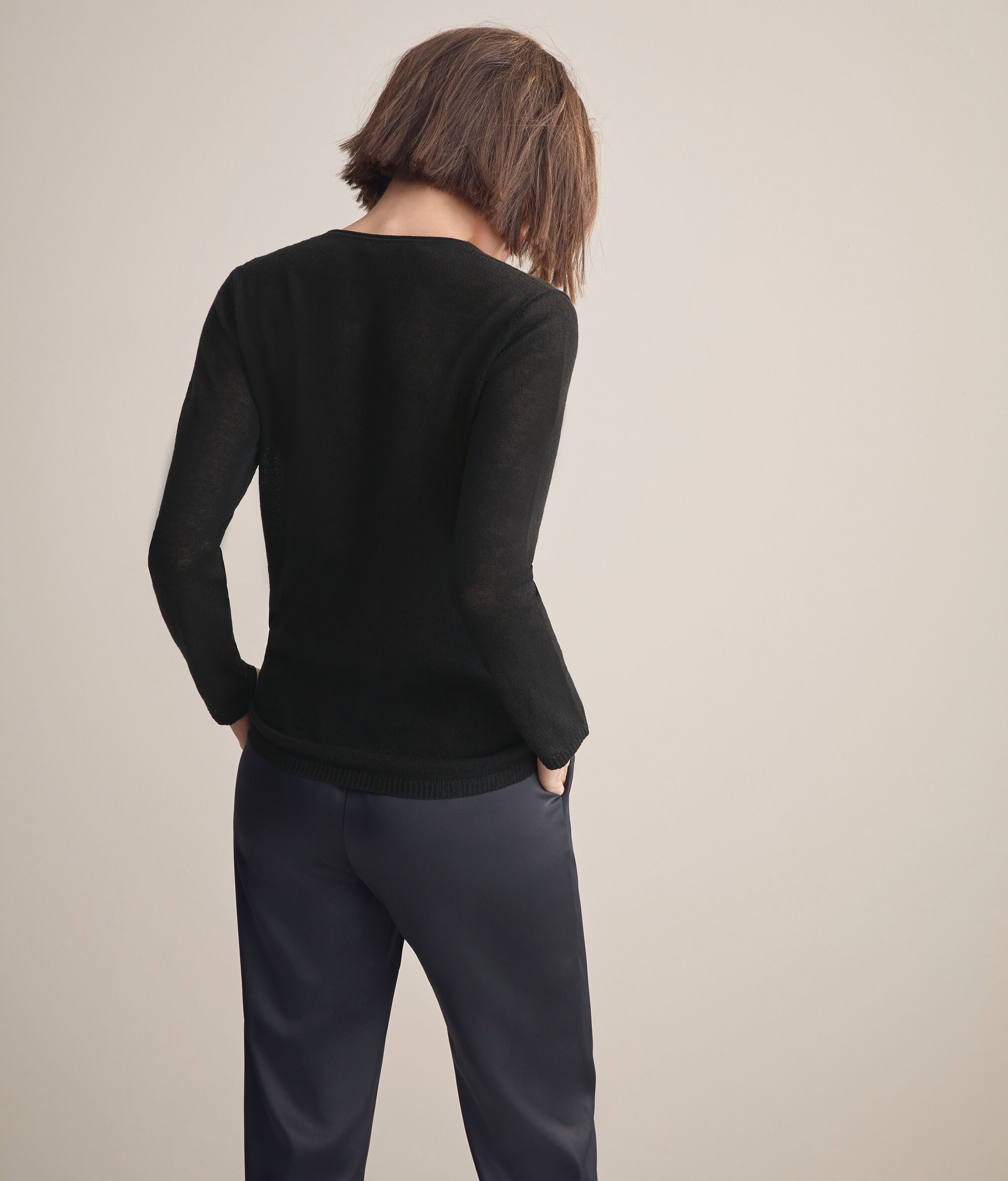 Come una soffice nuvola questa maglia in cashmere cardato 2/46 regala una morbida coccola ad uno stile essenziale e sofisticato. Modello con scollo a V che disegna una silhouette slim in leggerissima trasparenza, ideale come caldo capo di mezza stagione o come sottogiacca. La modella è alta 179 cm e veste una taglia MPetto: 88cm / Vita: 67cm / Fianchi: 94cm
