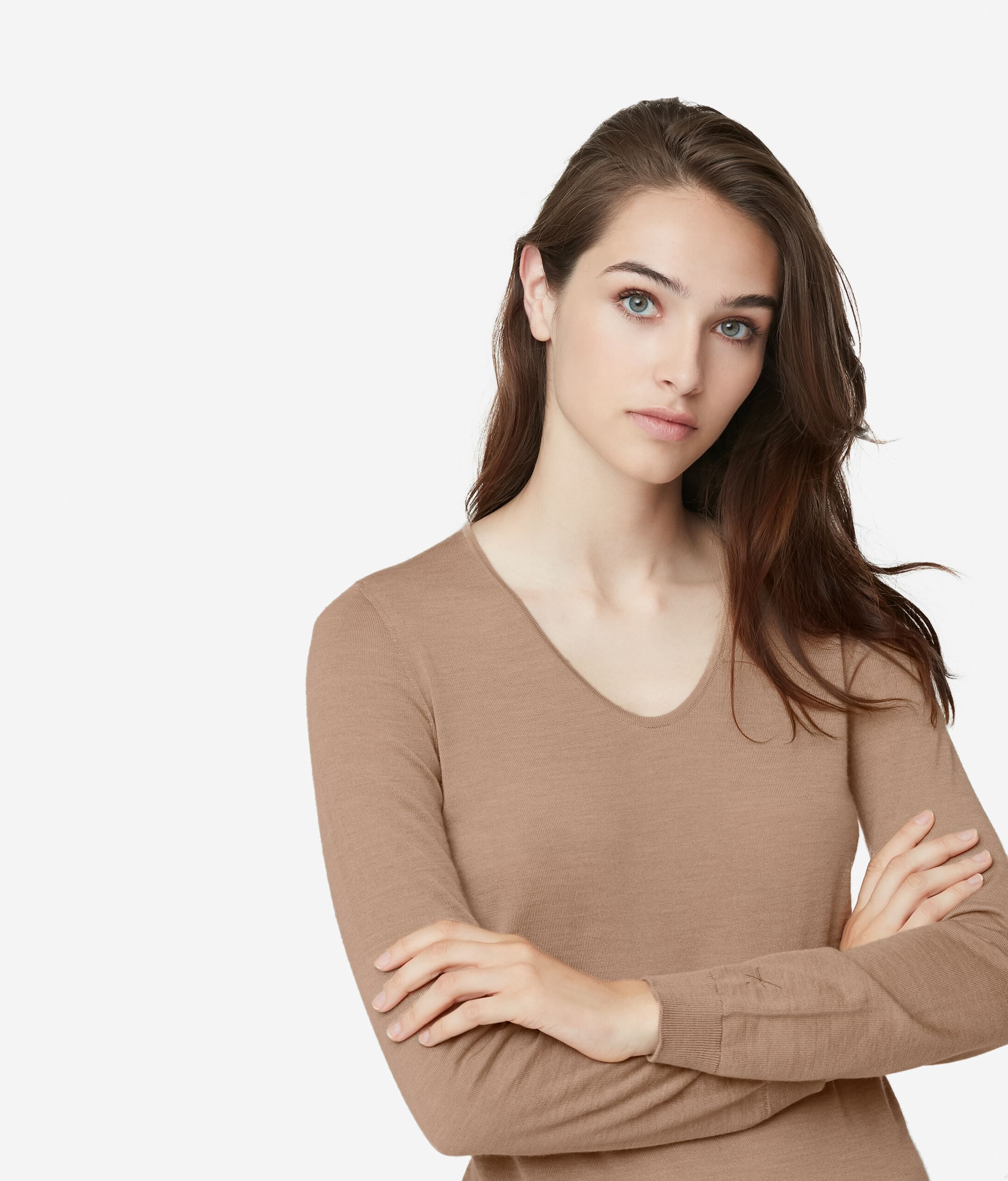 Equilibrio nelle forme e nei volumi caratterizzano lo stile della collezione Falconeri che da sempre armonizza lo stile alla naturalezza dei materiali. L'impiego del cashmere ultrafine è sapientemente coniugato con le morbide forme di questa maglia con scollo a V. Maglia versatile e raffinata del guardaroba femminile, ideale per completare con eleganza i look quotidiani.