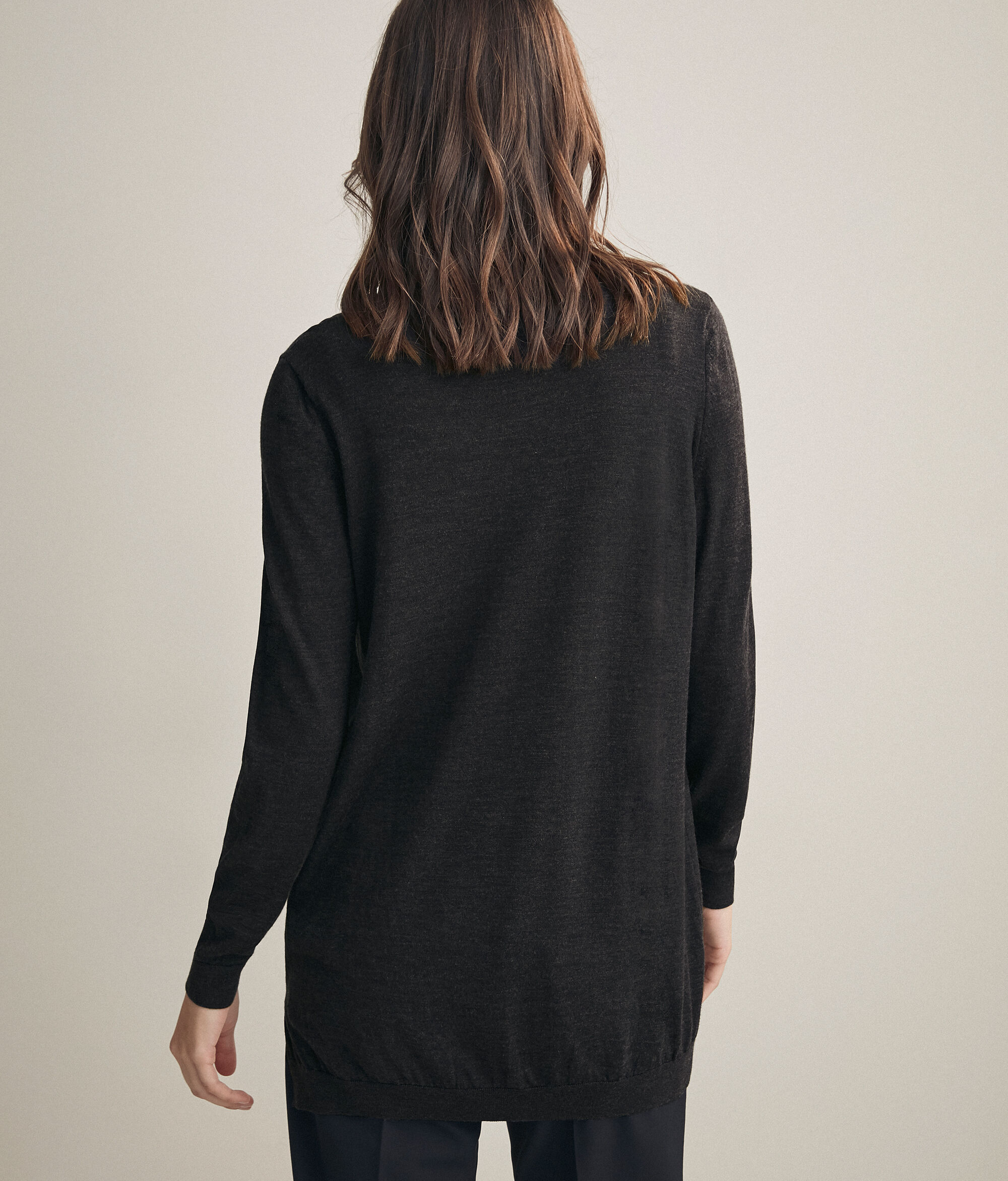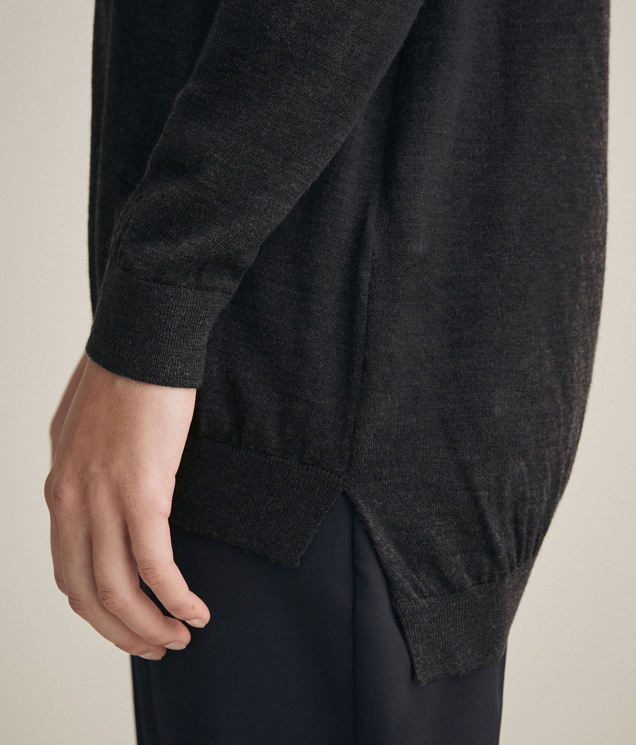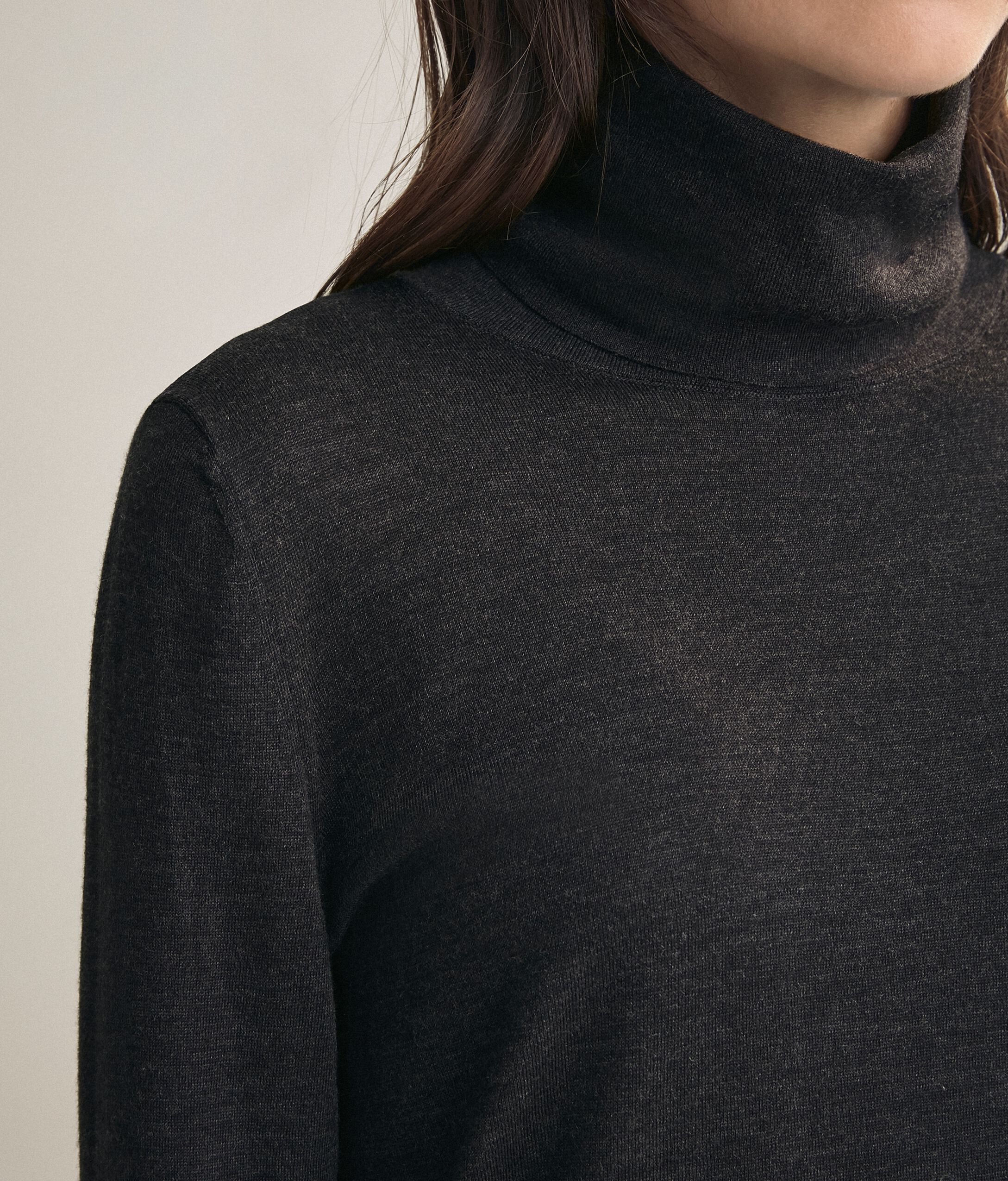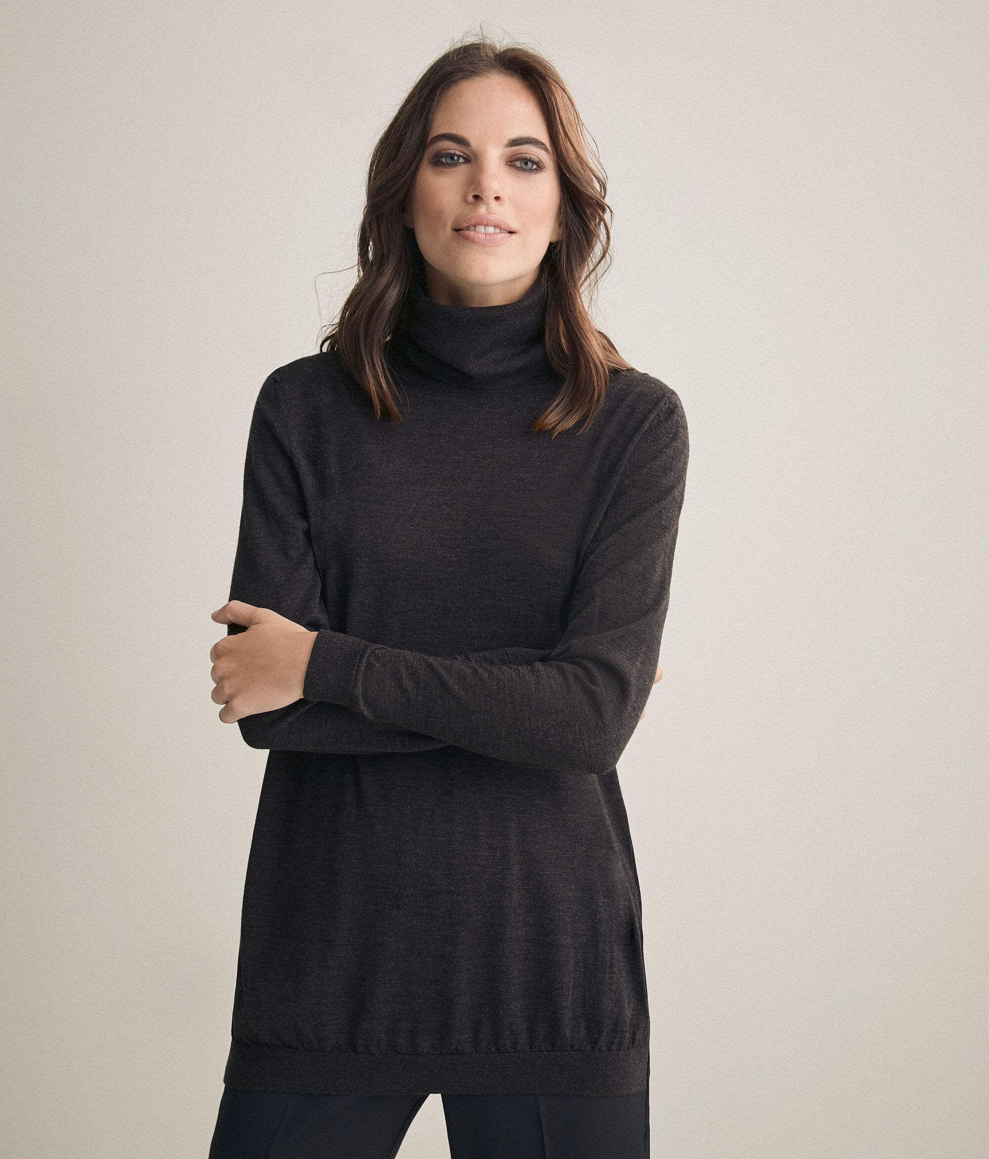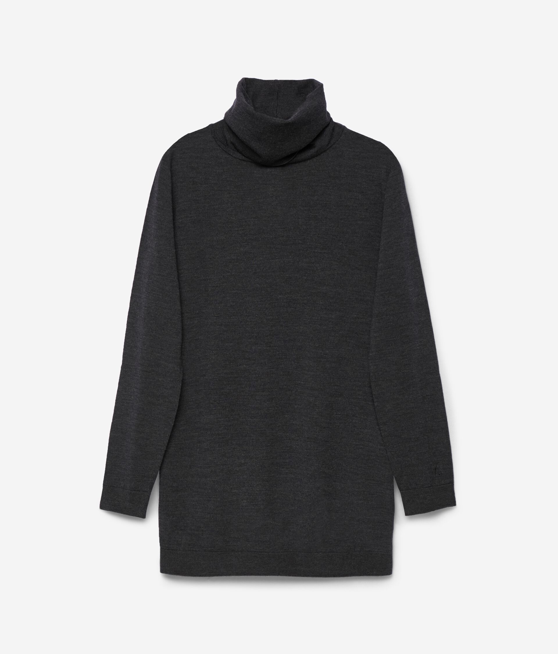 Maglia dolcevita interamente realizzata in lana merino. Vestibilità regolare. La modella è alta 177 cm e veste una taglia M