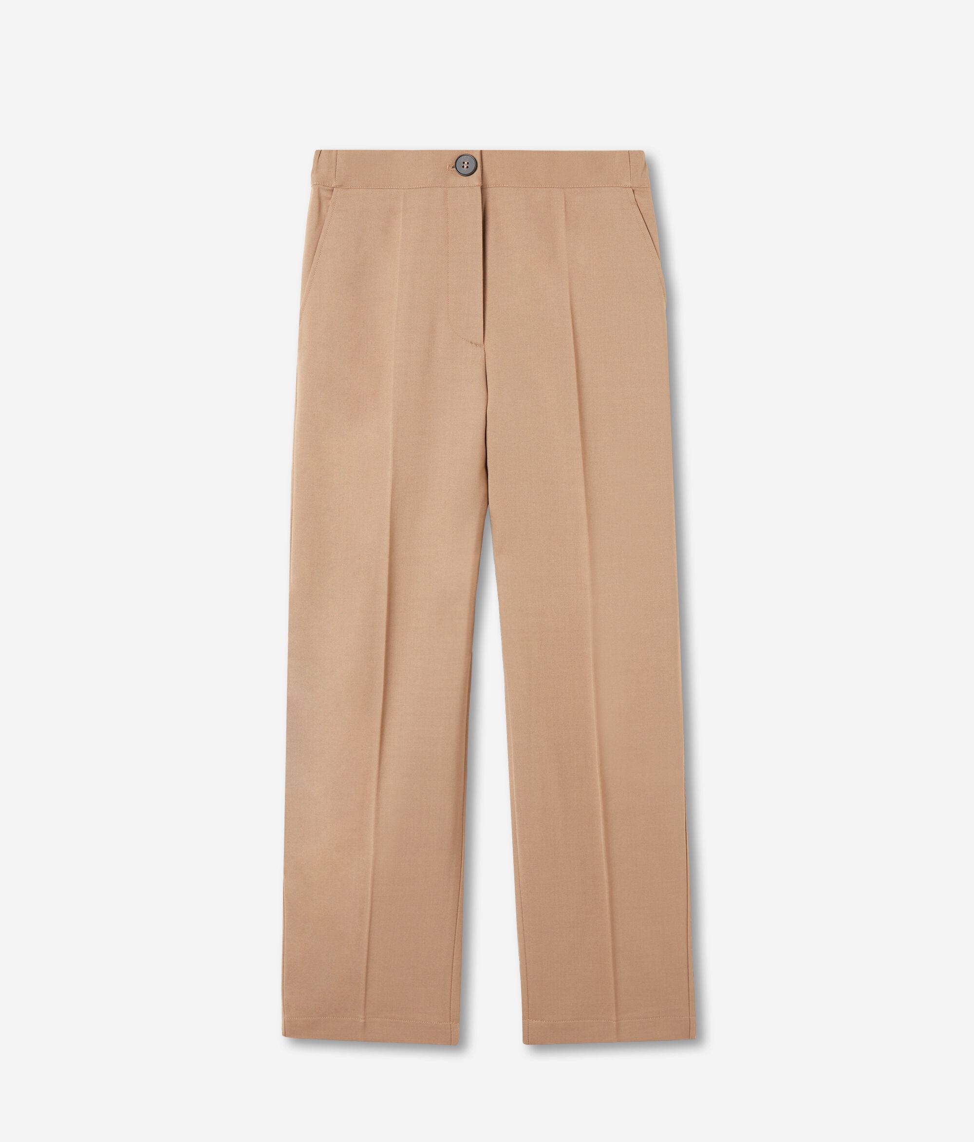 Ispirazioni sartoriali e linee morbide caratterizzano la silhouette del pantalone in tessuto di lana viscosa. Materiali pregiati e dettagli di ispirazione classica si fondono per creare un capo contemporaneamente sofisticato e dinamico. Le linee morbide e fluide sono accompagnate dal cinturino elastico sul retro che rende pratico l'indosso e completa il pantalone con un tocco casual.
