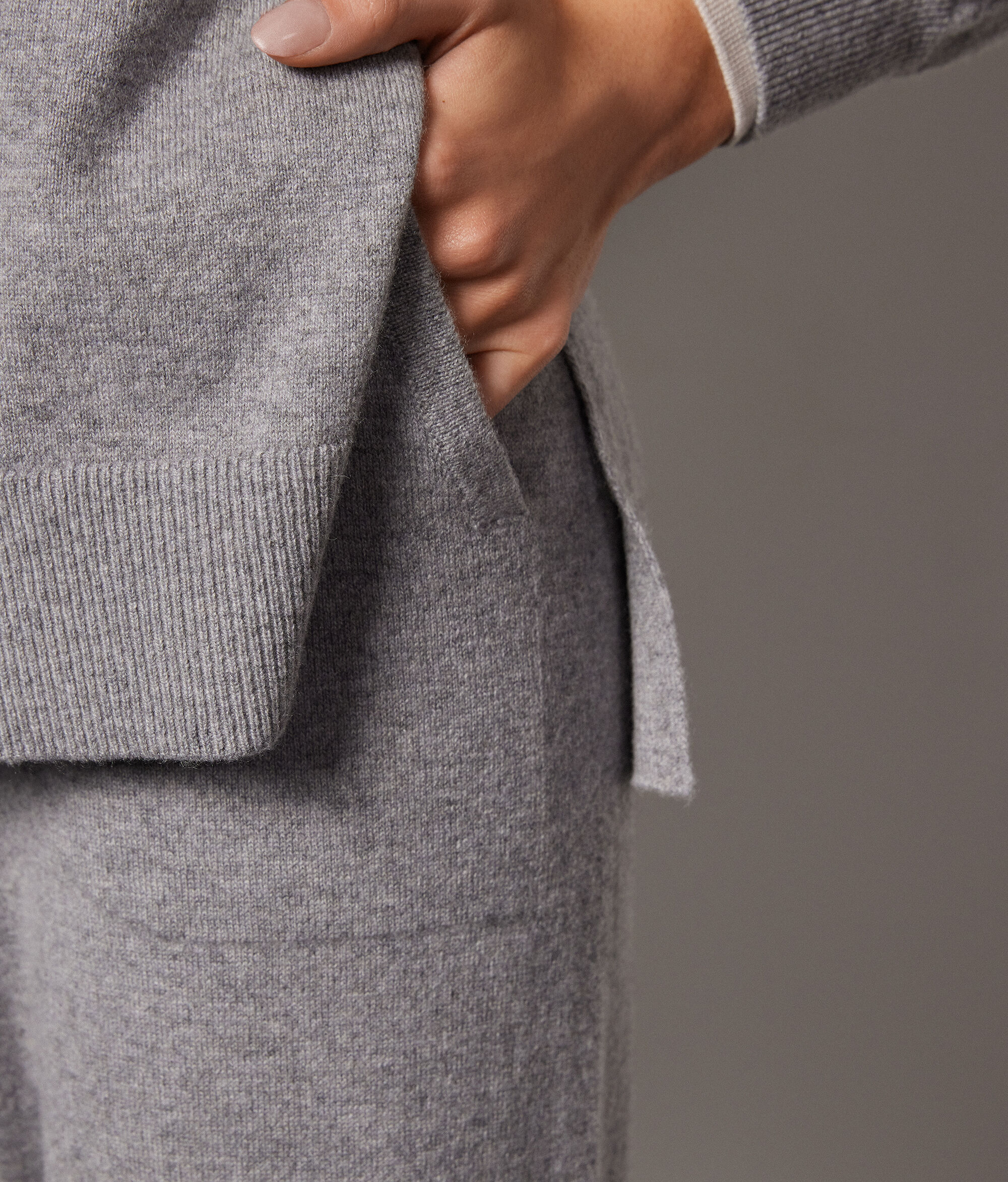 Realizzato in soffice Cashmere Ultrasoft, questo pantalone rappresenta un capo essenziale per il guardaroba che unisce comfort e stile. L'elastico in vita assieme ai polsini alle caviglie ne caratterizzano il design, contribuendo a garantire comodità. Grazie ad una vestibilità regolare, che si adatta alle forme, e al senso di moribidezza conferito dal cashmere, è un vero must -have per chi apprezza qualità ed estetica senza compromessi.