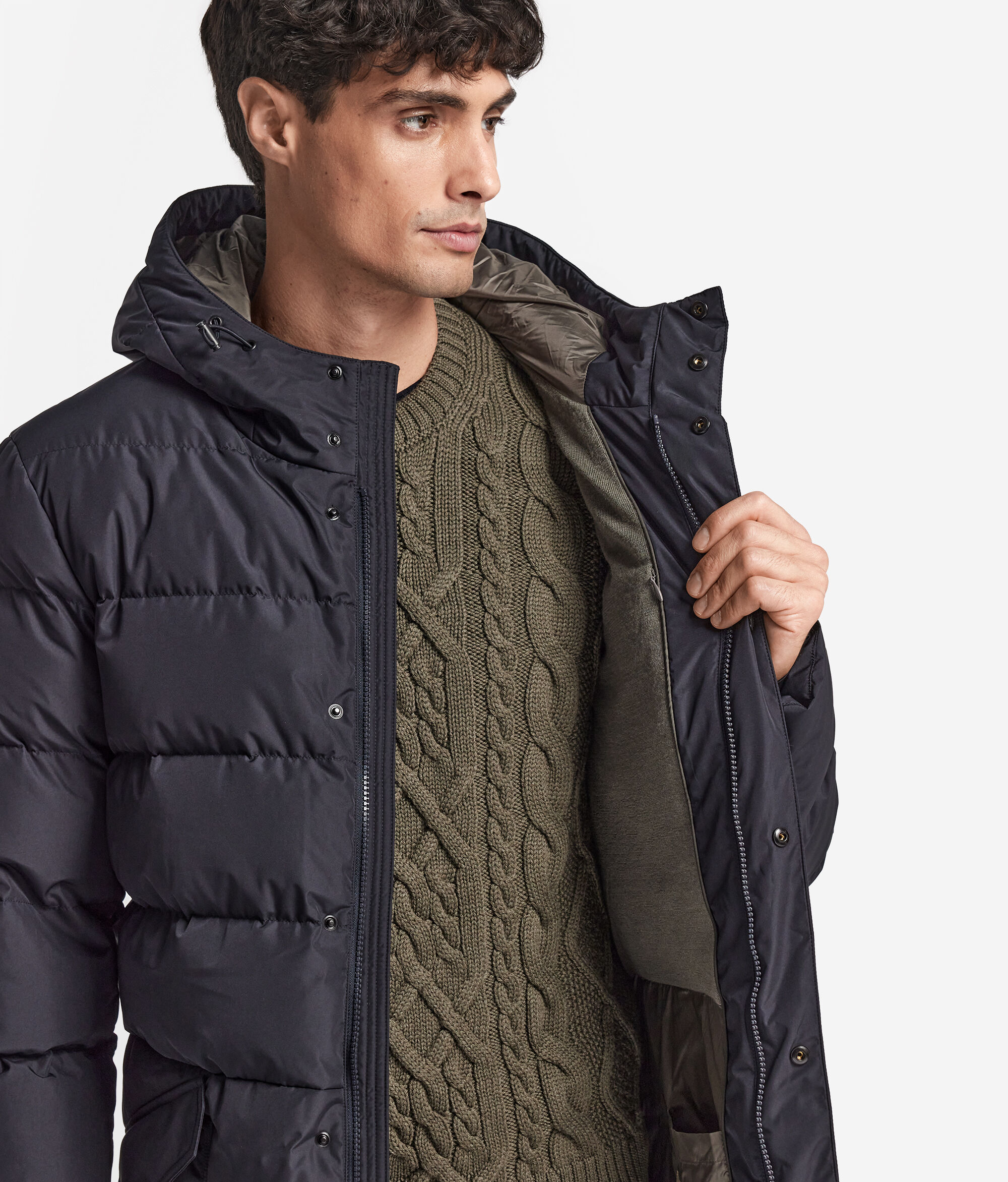 Parka Piumino con Cappuccio e Interno in Cashmere
