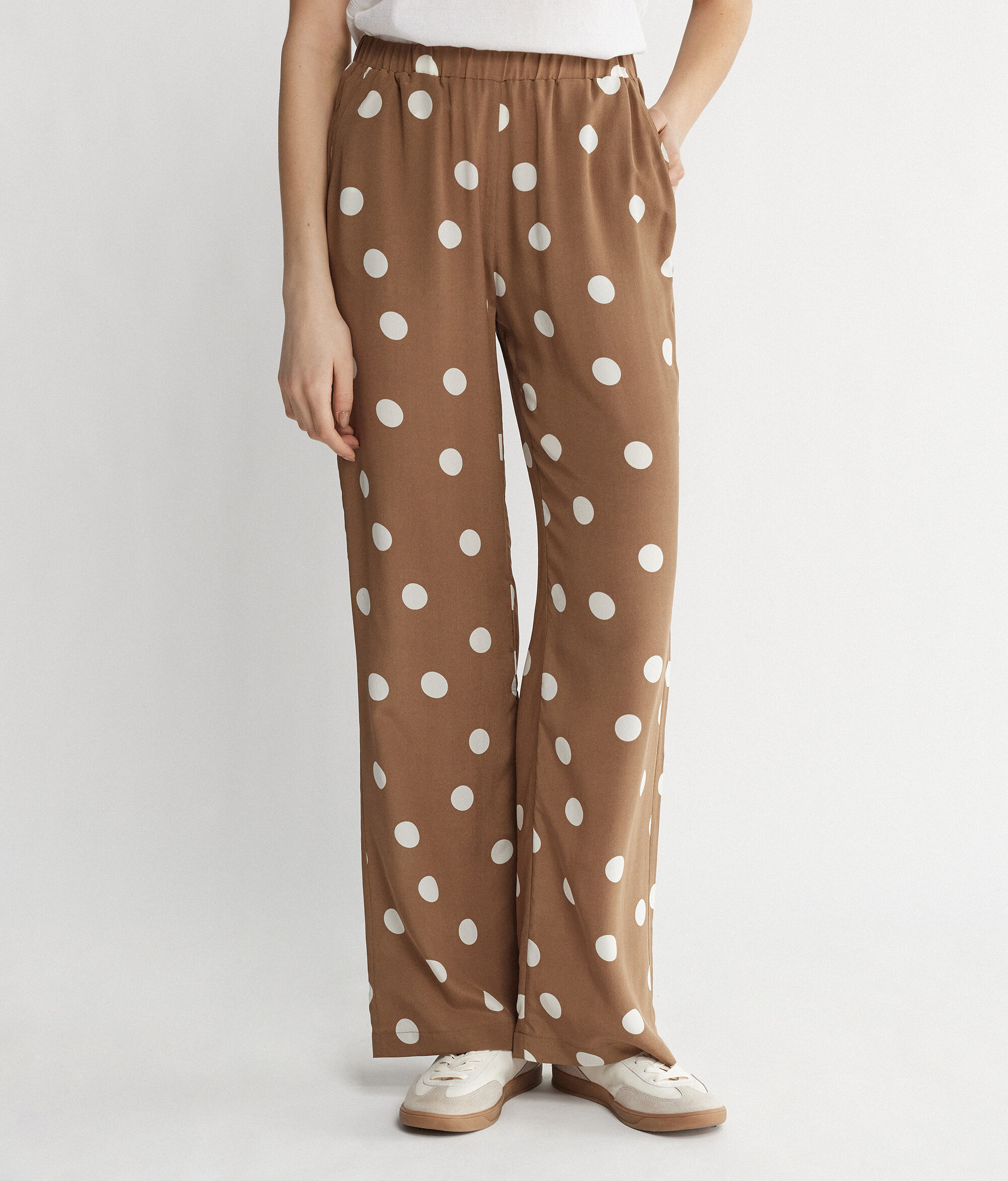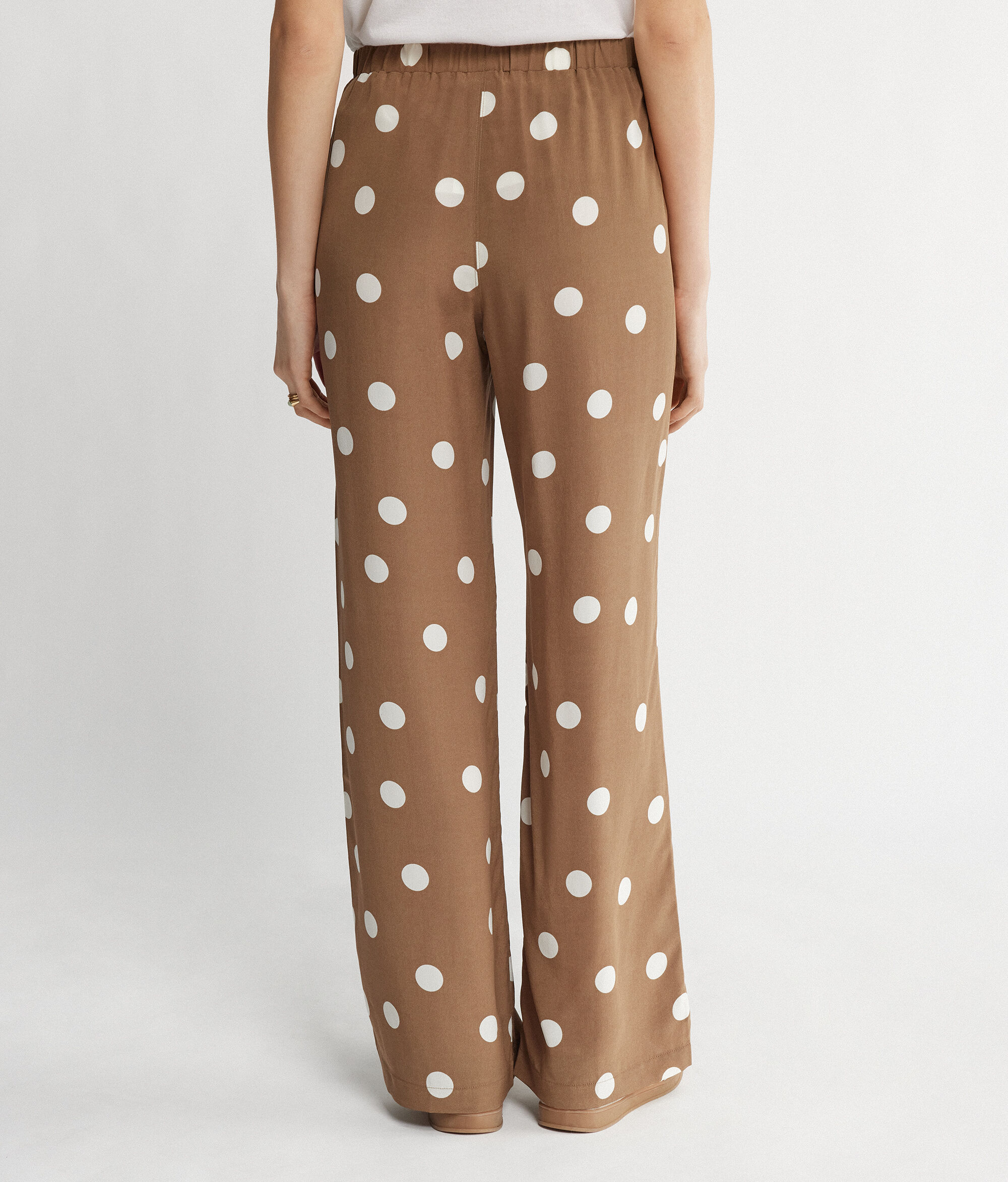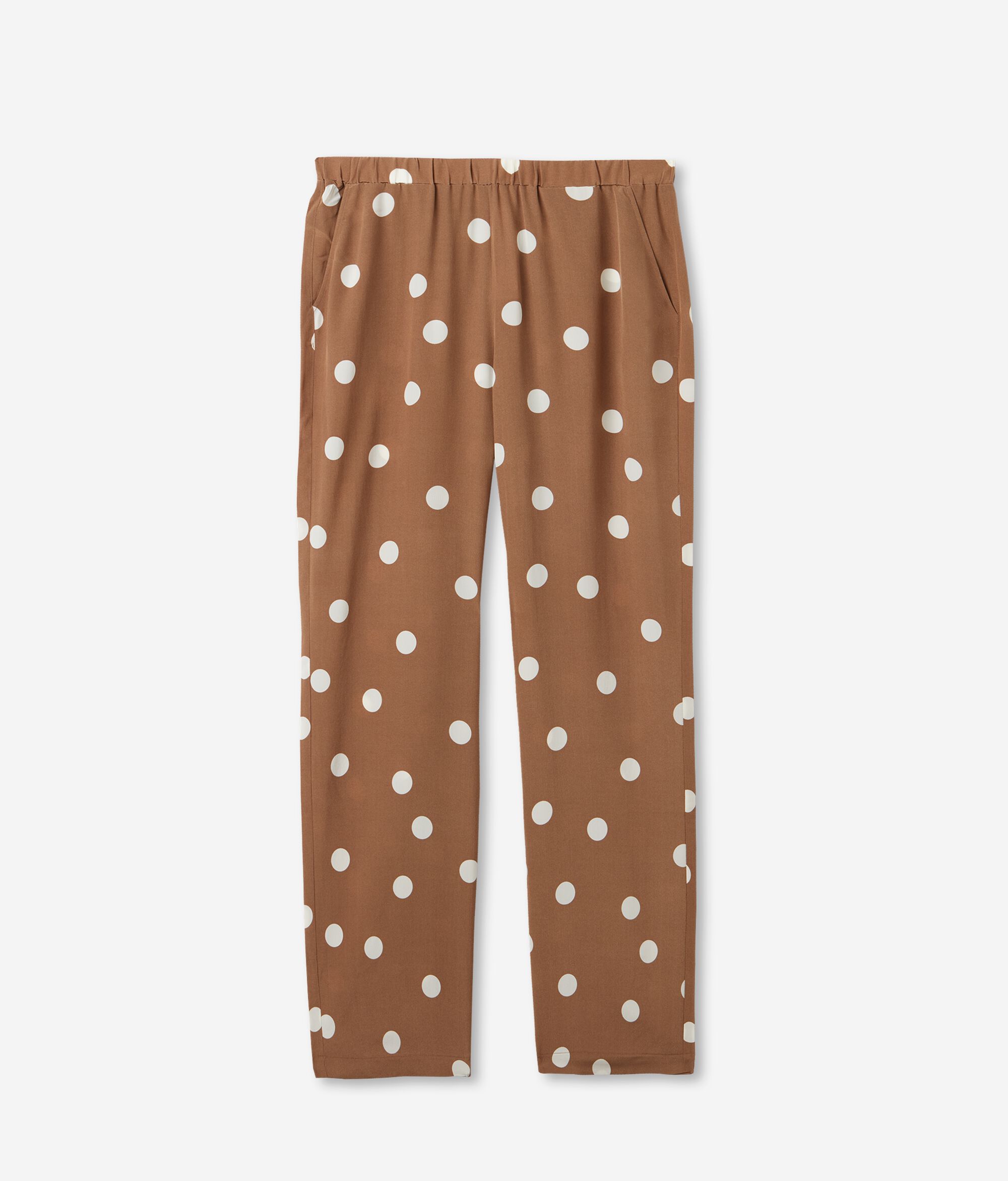 La texture dolce e scorrevole della seta è la protagonista di questo pantalone firmato Falconeri. La morbida forma a palazzo e l'elastico in vita con arricciatura mettono in risalto l'eleganza e la femminilità tipici del marchio.