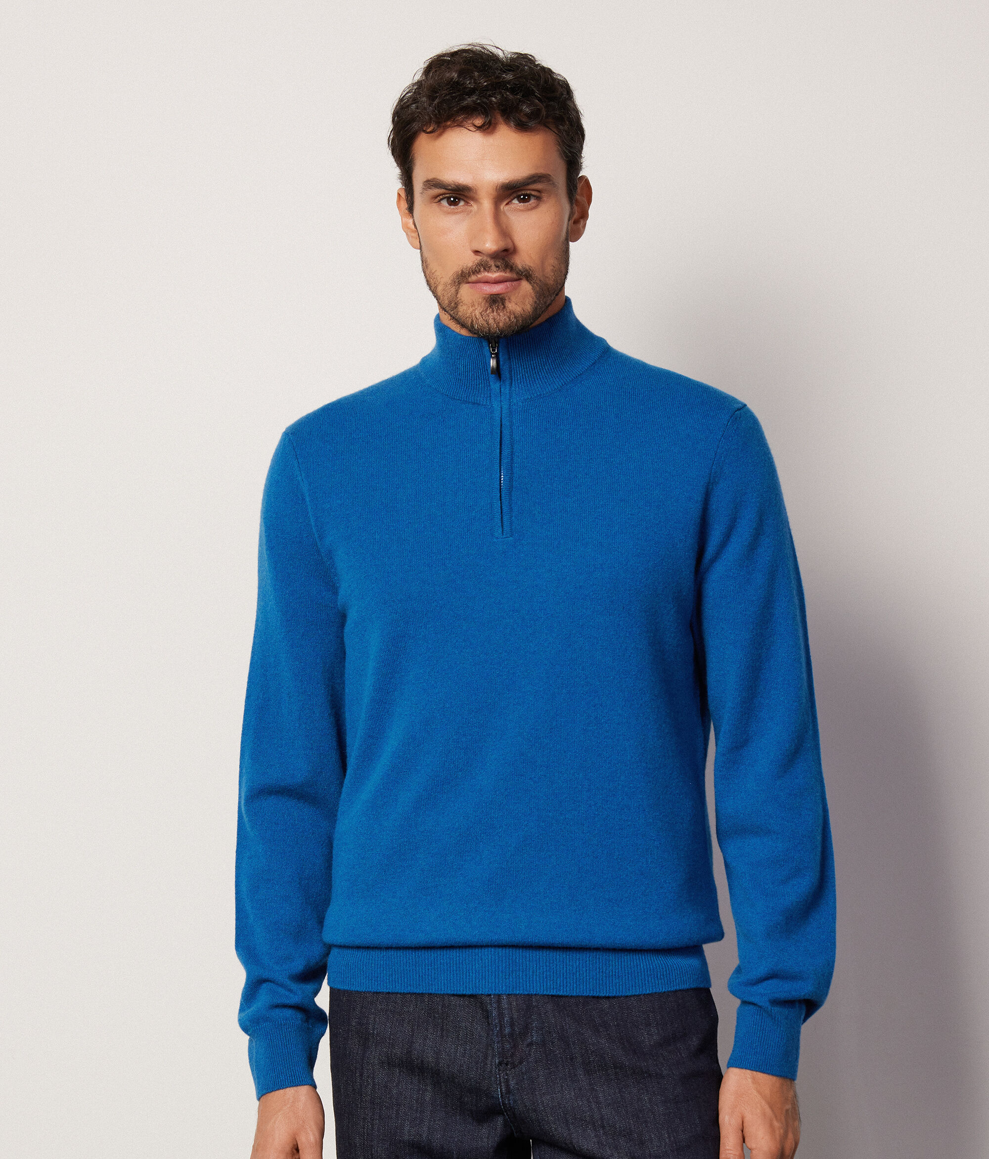 Capo immancabile del guardaroba maschile, la maglia in cashmere ultrasoft con collo alto e mezza zip arricchisce gli outfit con un tocco d'eleganza casual. La vestibilità offre volumi regolari sia sul busto che sulle spalle.